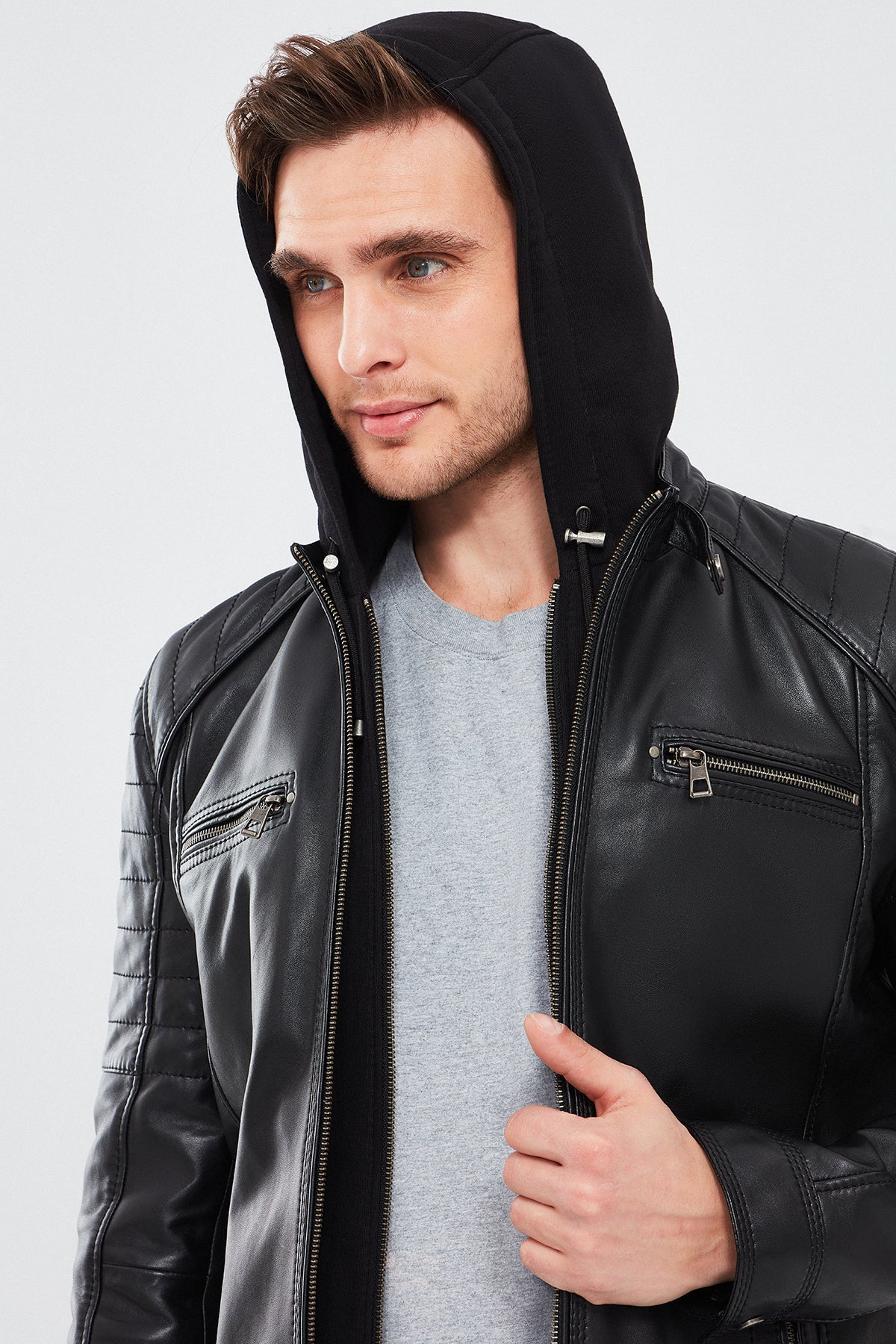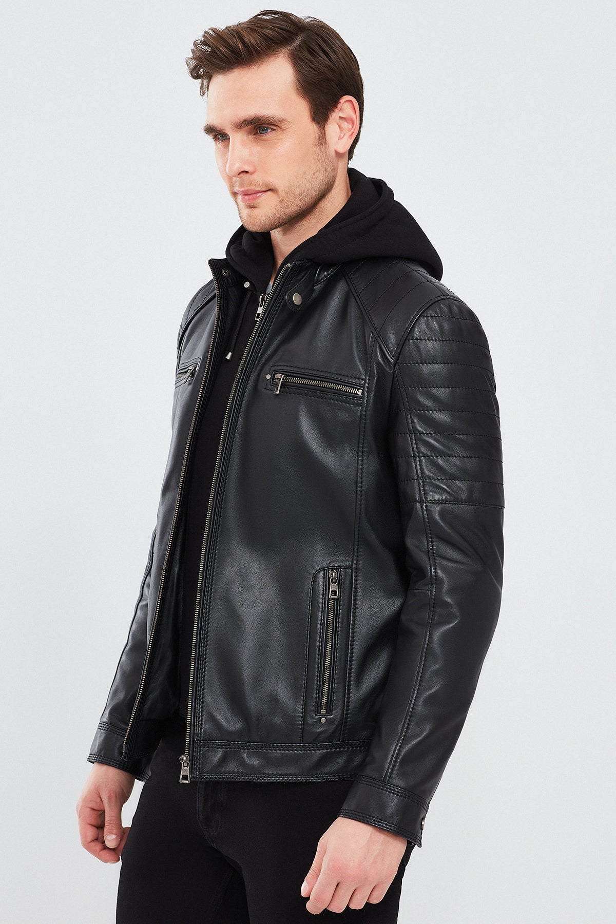 کت چرمی اسپرت کلاهدار مشکی مردانه سرجیو دری مد