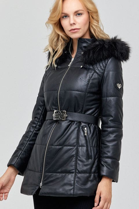 کت چرمی پف دار خز دار مشکی زنانه St.Moritz دری مد