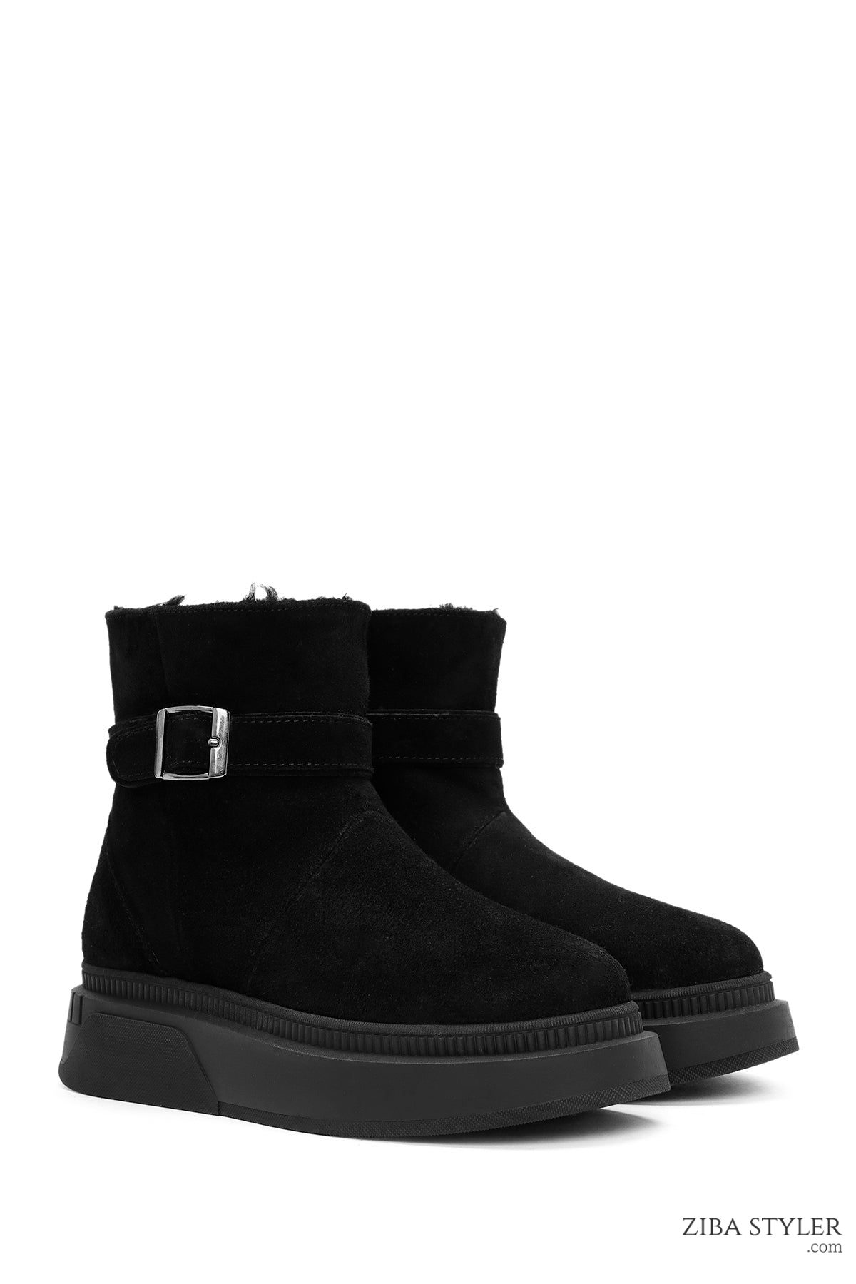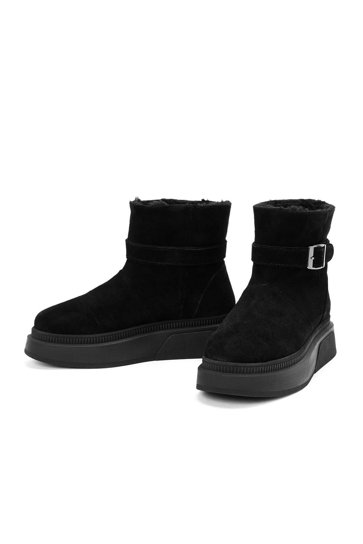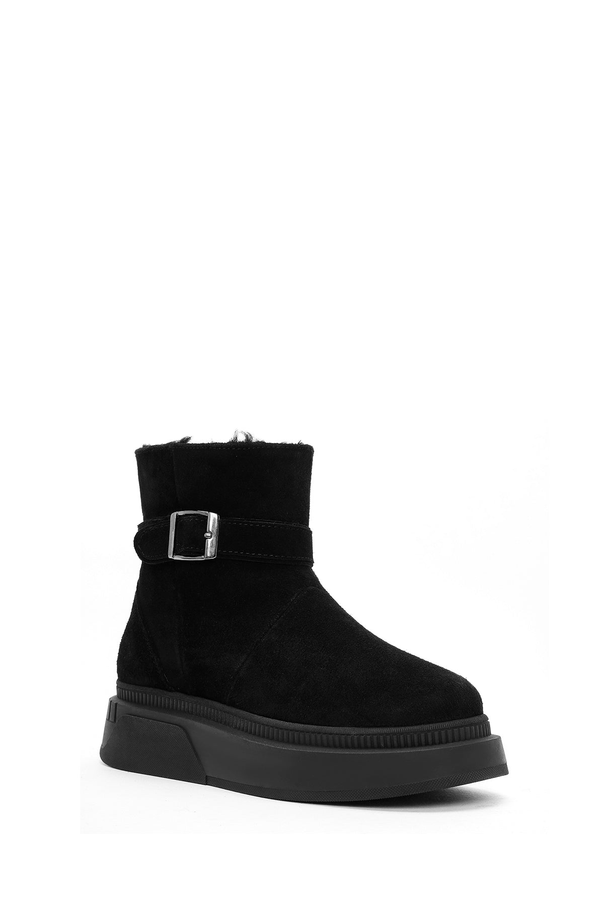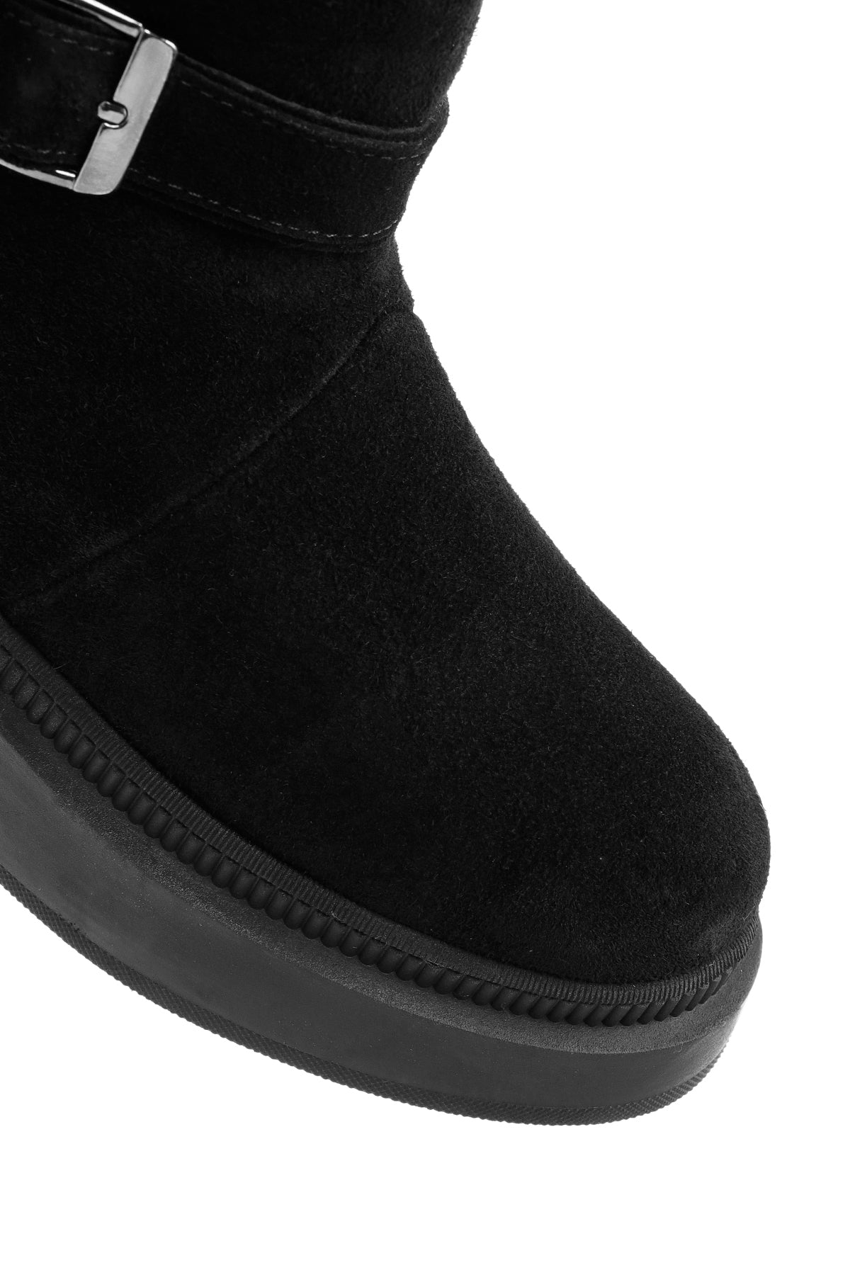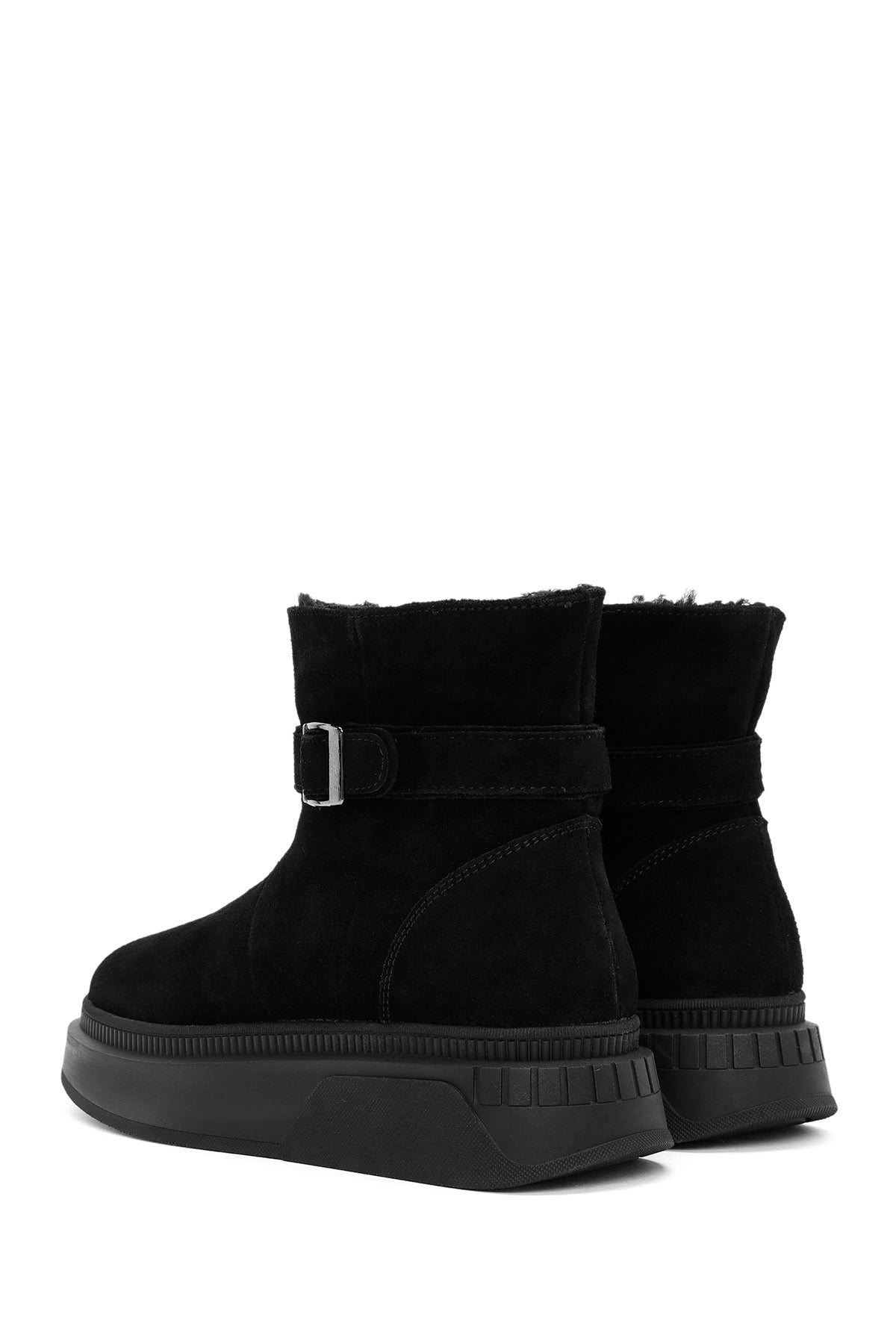 Kadın Siyah Kalın Tabanlı Süet Deri Bot