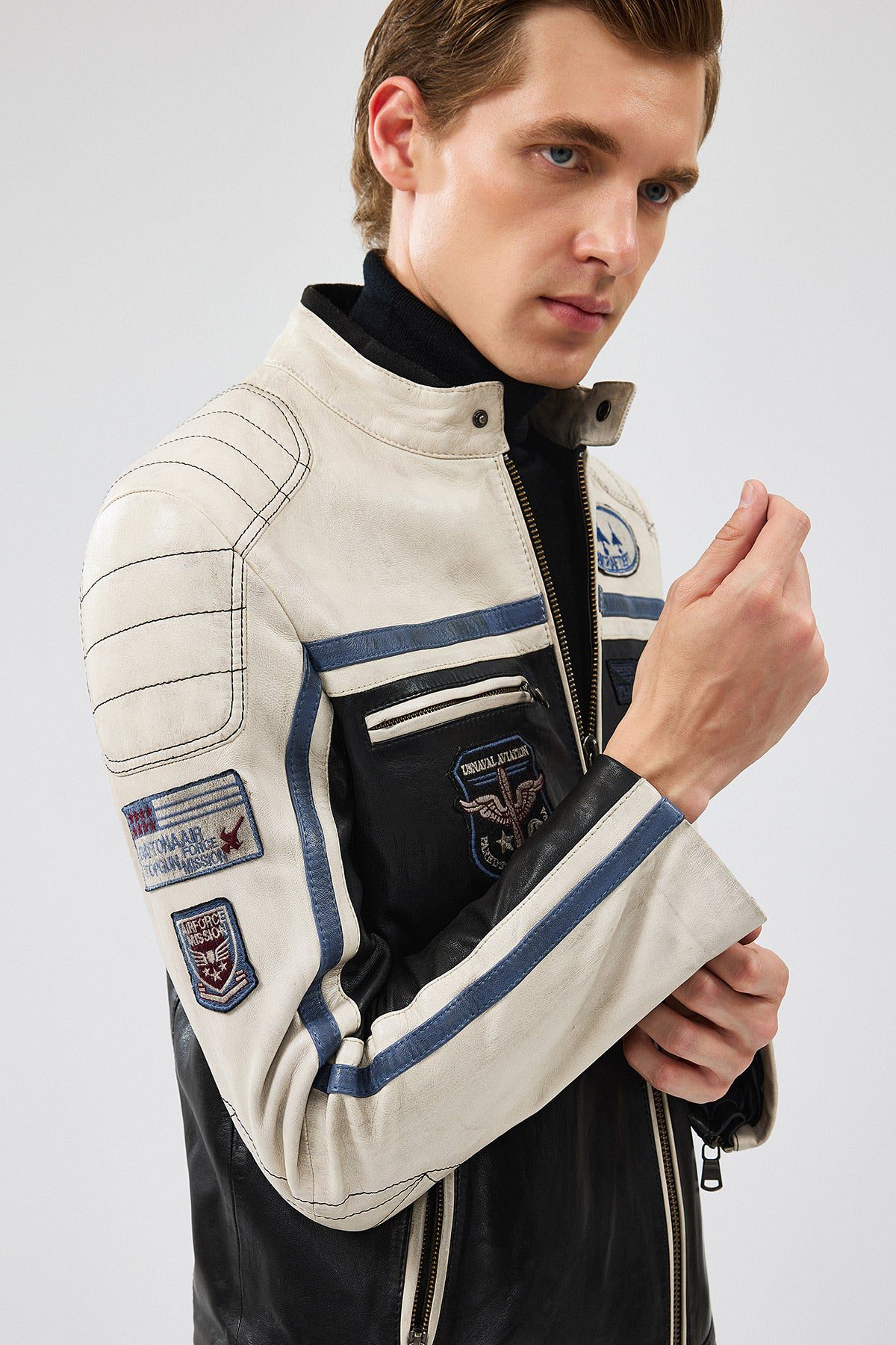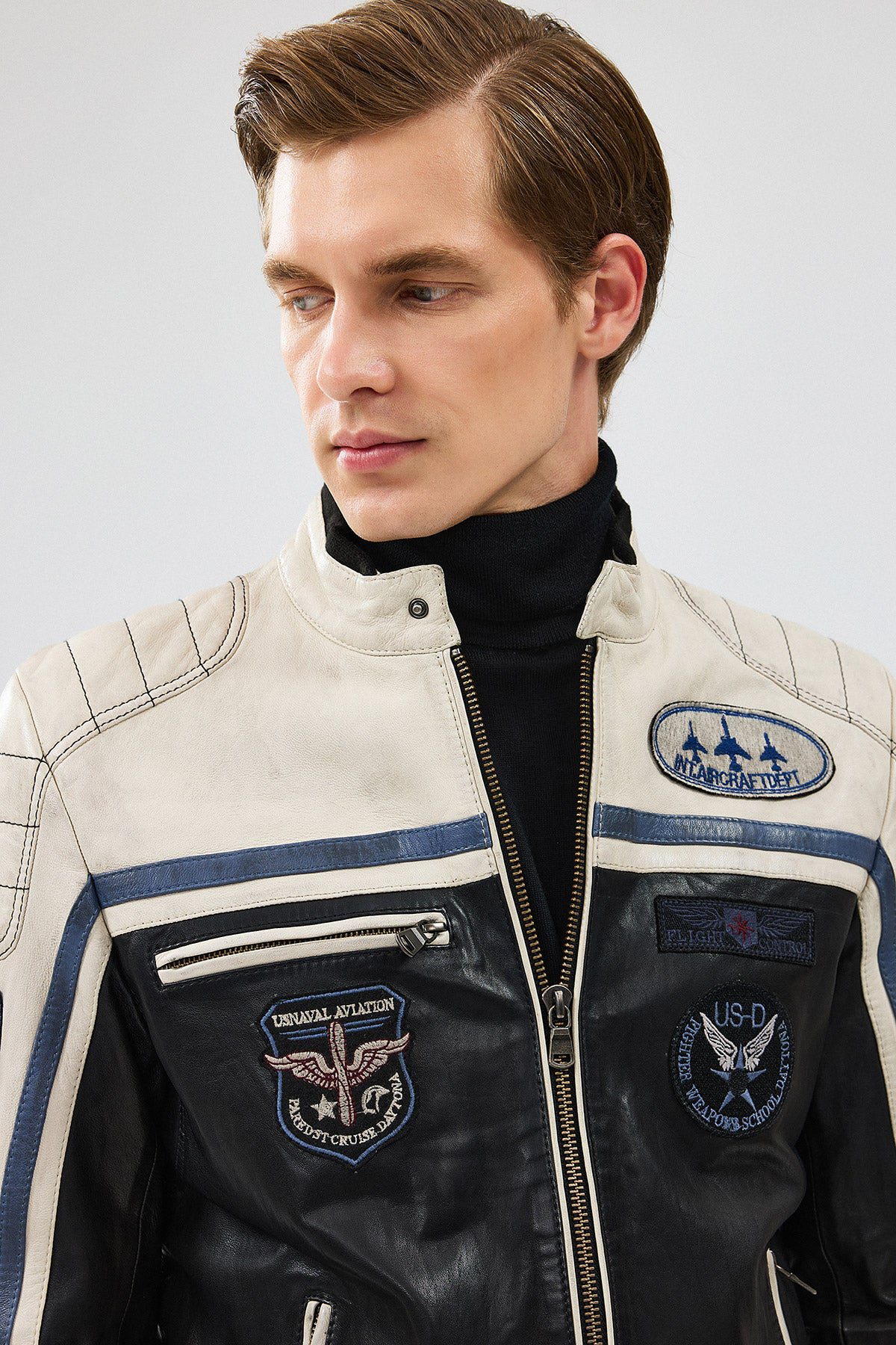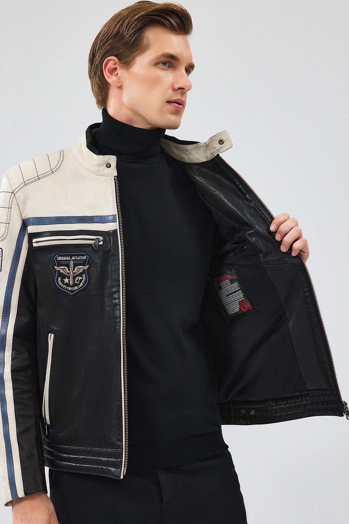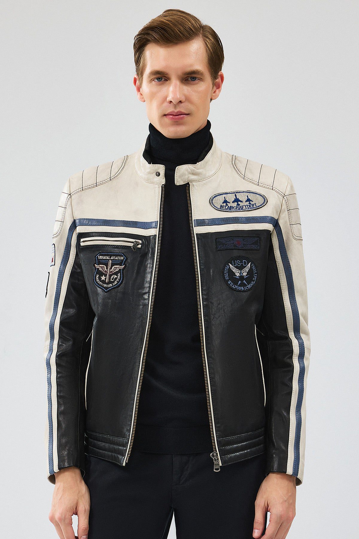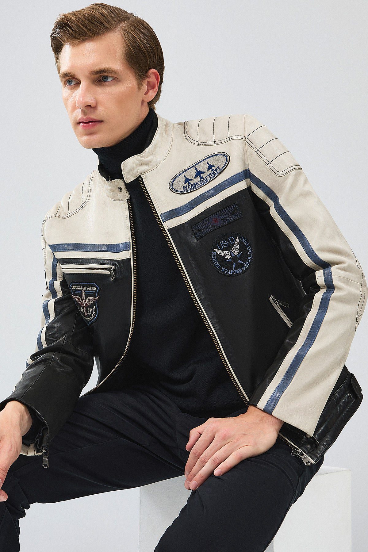 Takeoff Erkek Siyah Armalı Deri Ceket