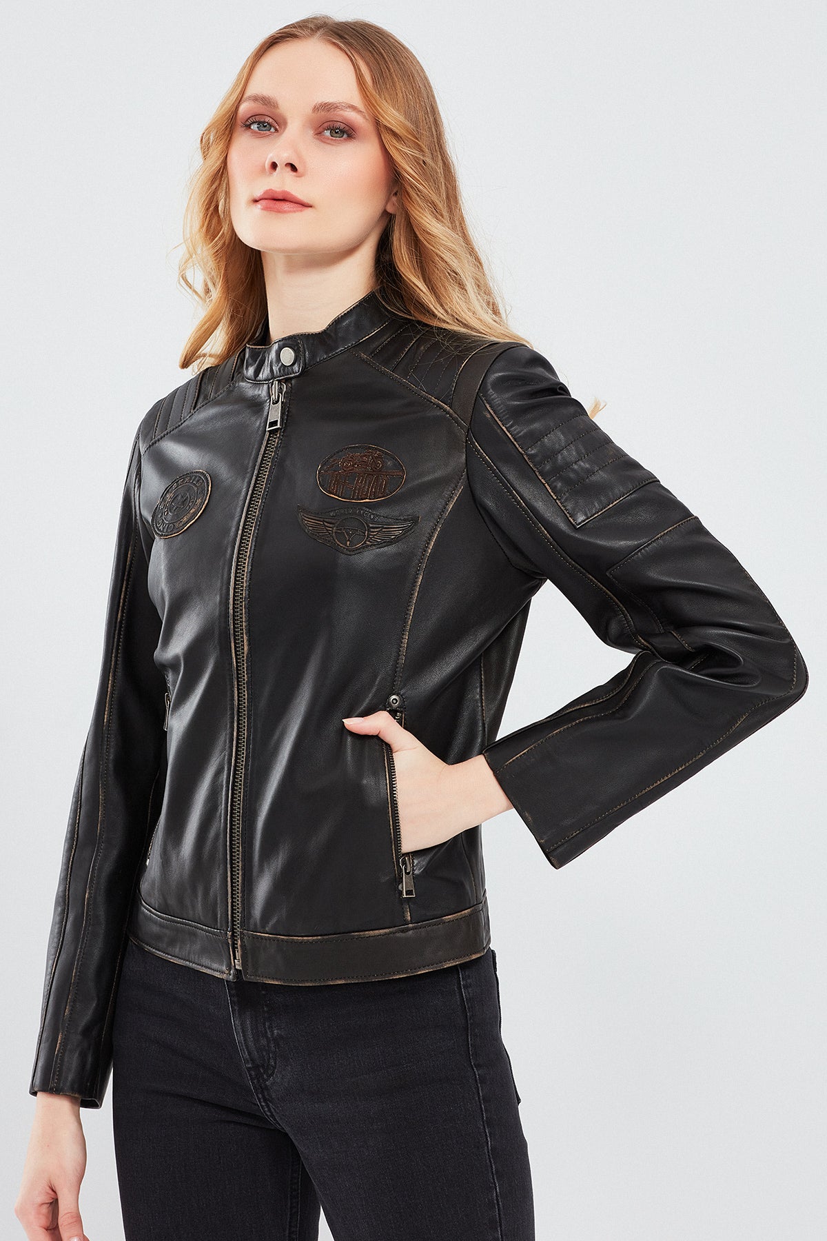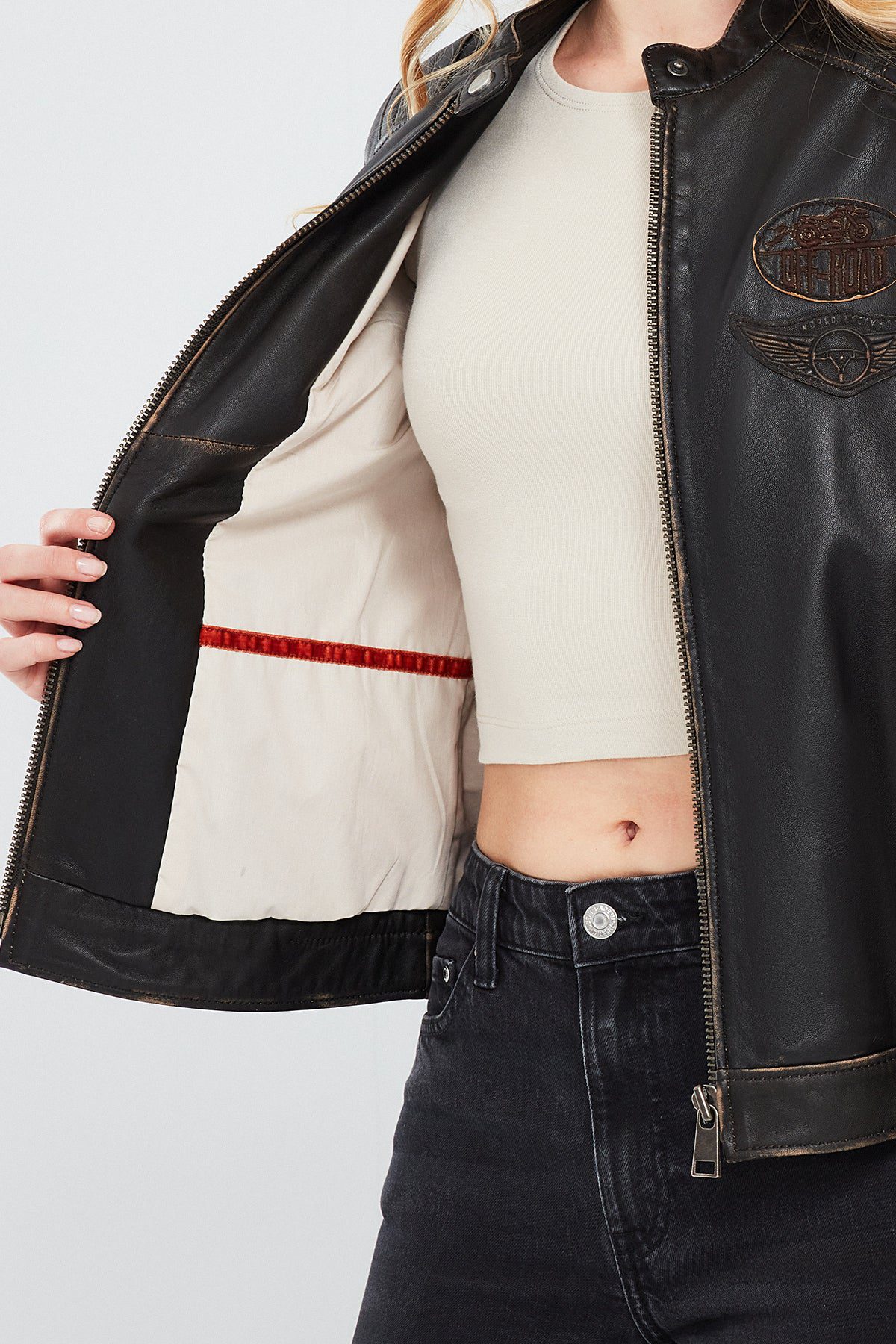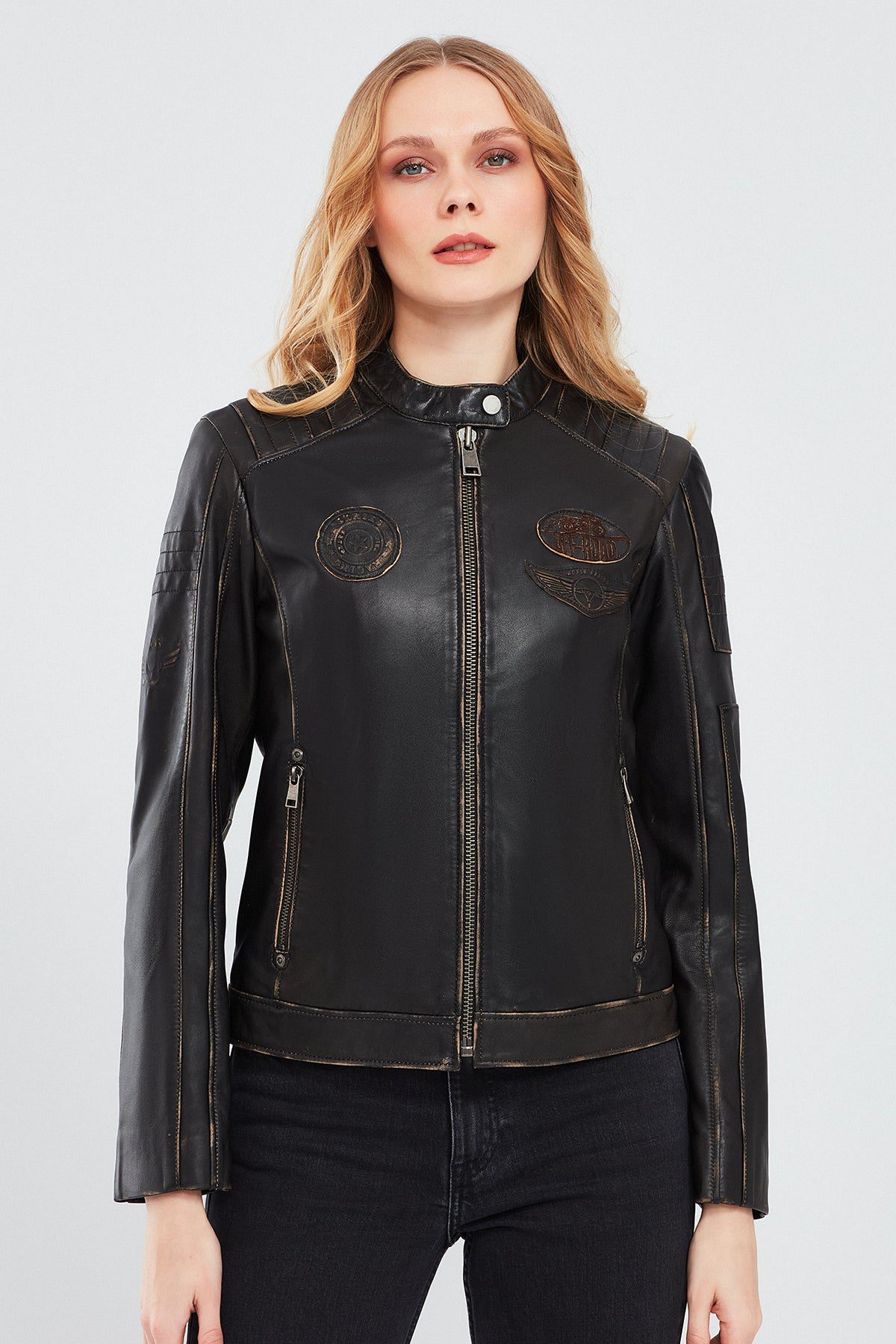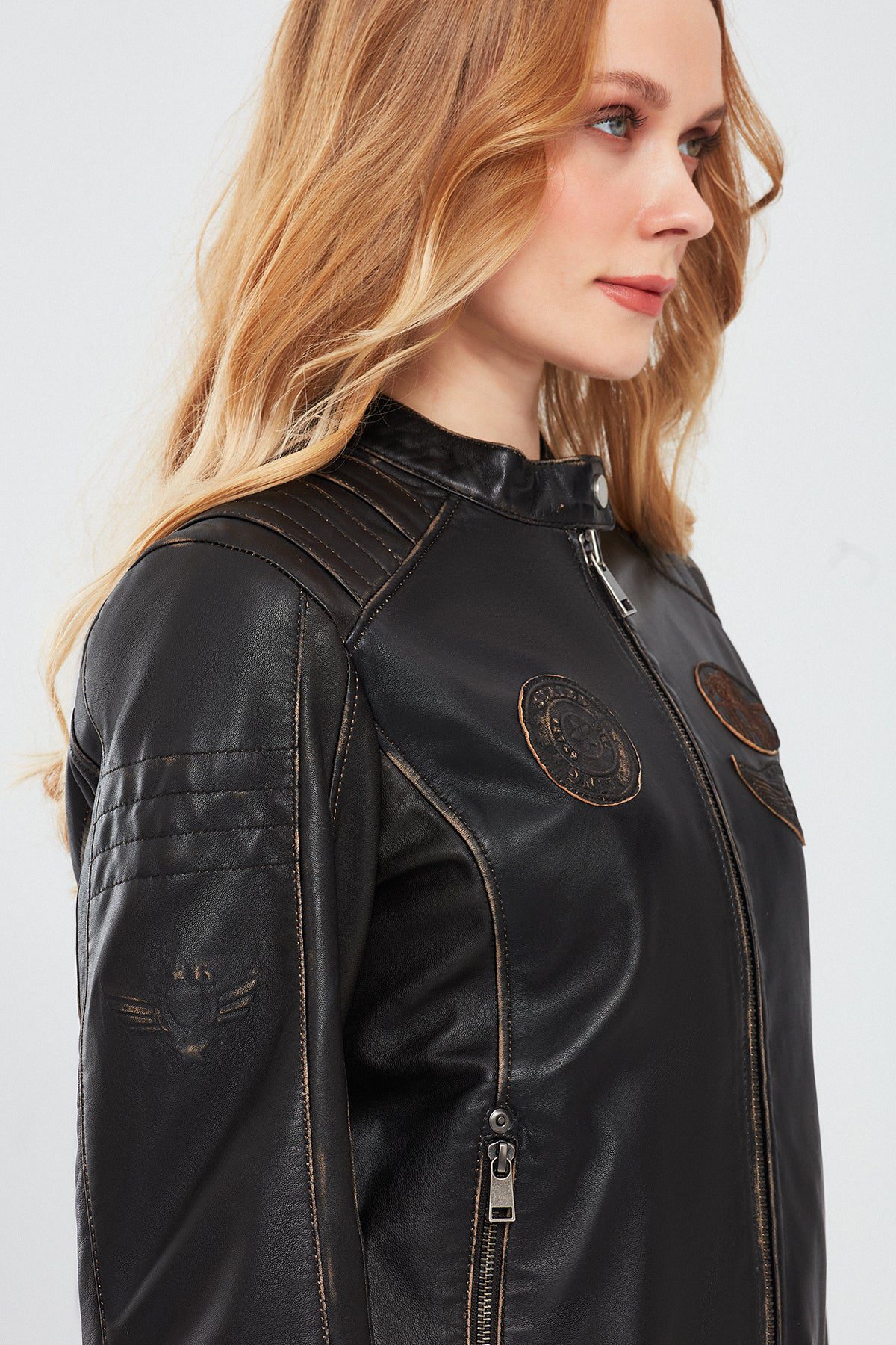 Tampa Kadın Bronz Armalı Spor Deri Mont