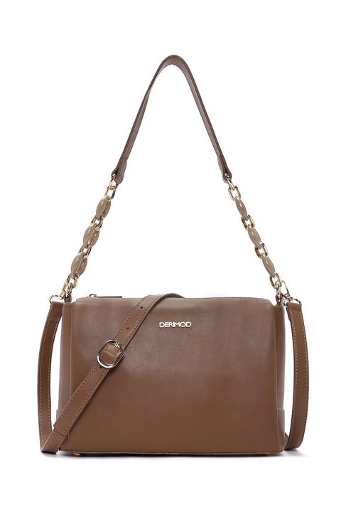 کیف شانه ای ای زنانه بند بلند برنزه دری مد