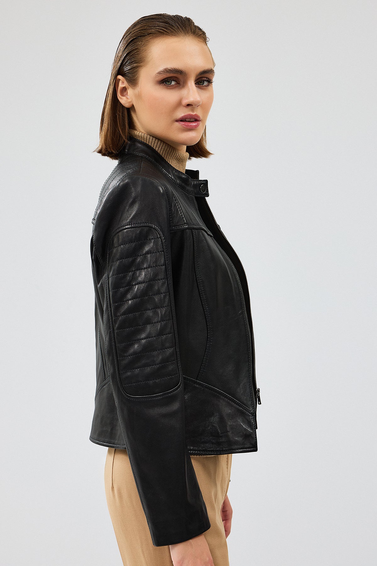 Tania Kadın Siyah Kısa Deri Ceket