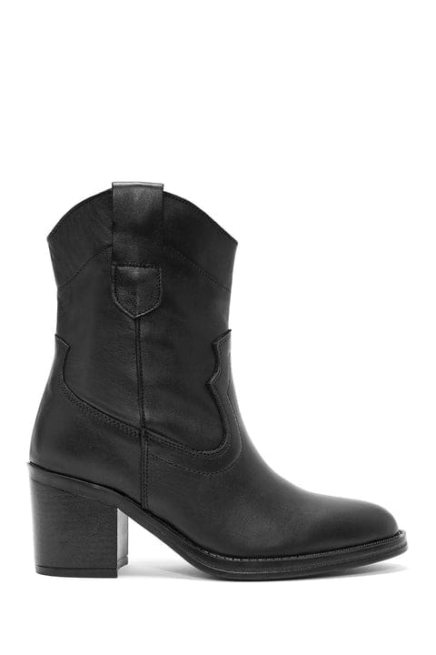 Kadın Siyah Kalın Topuklu Deri Kovboy Bot