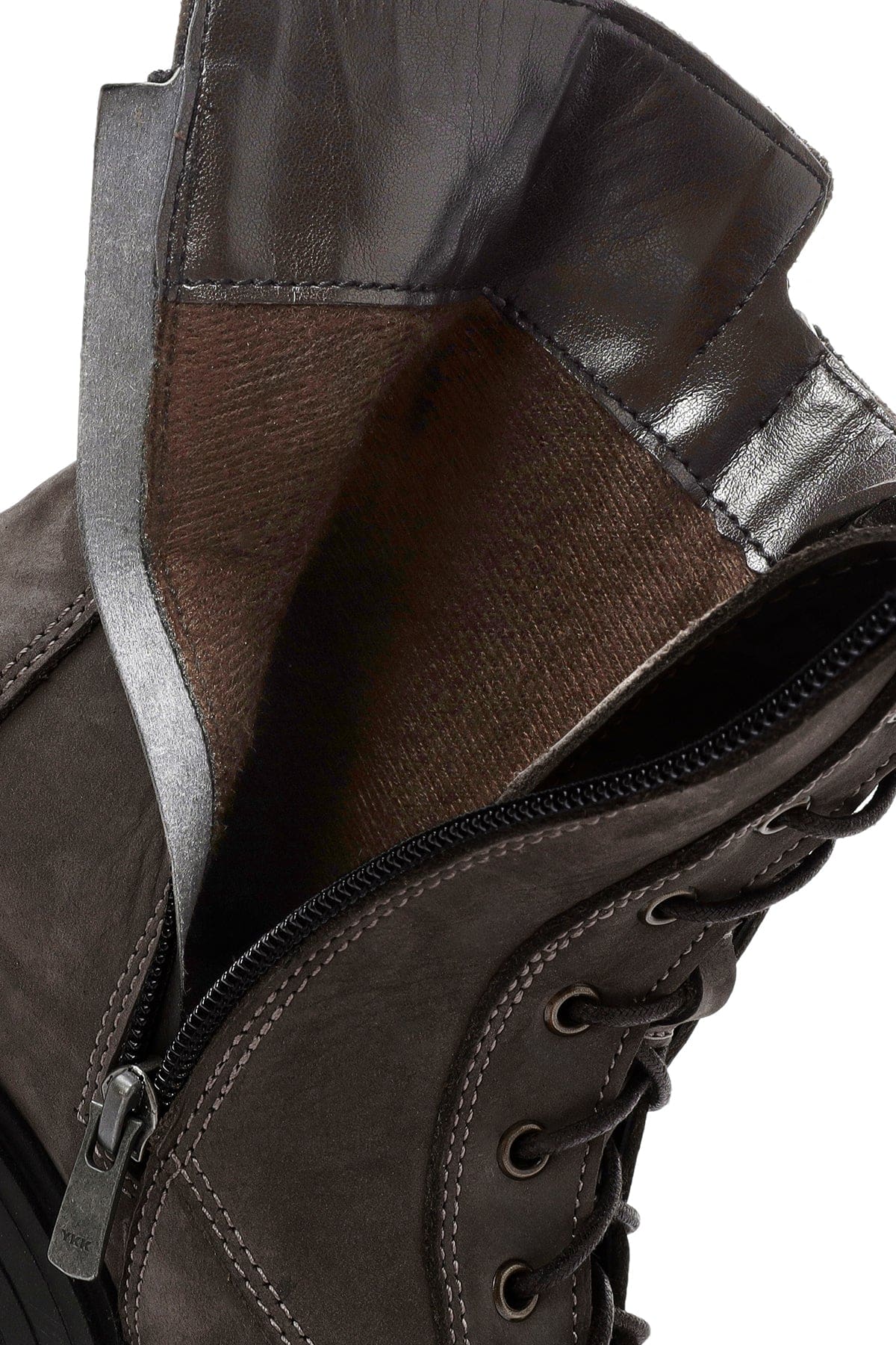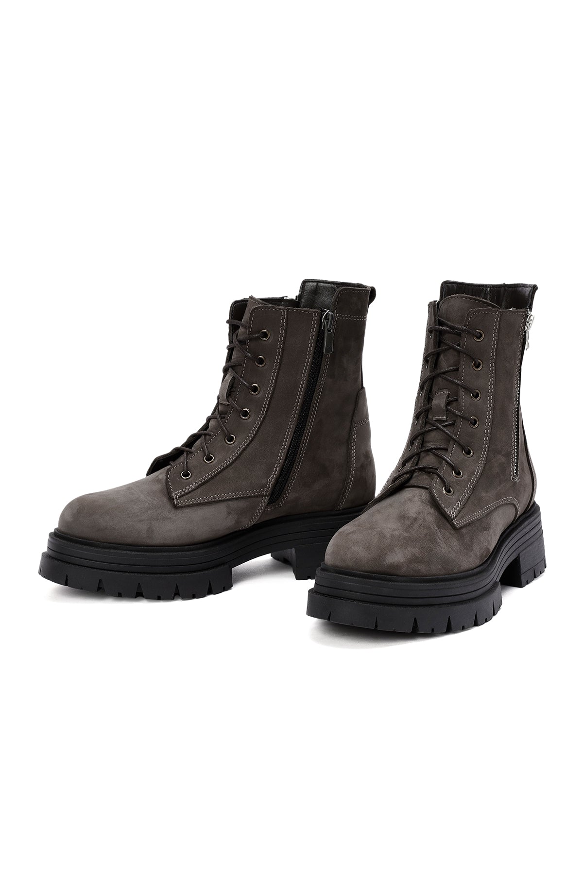 Kadın Vizon Bağcıklı Çift Fermuar Detaylı Kalın Tabanlı Nubuk Deri Postal Bot