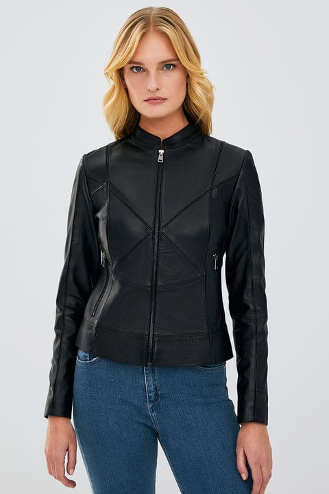 Tiffany Kadın Siyah Slim-Fit Kısa Deri Ceket