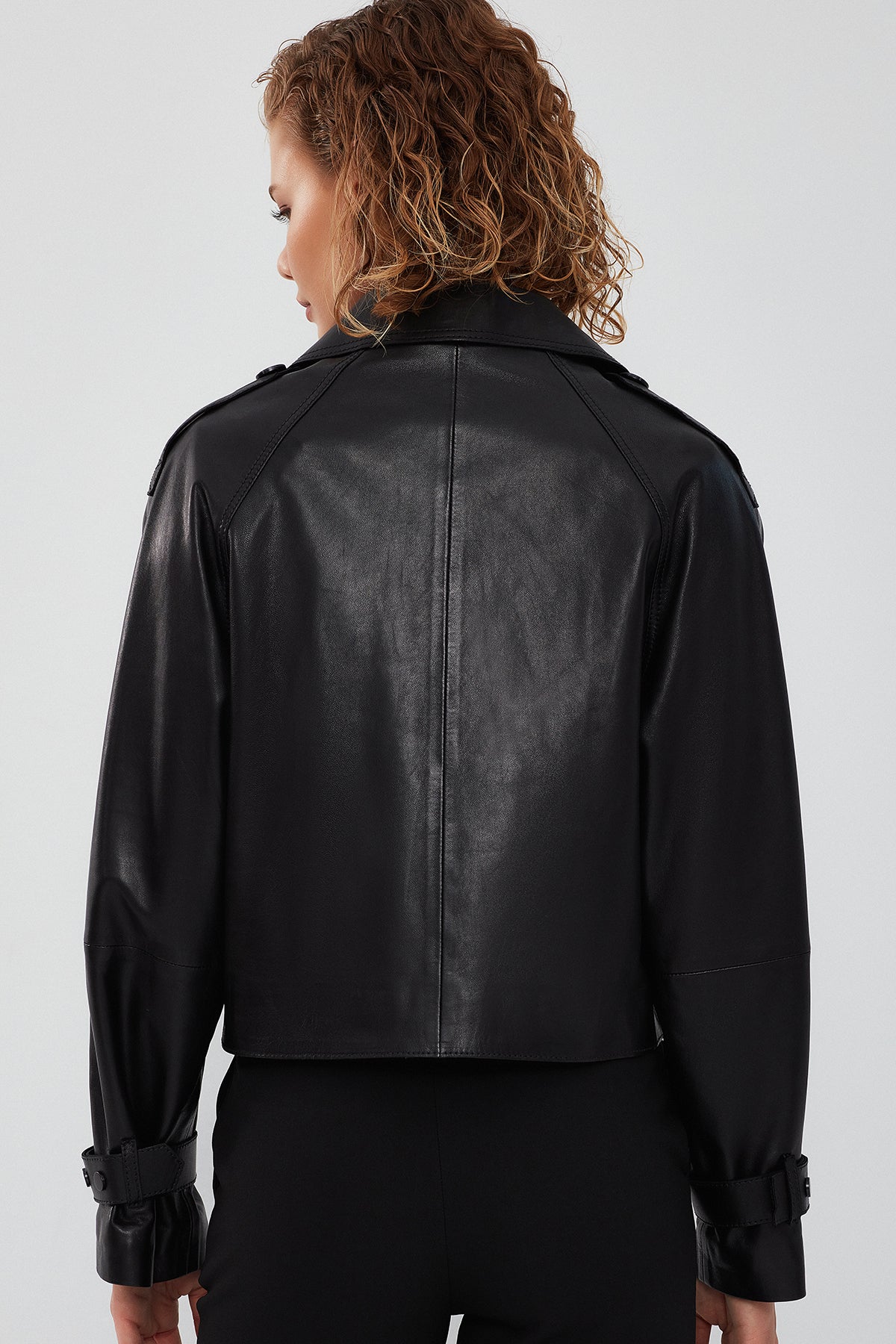 Tracy Kadın Siyah Oversize Kısa Deri Mont