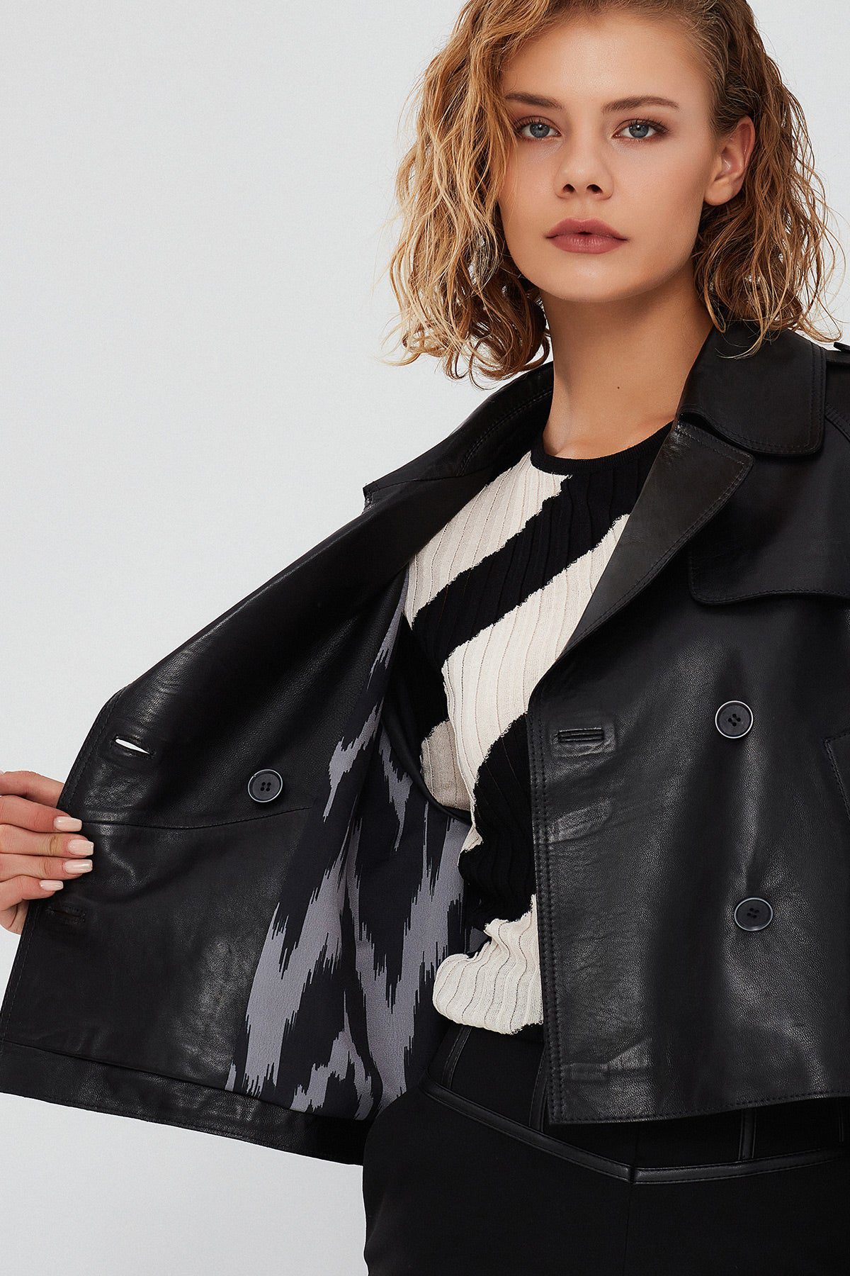 کت چرمی کوتاه اورسایز مشکی زنانه تریسی دری مد