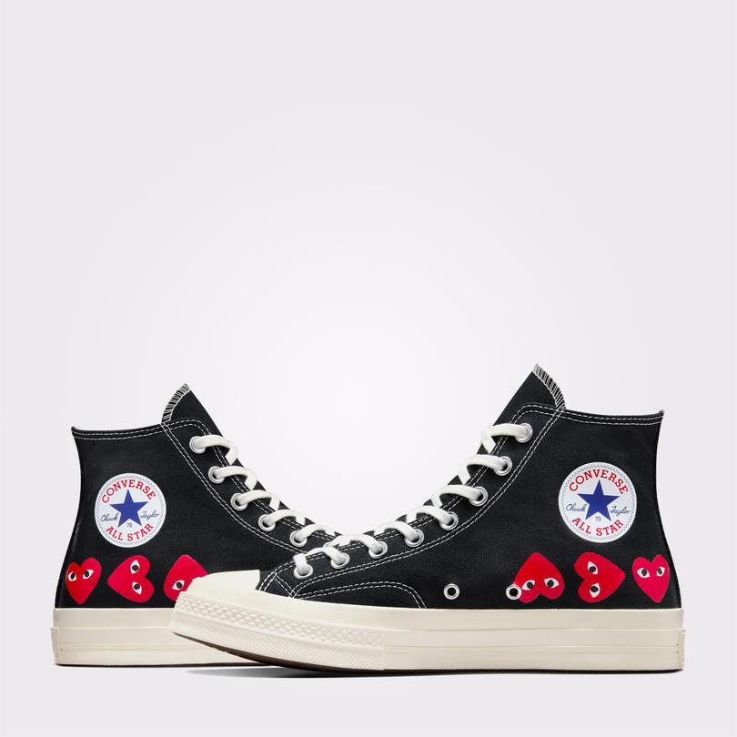 استایل خود را با Converse x Comme des Garçons PLAY Chuck 70 بیان کنید. این سبک خیابانی جزئیات آشنا و دوست داشتنی چاک را با گرافیک چشم نواز خیره کننده جفت می کند.