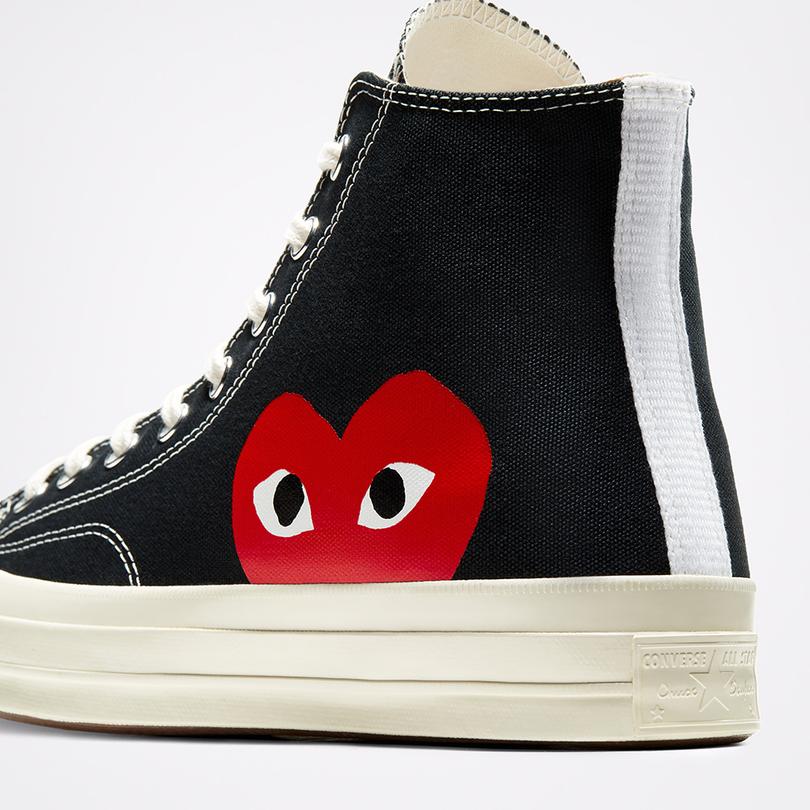 مجموعه Converse x Comme des Garçons سبک کلاسیک چاک تیلور را دوباره تفسیر می کند. لوگوی چشم قلب که توسط گرافیست فیلیپ پاگووسکی و ری کاواکوبو ساخته شده است به اندازه خود چاک تیلور قابل تشخیص است. دو برند نمادین با این طراحی خاص از پاریس تا نیویورک گرد هم می آیند.
