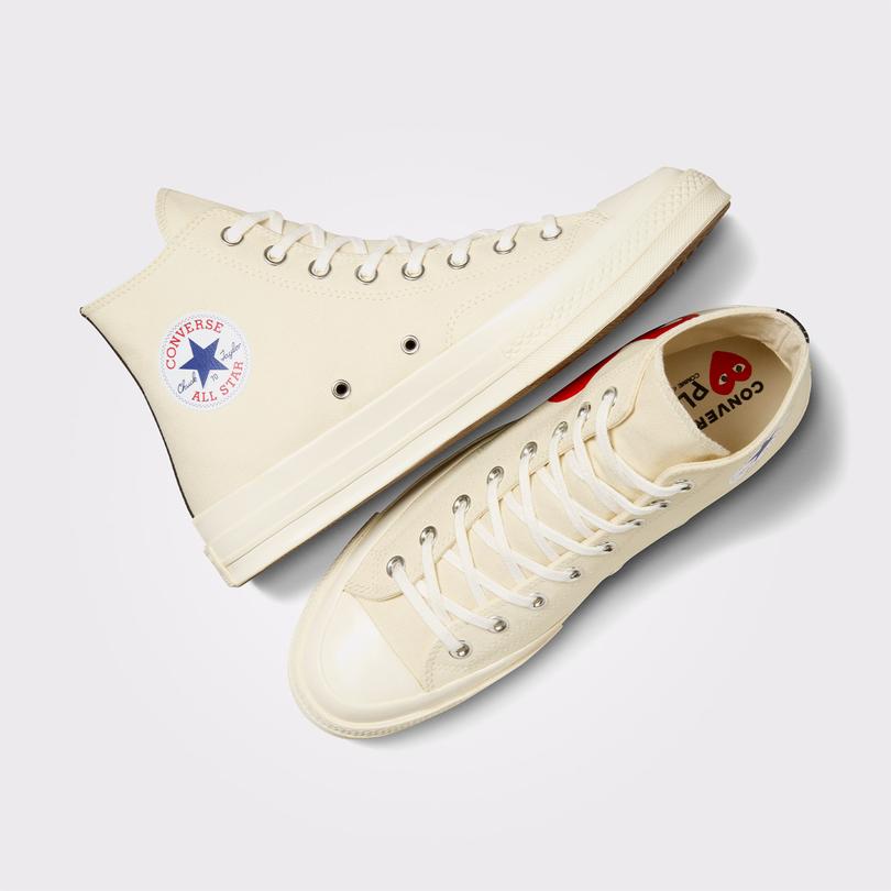 استایل خود را با Converse x Comme des Garçons PLAY Chuck 70 بیان کنید. این سبک خیابانی جزئیات آشنا و دوست داشتنی چاک را با گرافیک چشم نواز خیره کننده جفت می کند.