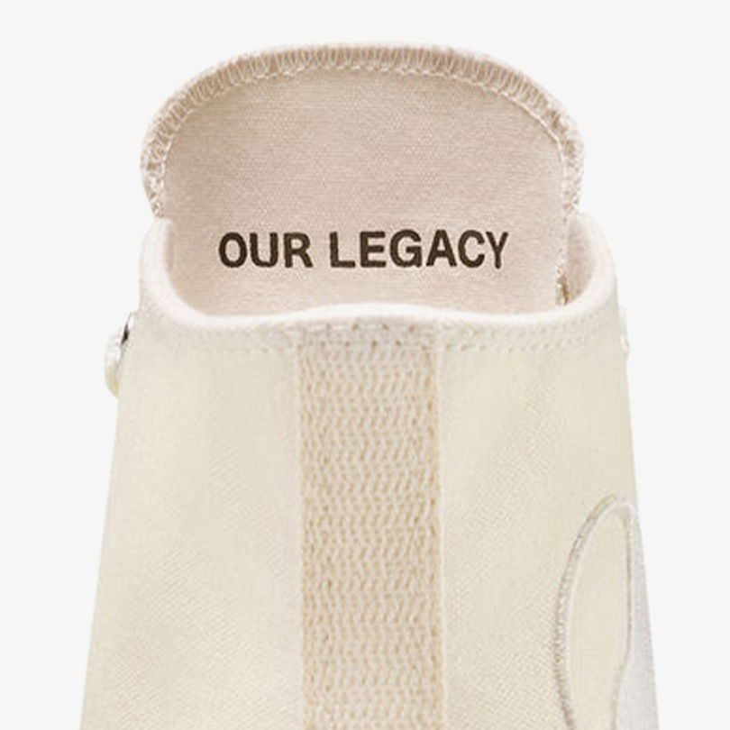 Our Legacy برندی است که در استکهلم ایجاد شده و طرفداران زیادی در سراسر جهان ایجاد کرده است. آنها برای تفسیر مجدد طرح های کلاسیک به روشی متفاوت شناخته شده اند. آنها این بار مدل چاک ۷۰ را با جزئیات قدیمی Converse و لمس های جدید طراحی کردند. نوار بزرگ روباه و جعبه پنجه کوتاه این مدل کلاسیک را جدید و آشنا کرده است.