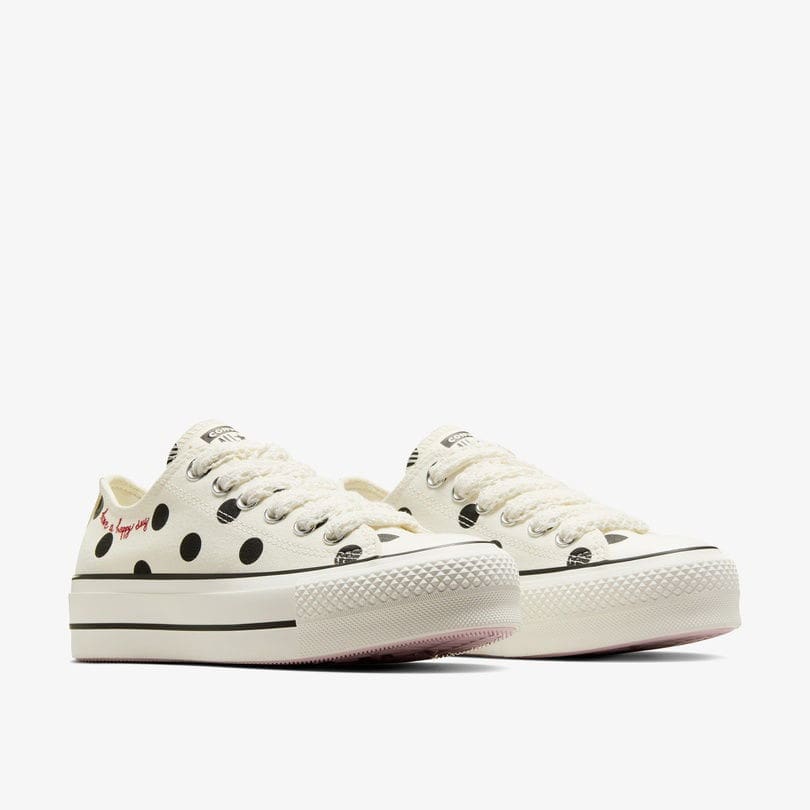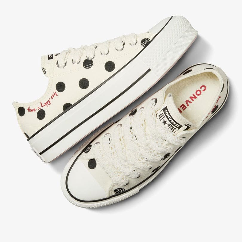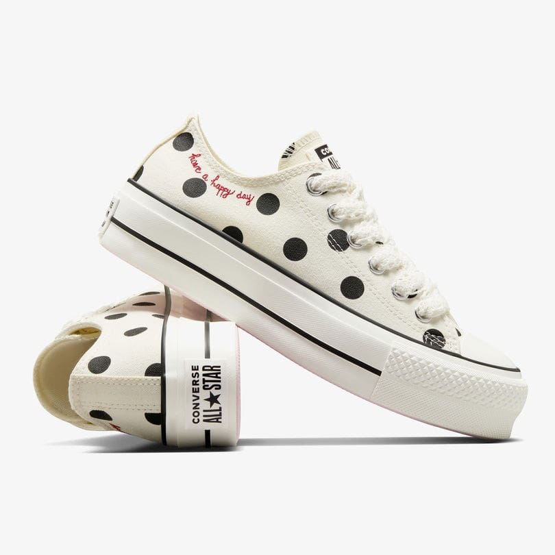 کتونی کانورس آل استار Chuck Taylor All Star Lift Polka Dots کرم لژدار زنانه اورجینال