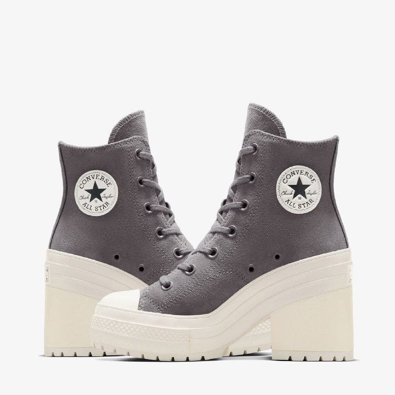 کتونی چرمی لژدار کانورس آل استار Chuck 70 De Luxe Heel طوسی زنانه اورجینال