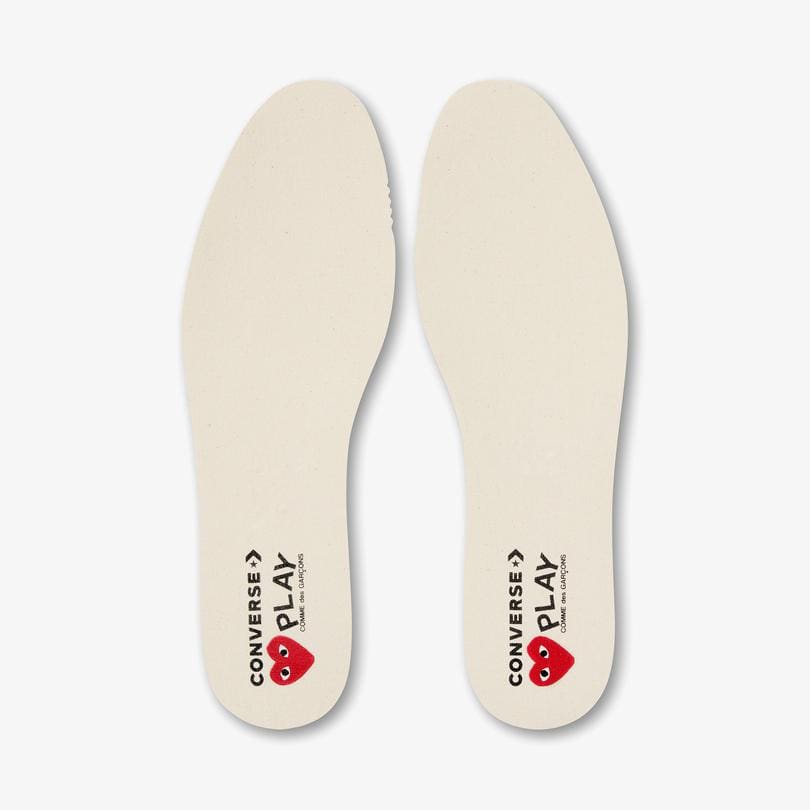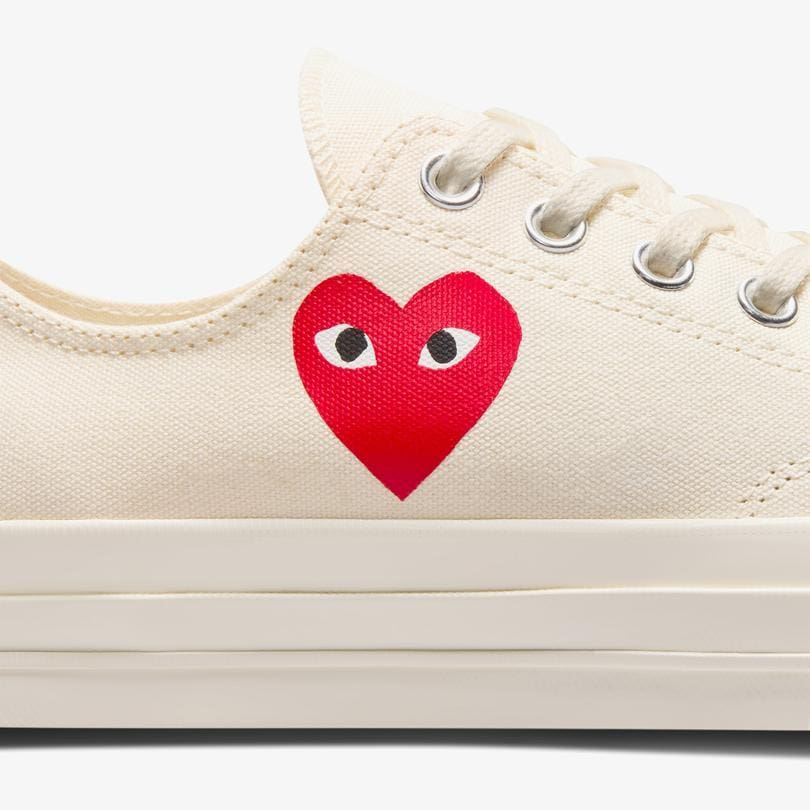 مشارکت نمادین بین Converse و Comme des Garçons بیش از یک دهه است که با استفاده از آرم قلب و چشم به روشهای مختلف، چشمانداز مفهومی این برند را به خیابانهای سراسر جهان آورده است. Comme des Garçons، مورد علاقه طرفداران، لوگوی قلب و چشمان خود را با طراحی مینیمالیستی به Chuck 70 باز می گرداند.