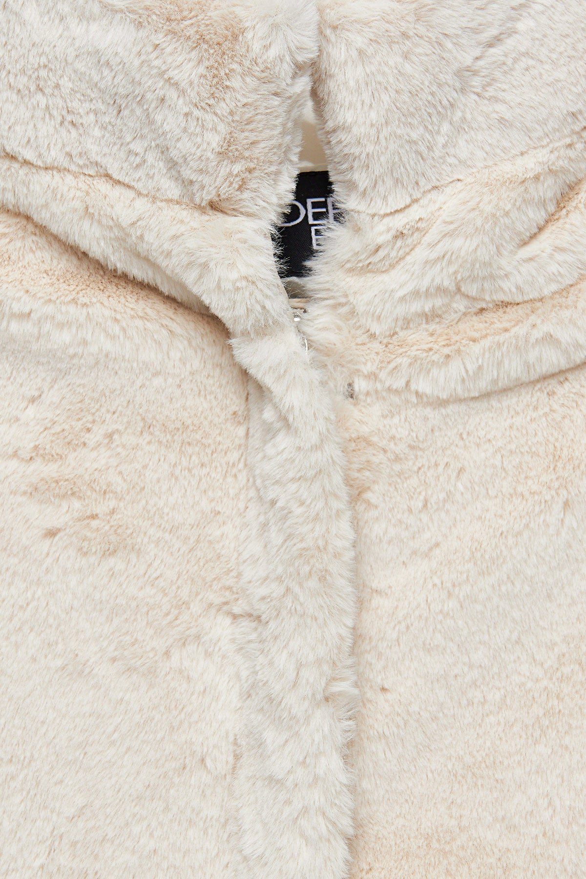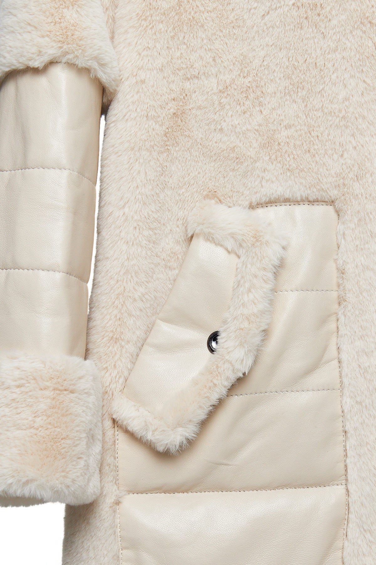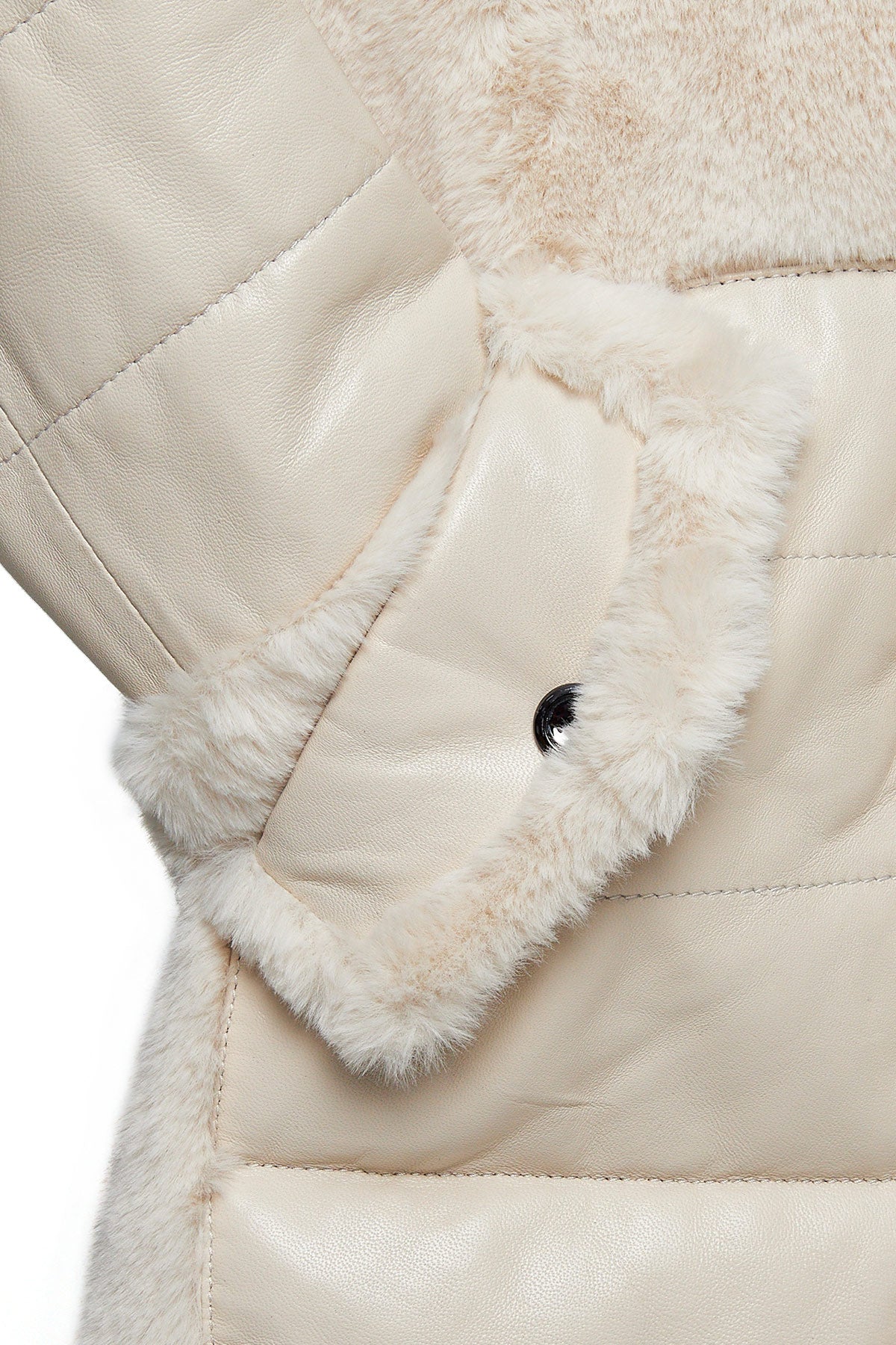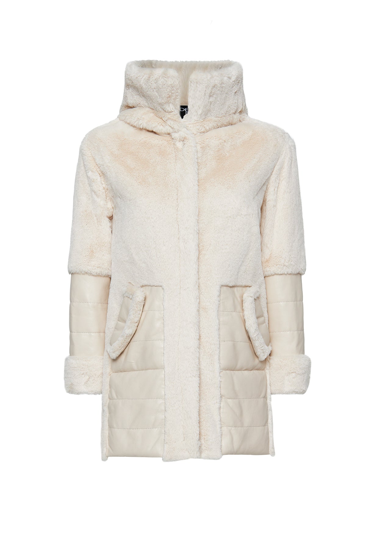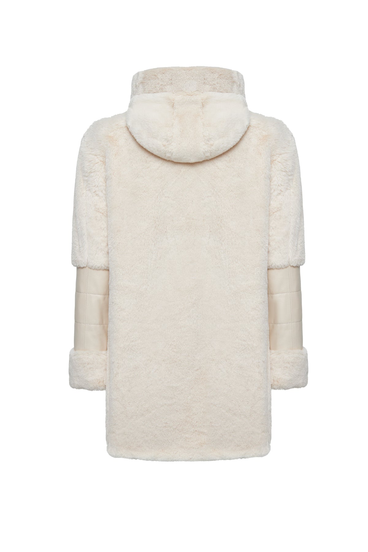 Virginia Kadın Bej Kapüşonlu Teddy Deri Kaban