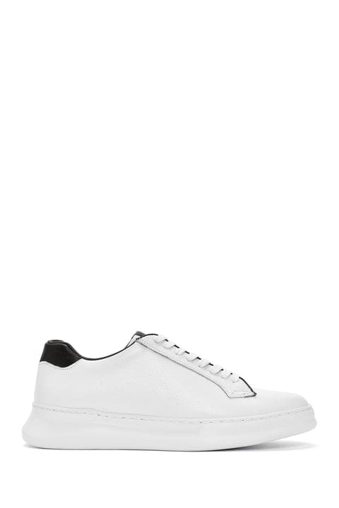 Erkek Beyaz Bağcıklı Deri Sneaker