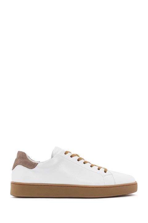 Erkek Beyaz Bağcıklı Deri Sneaker