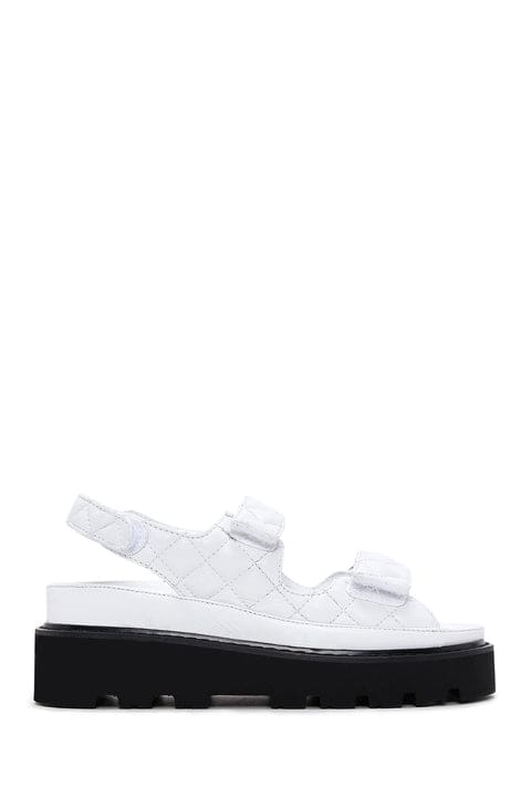 Kadın Beyaz Deri Kalın Tabanlı Sandalet