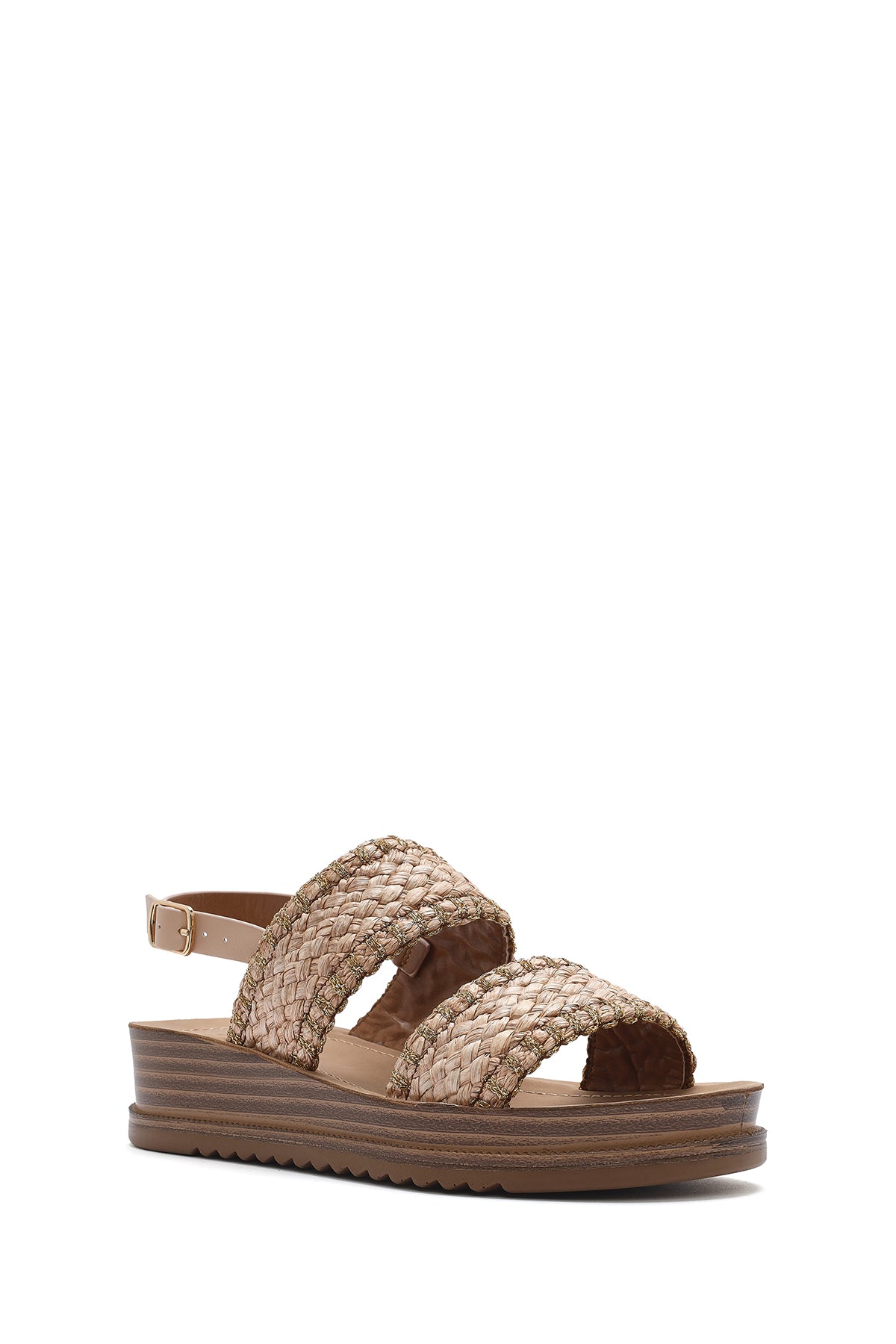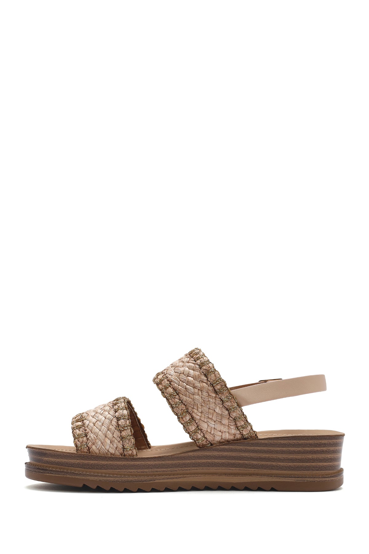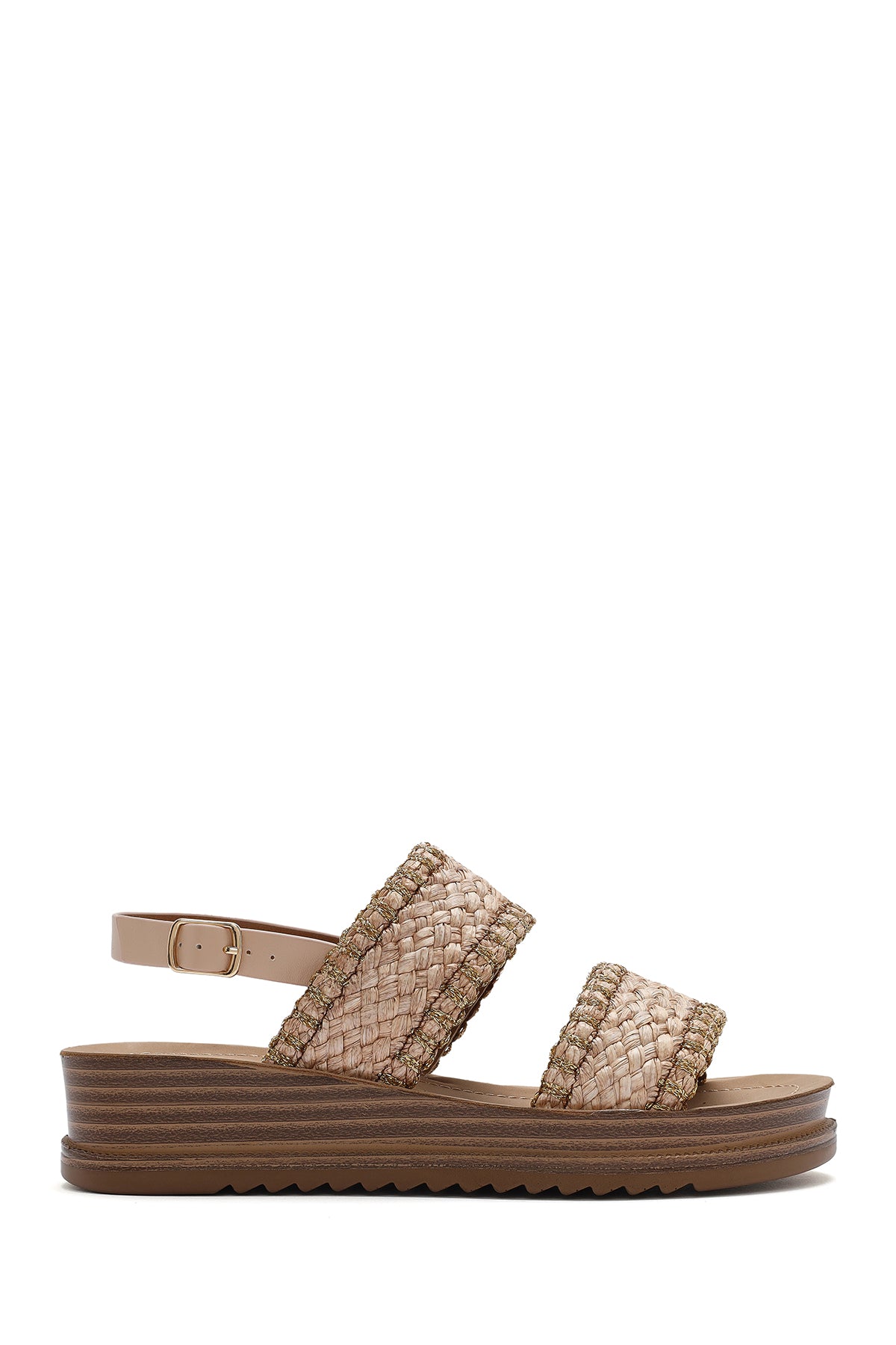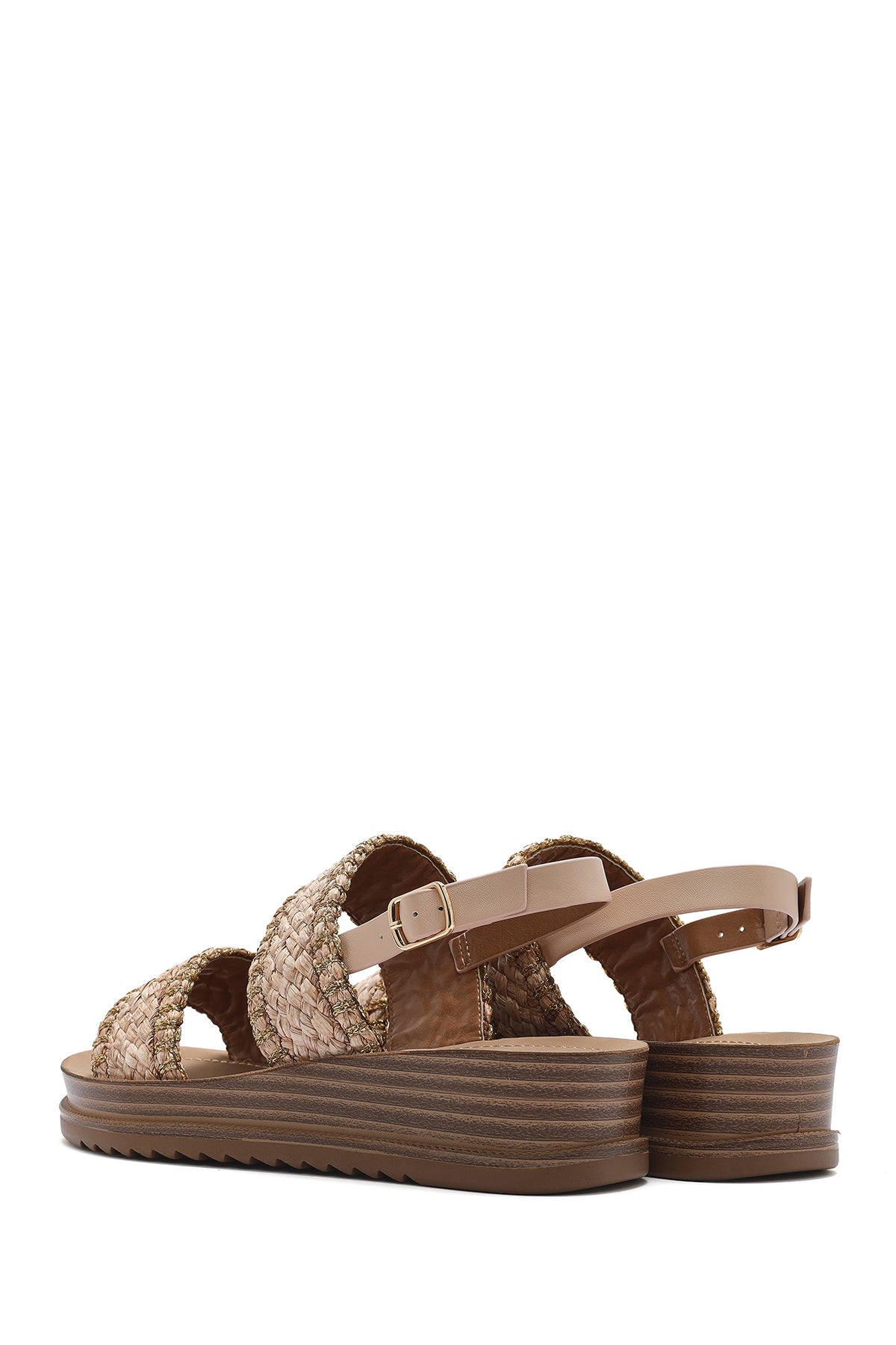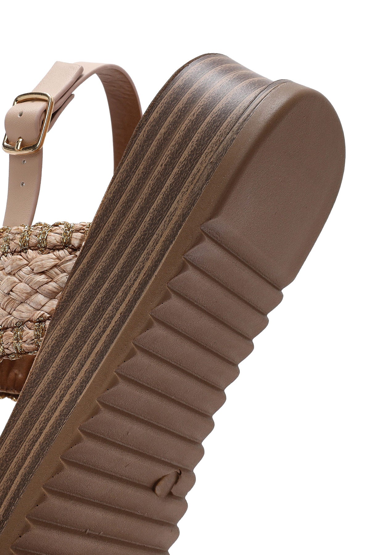 Kadın Bej Bilekten Tokalı Kalın Tabanlı Hasır Sandalet