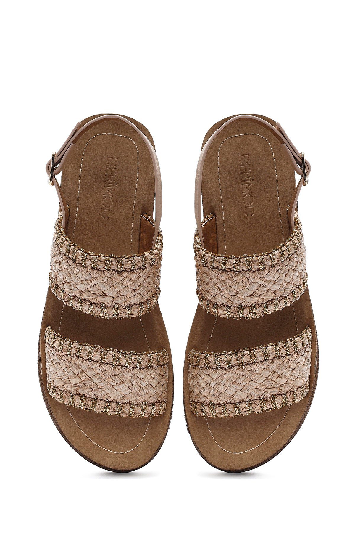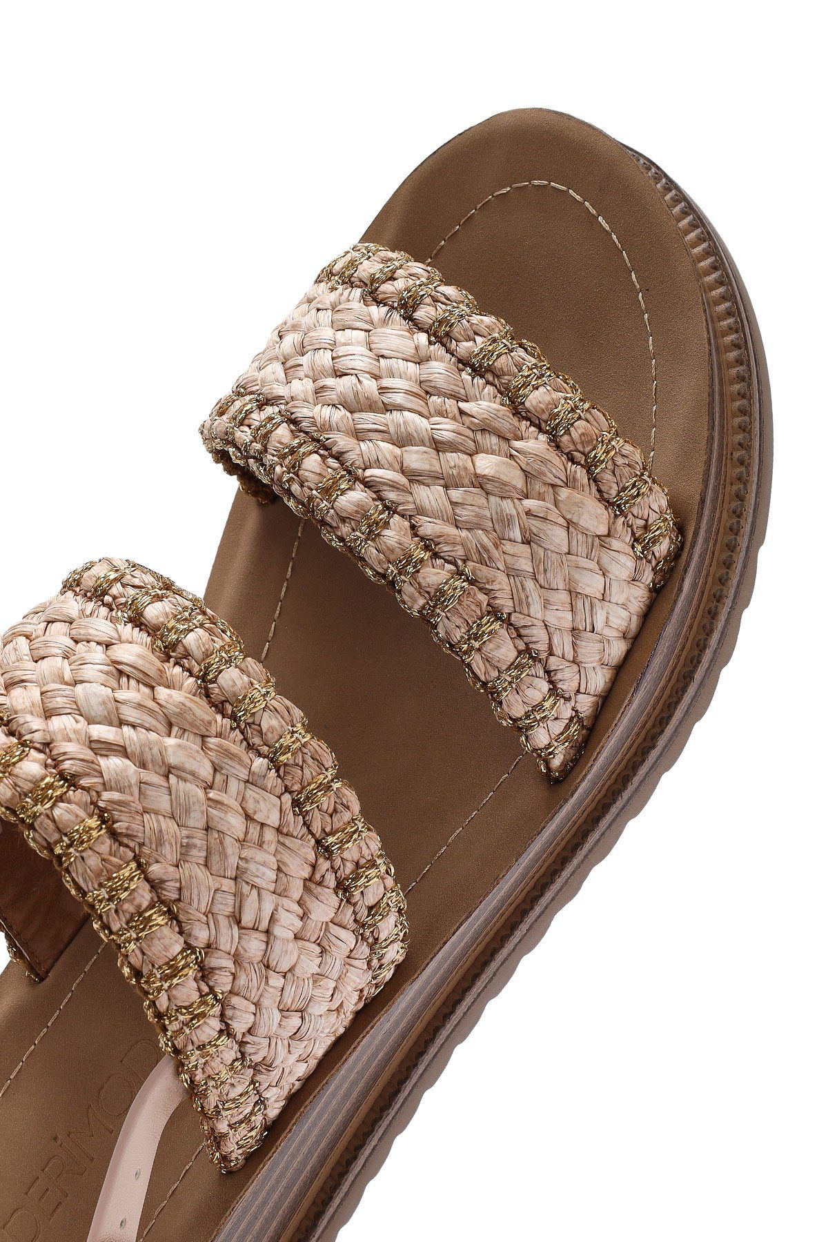 صندل زنانه بژ بنددار کفی ضخیم حصیری دری مد