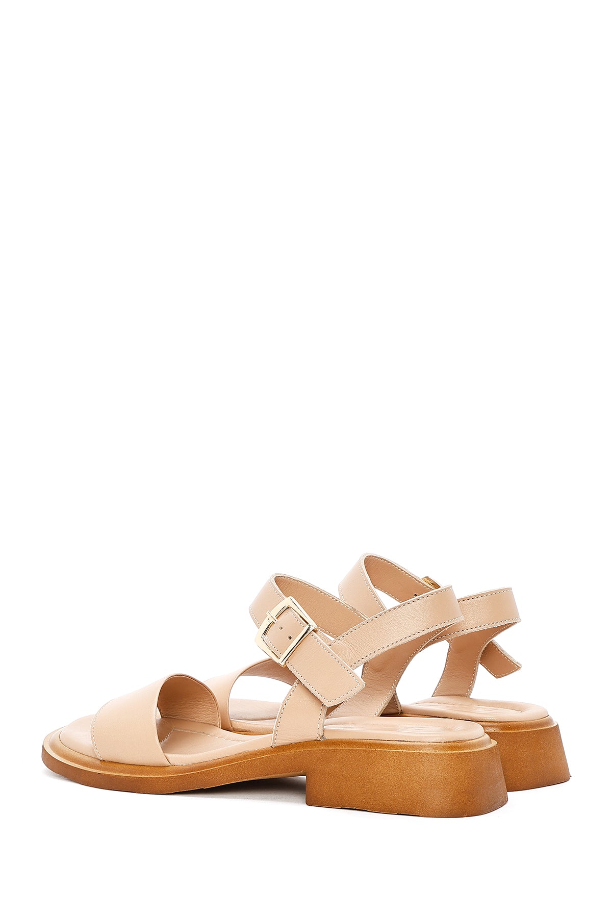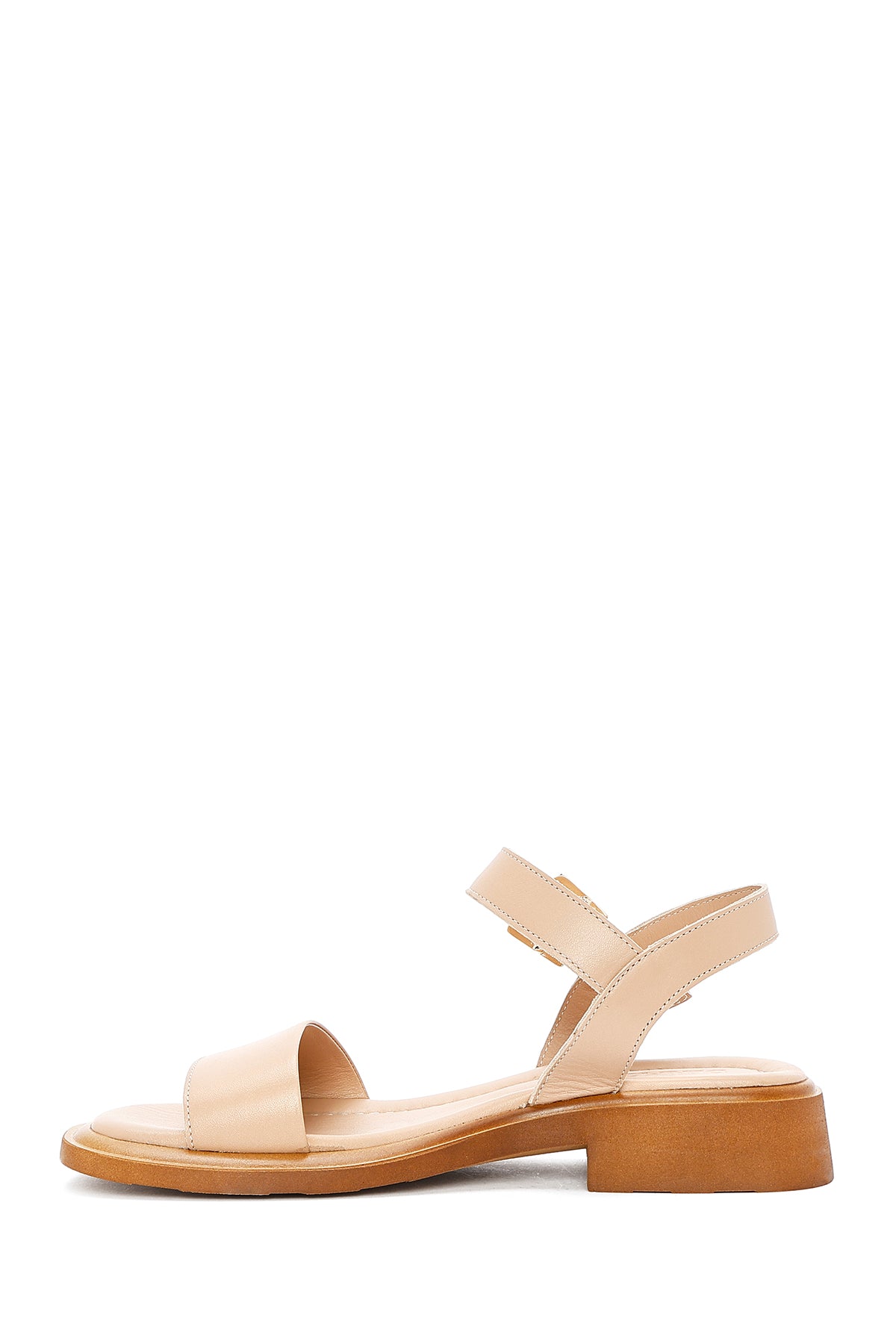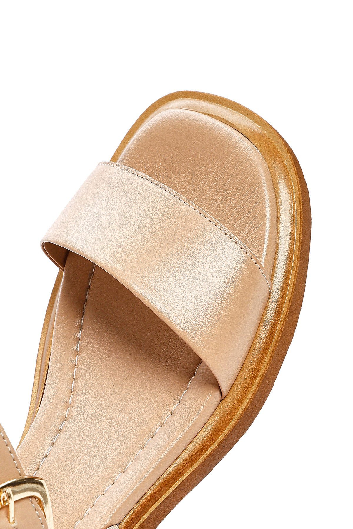 Kadın Bej Bilekten Tokalı Deri Sandalet