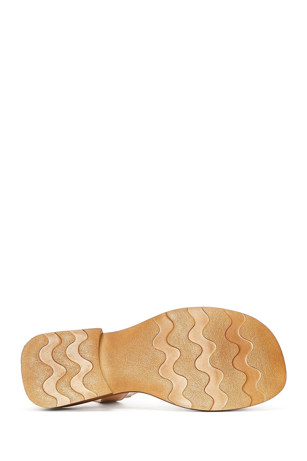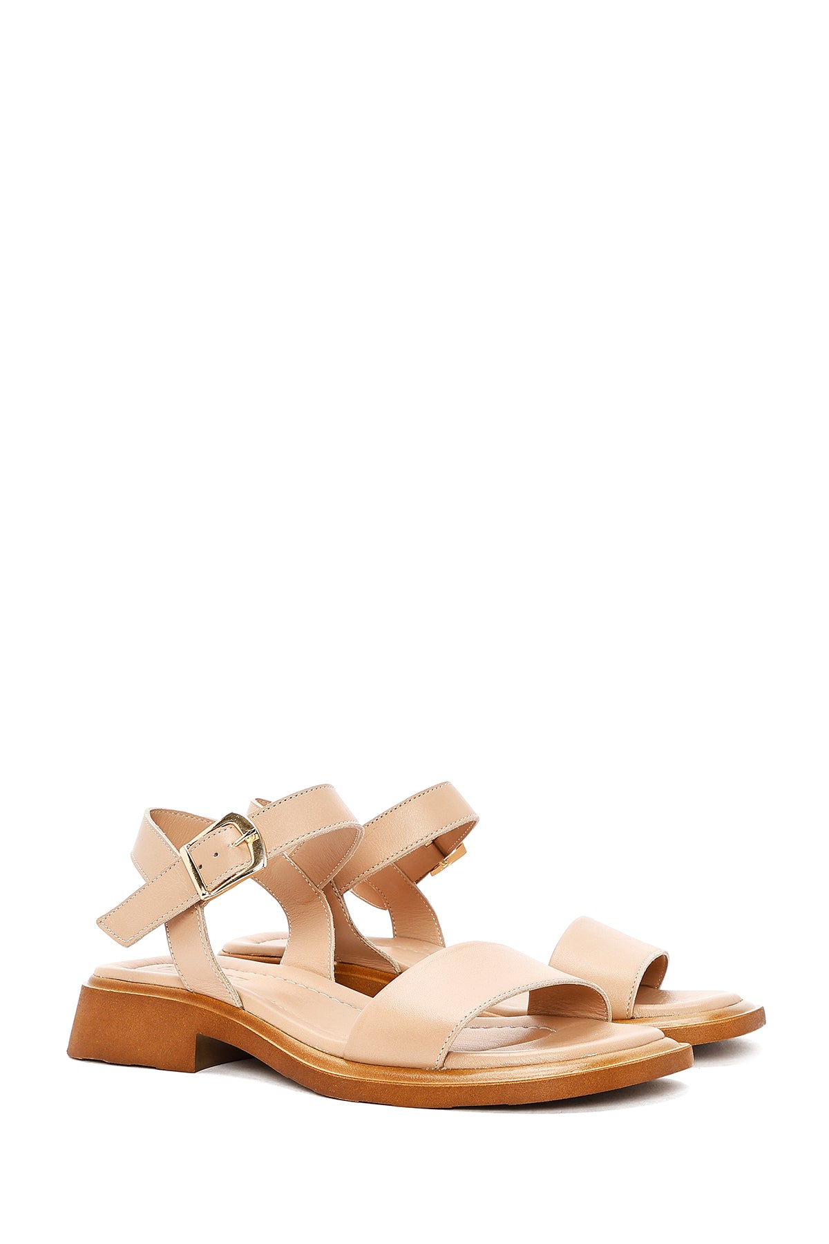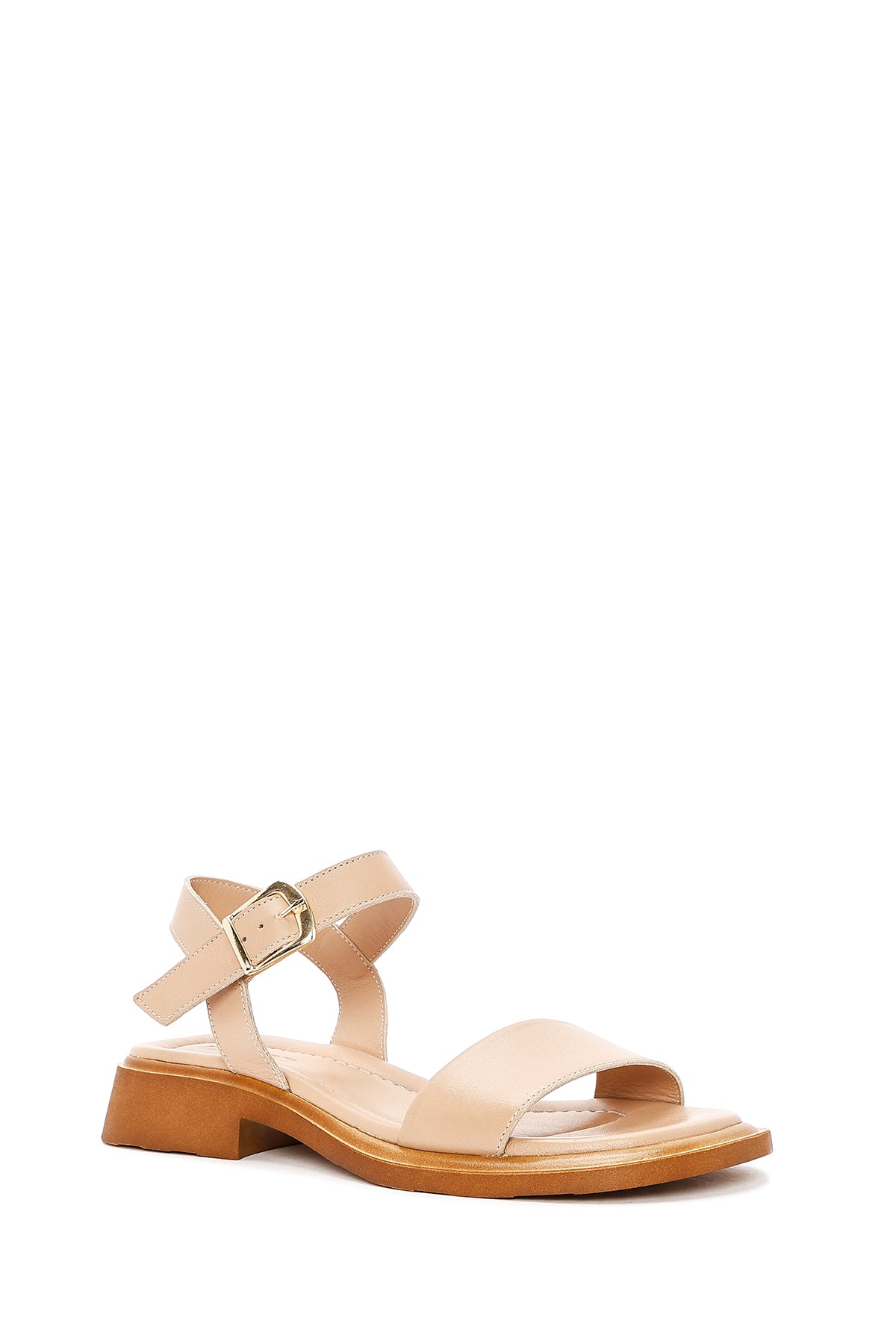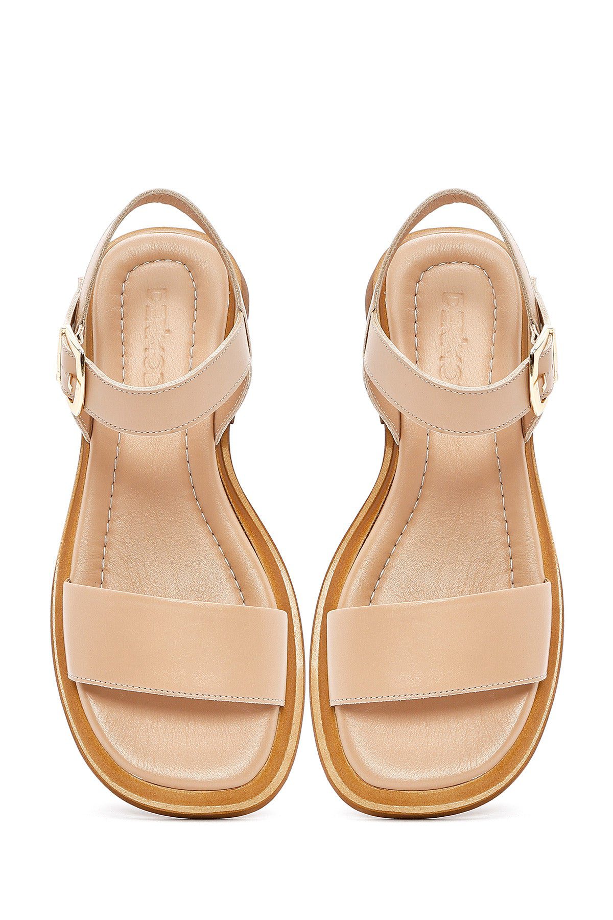 Kadın Bej Bilekten Tokalı Deri Sandalet