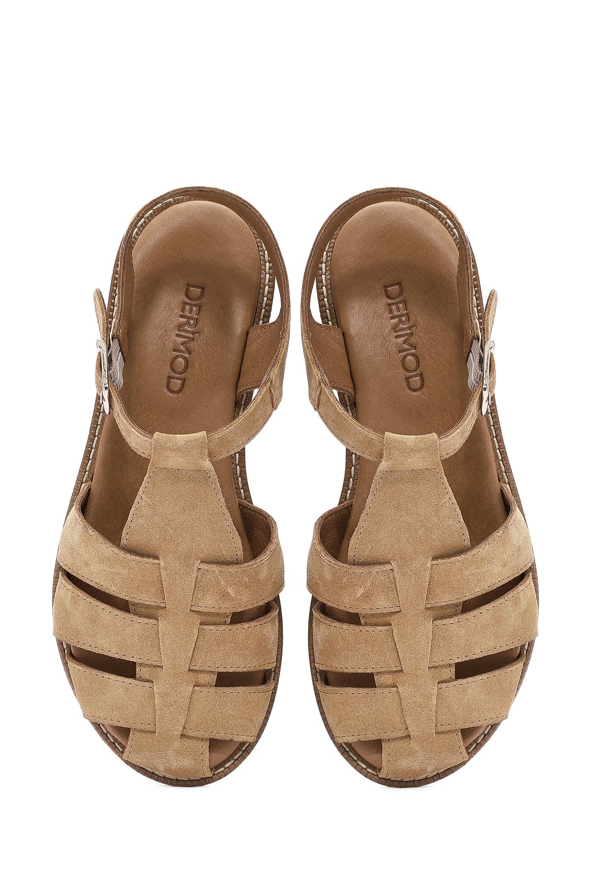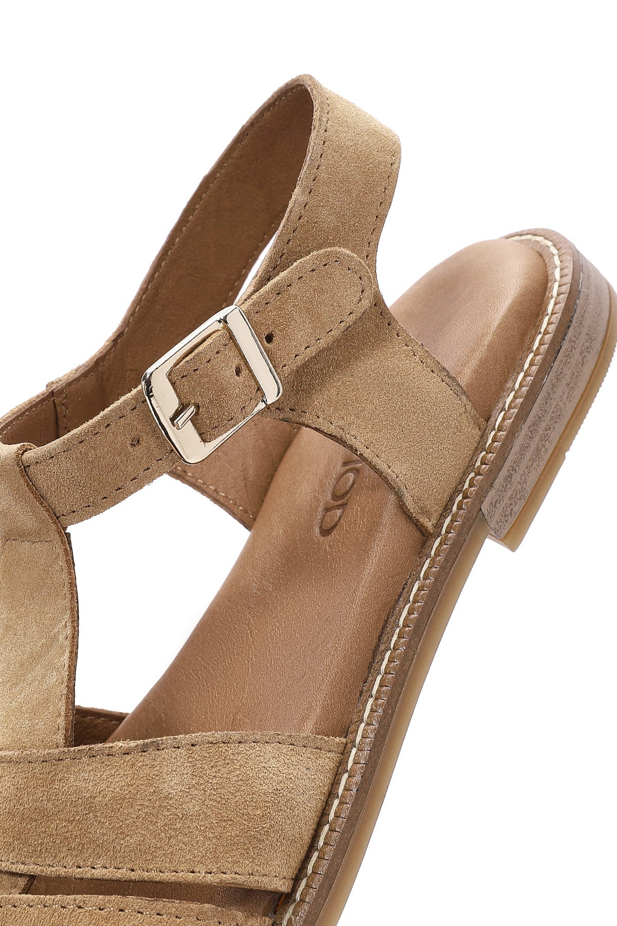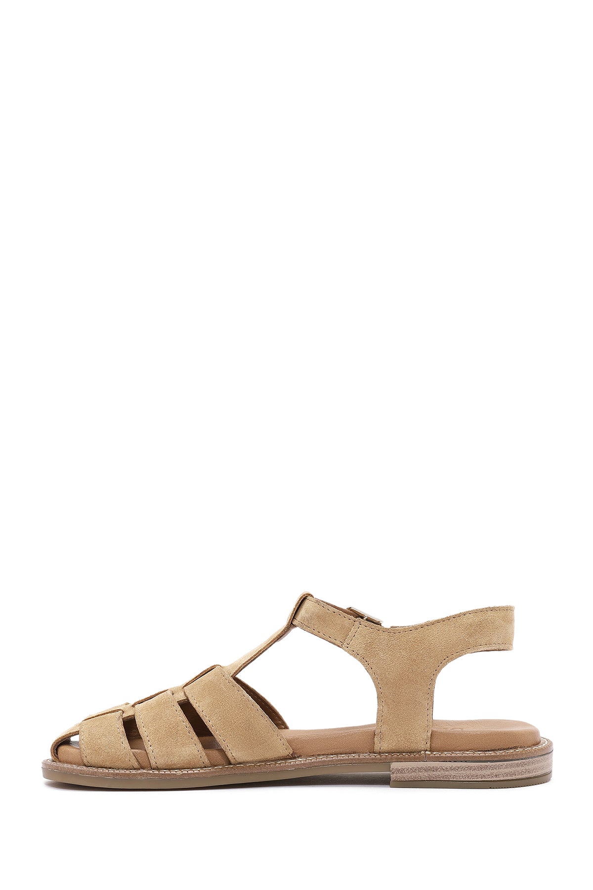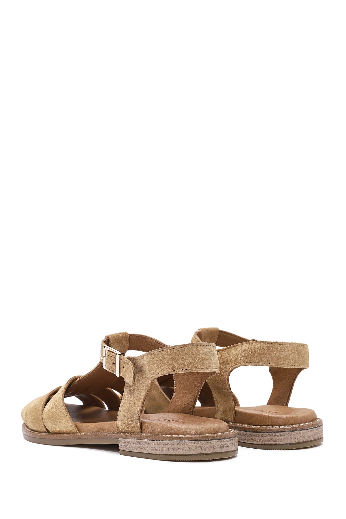 Kadın Bej Bilekten Tokalı Süet Deri Sandalet