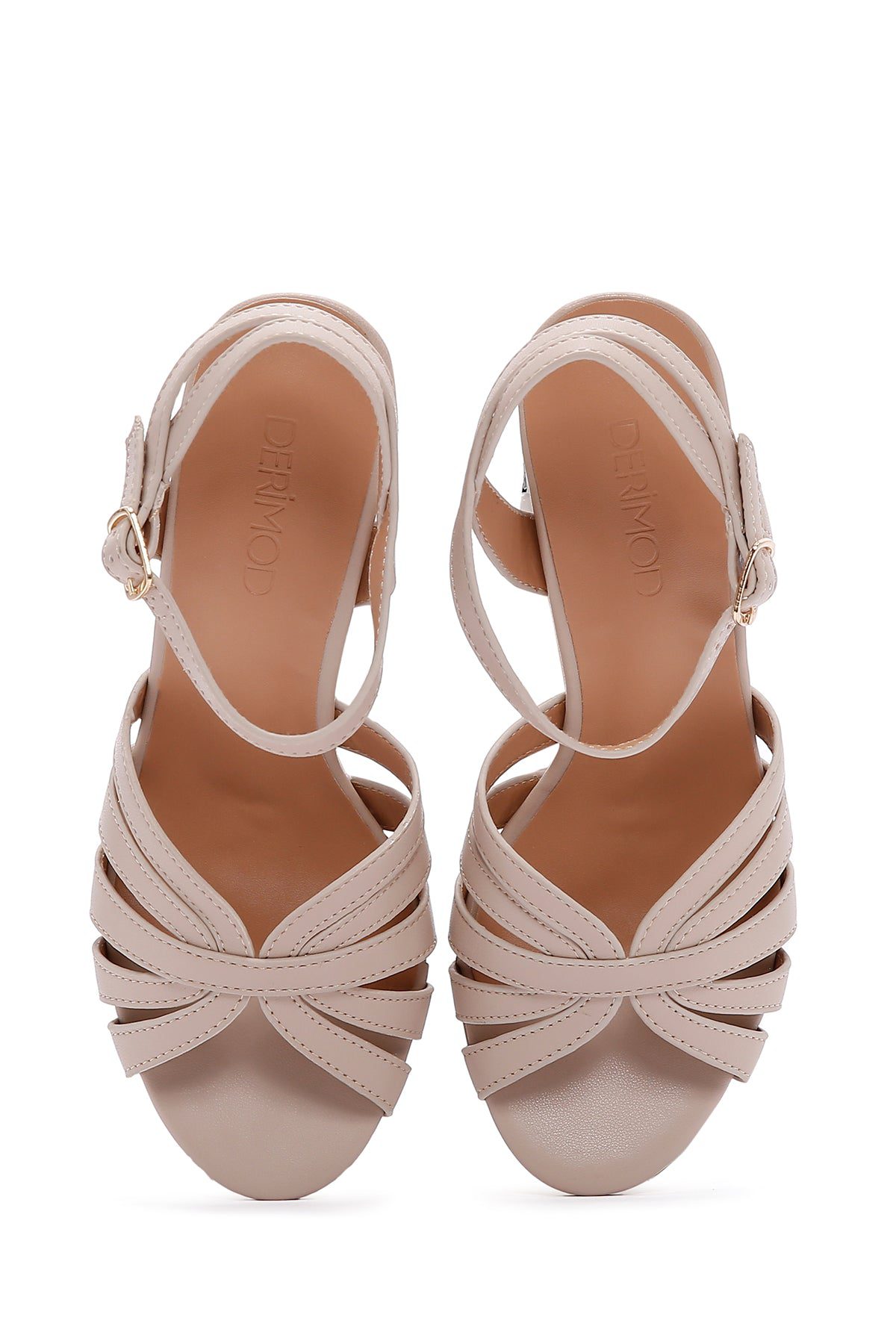 Kadın Bej Bilekten Bantlı Kalın Topuklu Sandalet