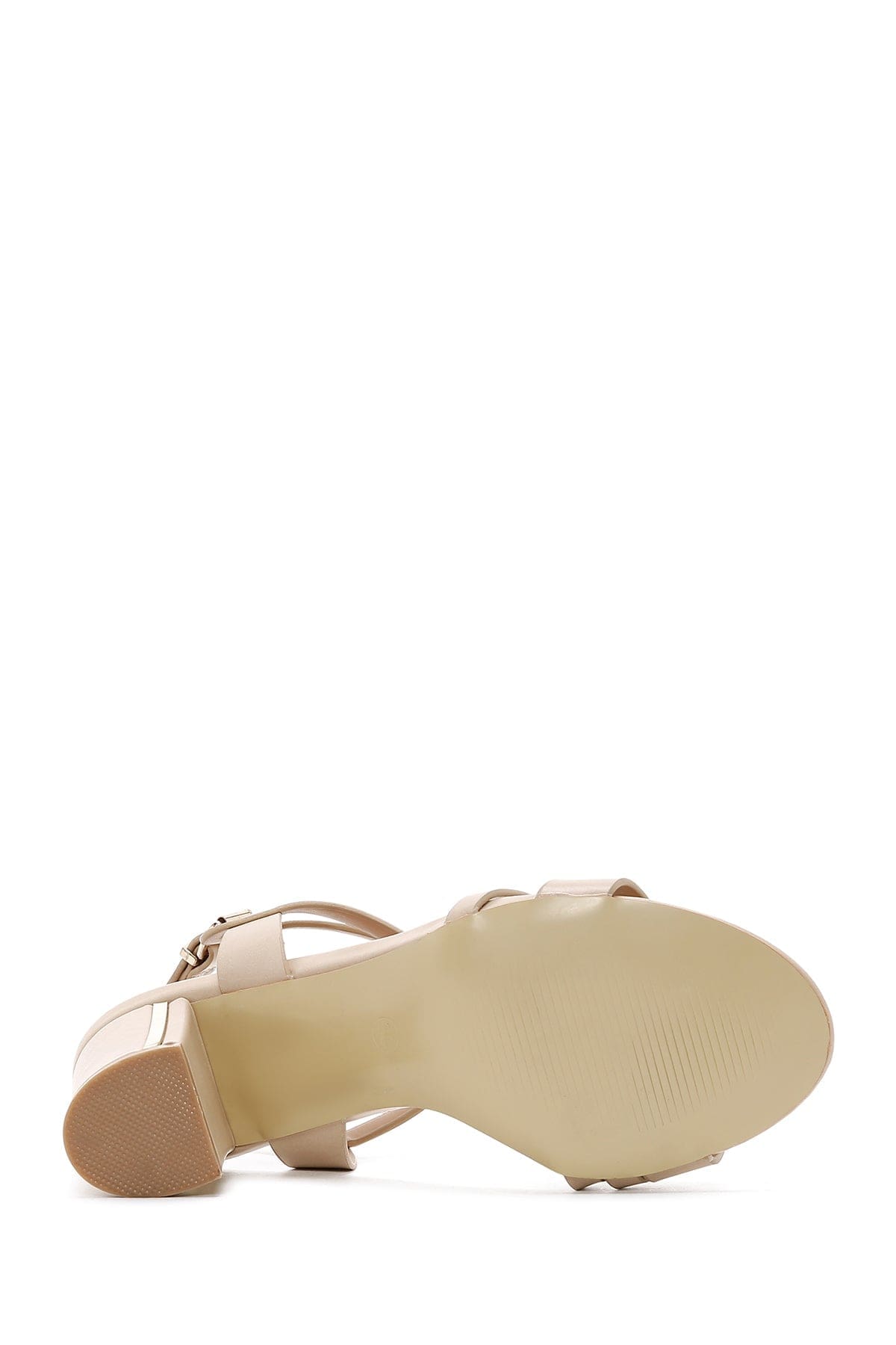 Kadın Bej Bilekten Bantlı Kalın Topuklu Sandalet