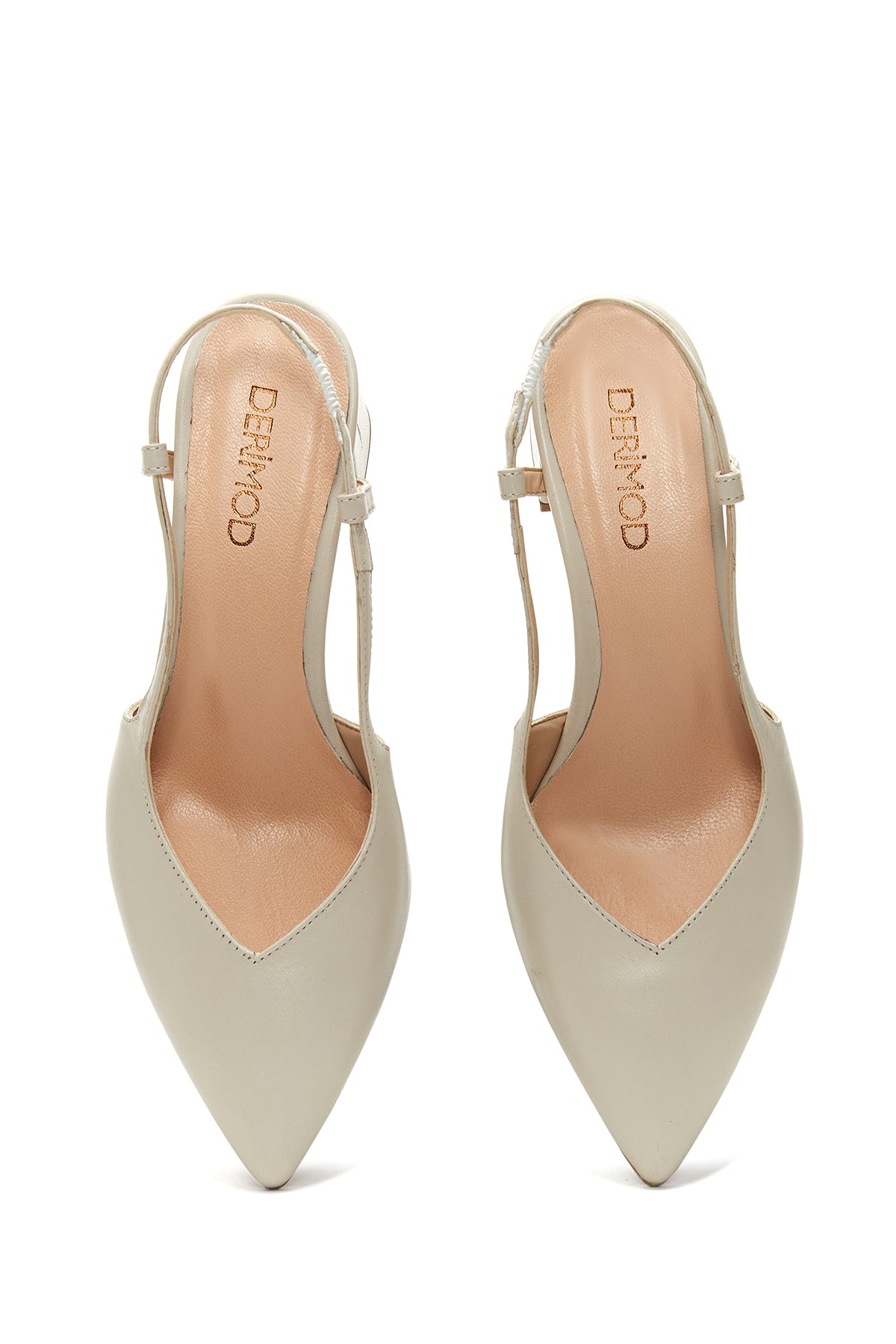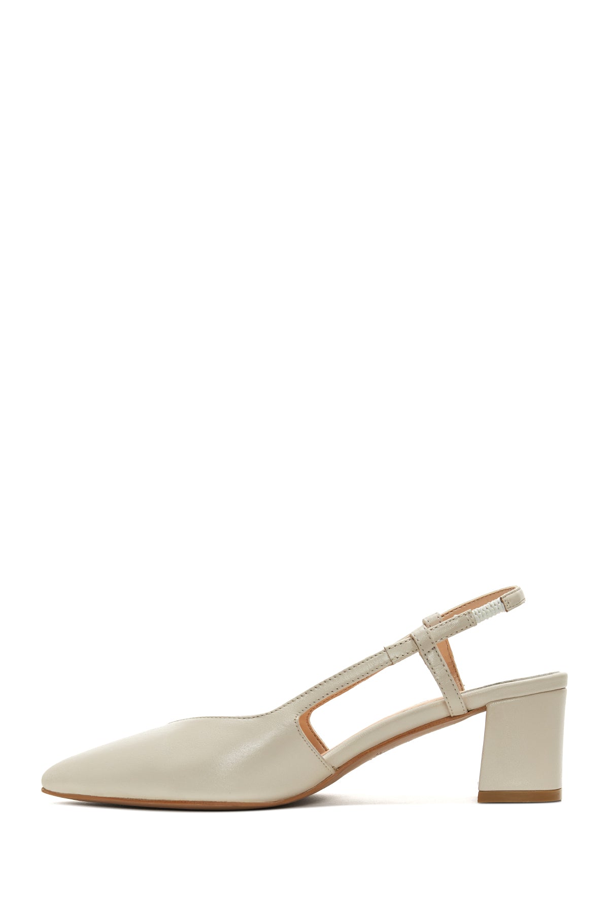 Kadın Bej Arkası Açık Topuklu Deri Ayakkabı