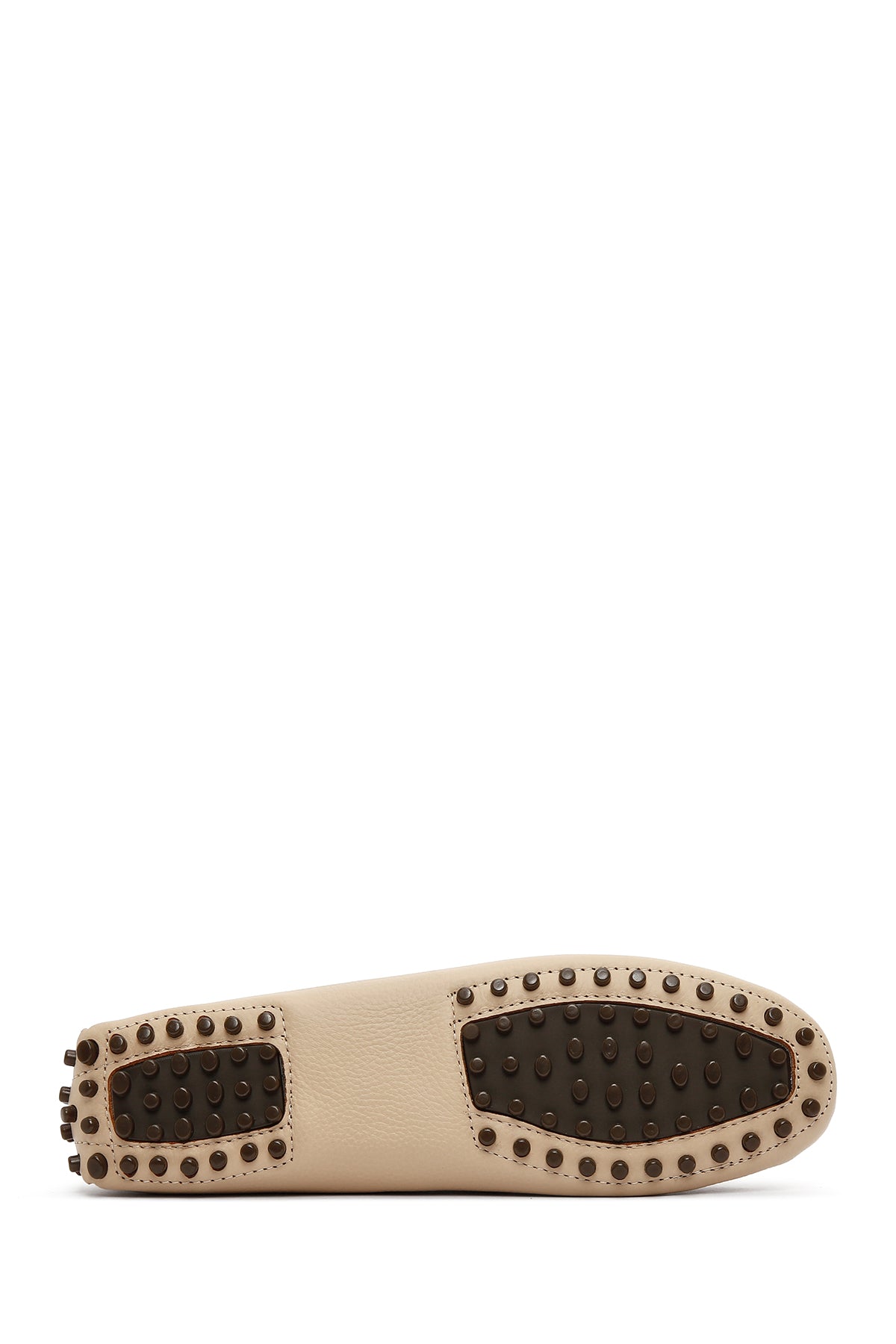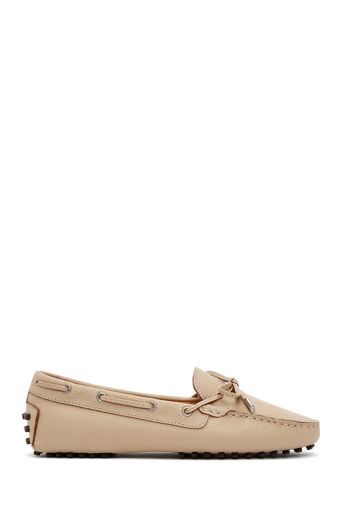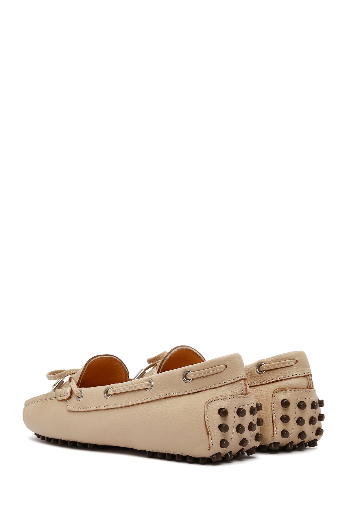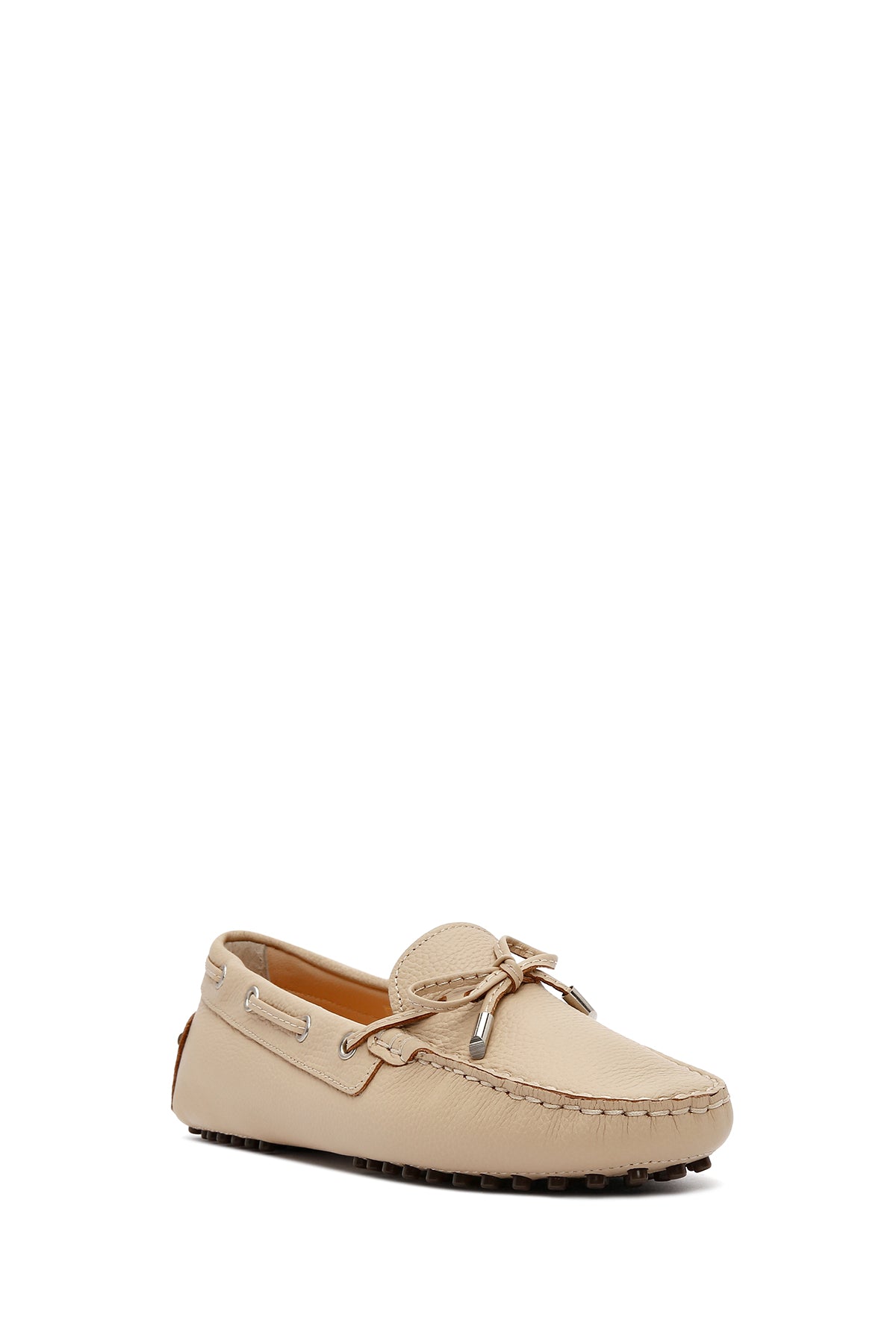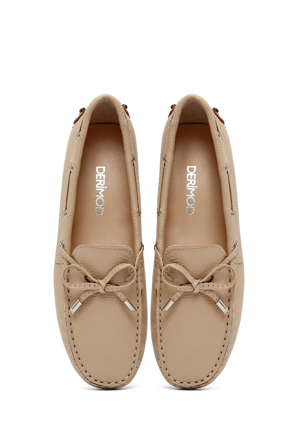 کفش لوفر زنانه چرم بژ پاپیونی دری مد