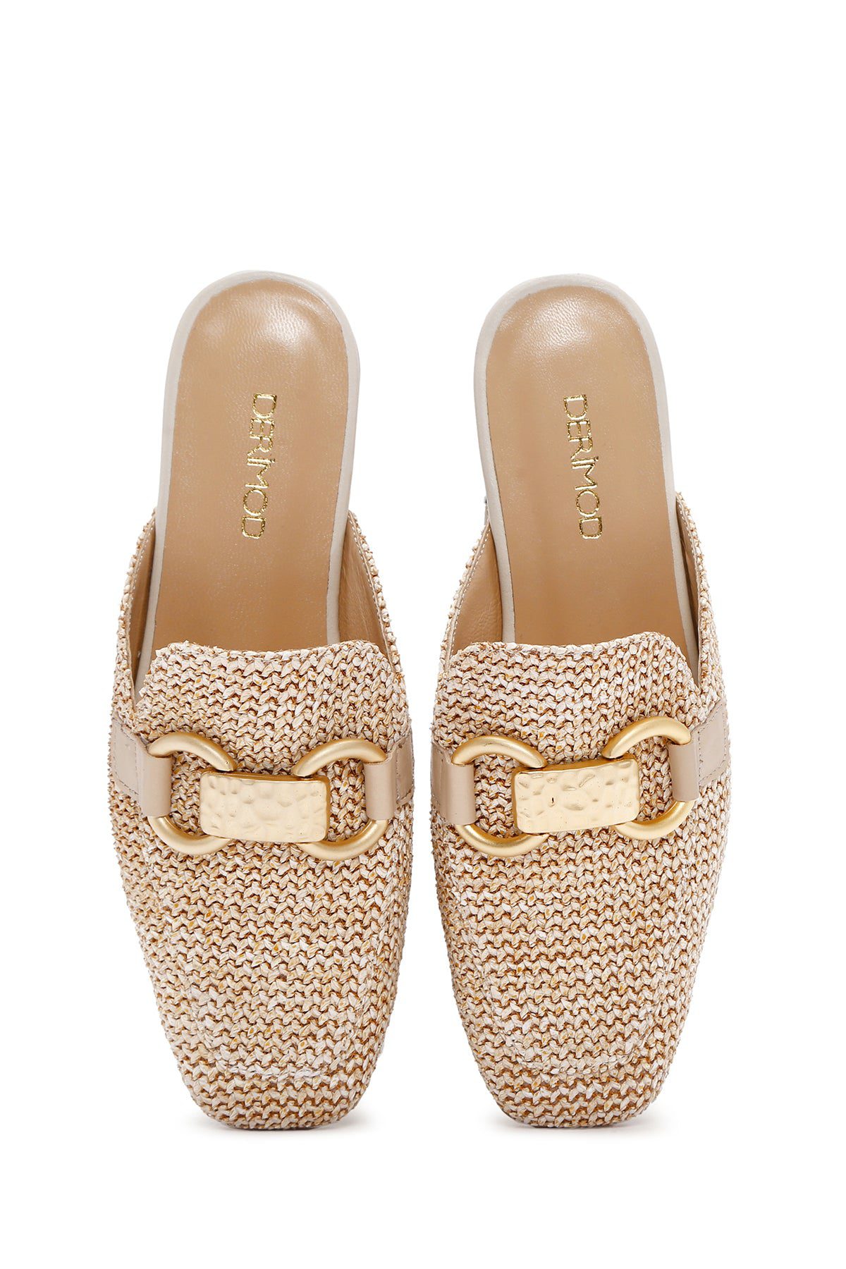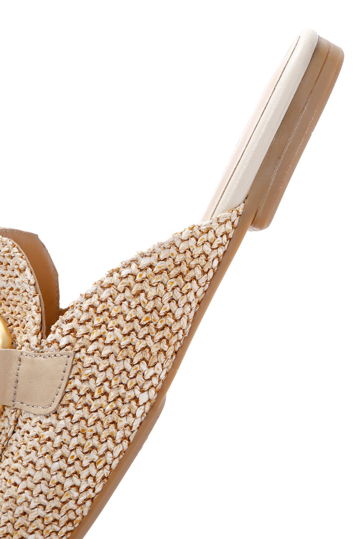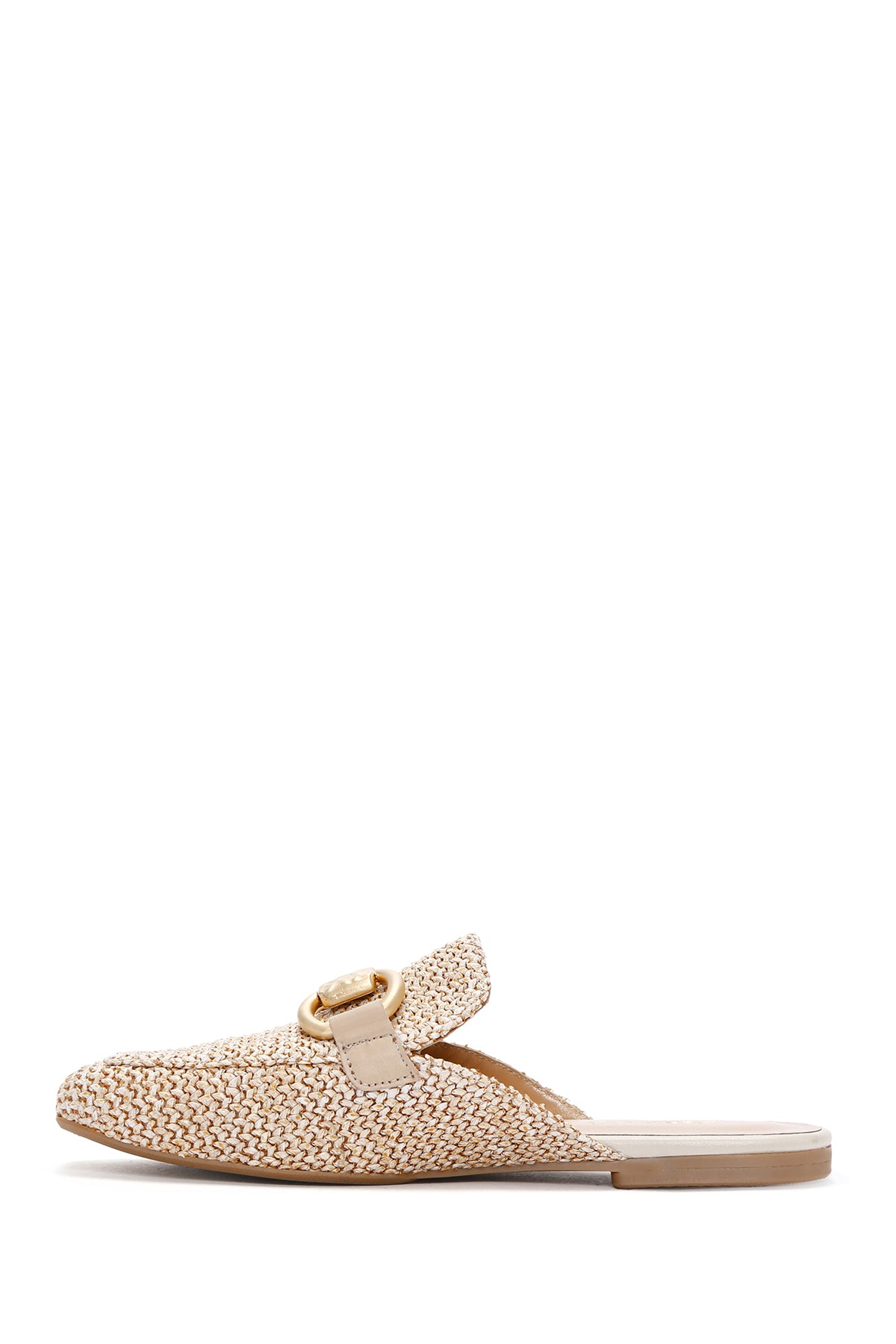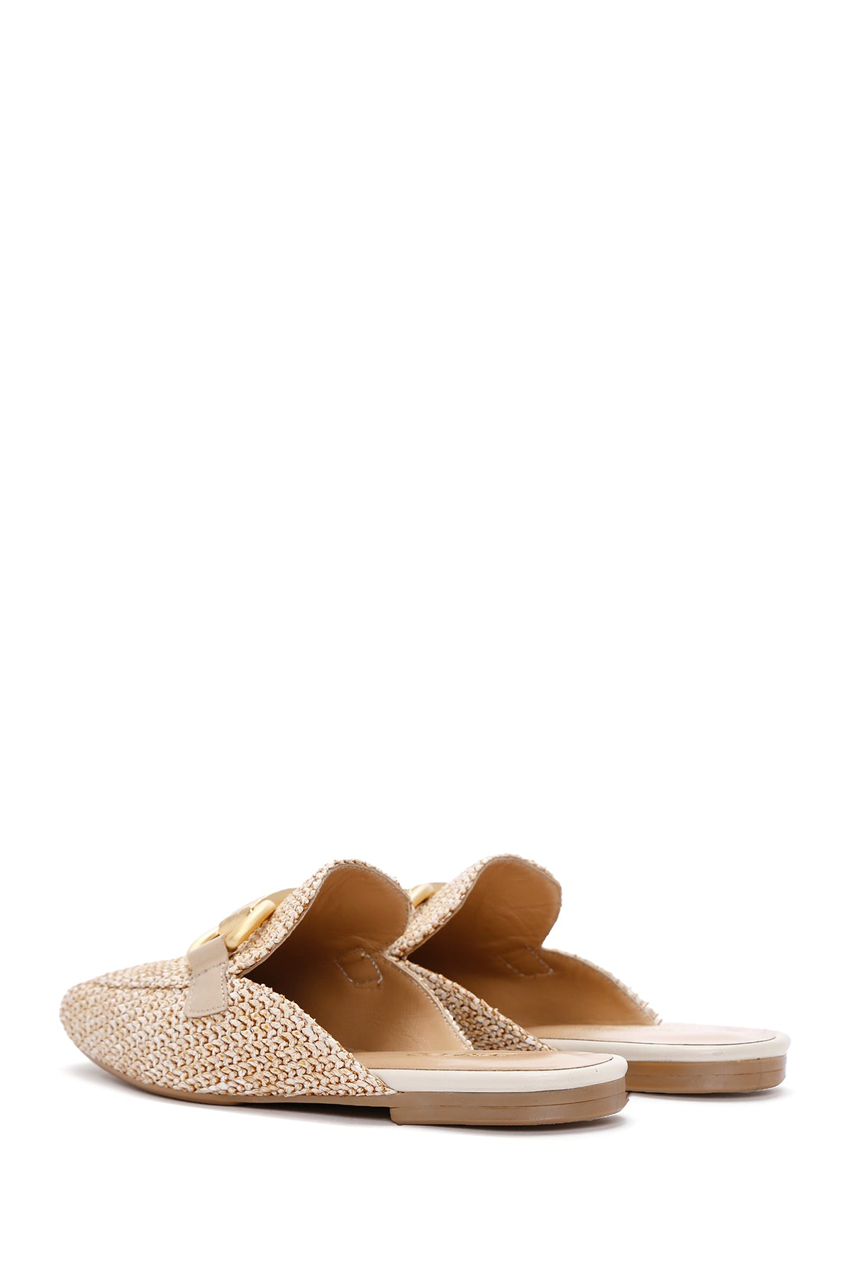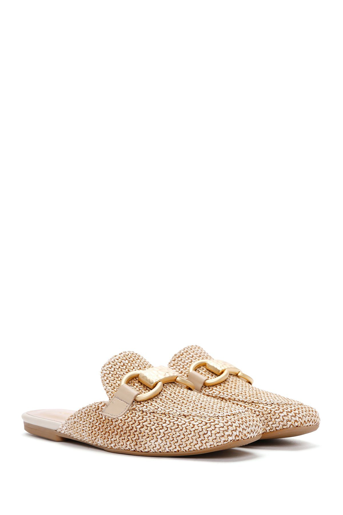 Kadın Bej Toka Detaylı Hasır Deri Terlik