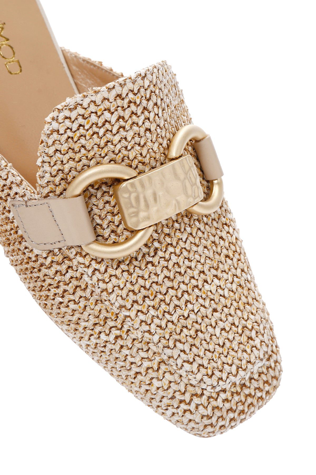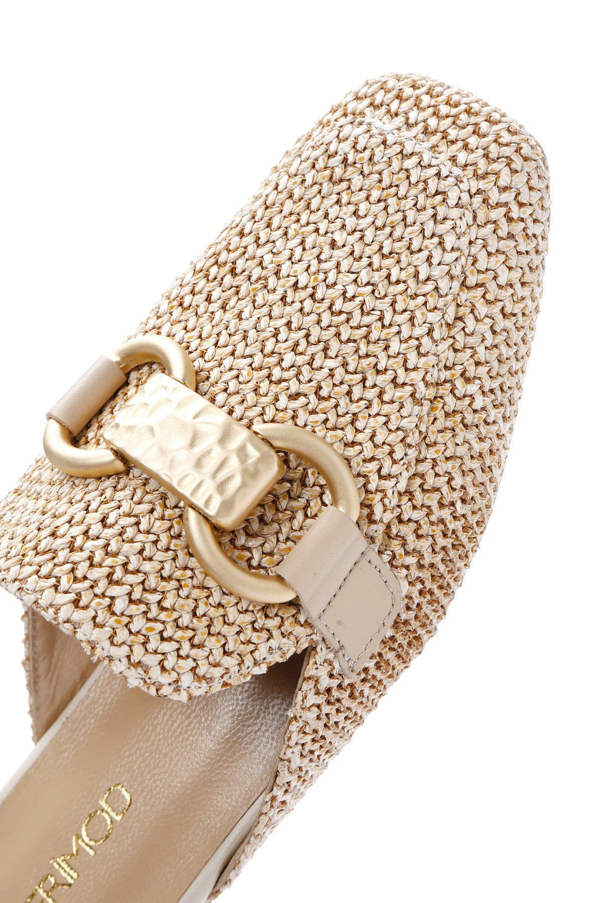 دمپایی زنانه حصیری چرمی بژ با جزئیات سگک دری مد