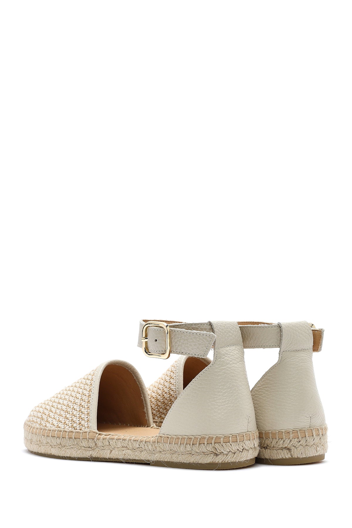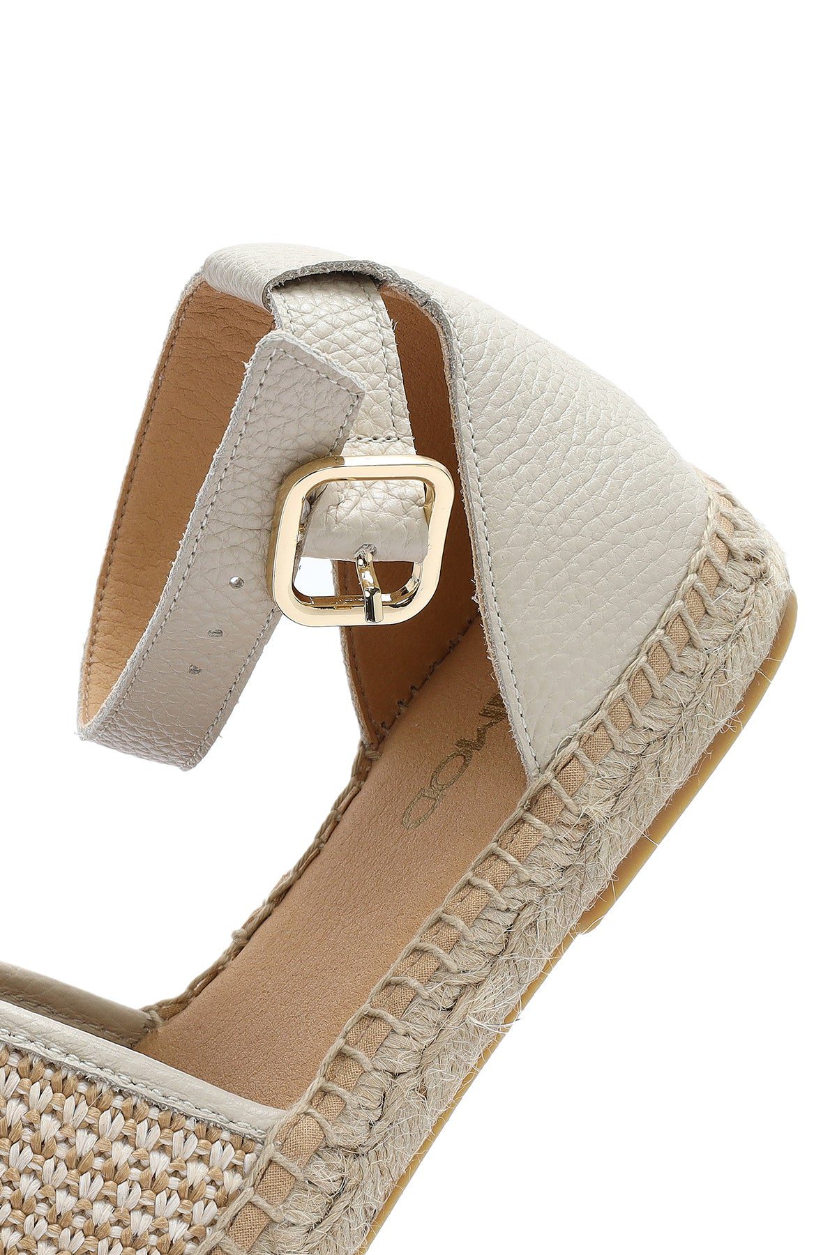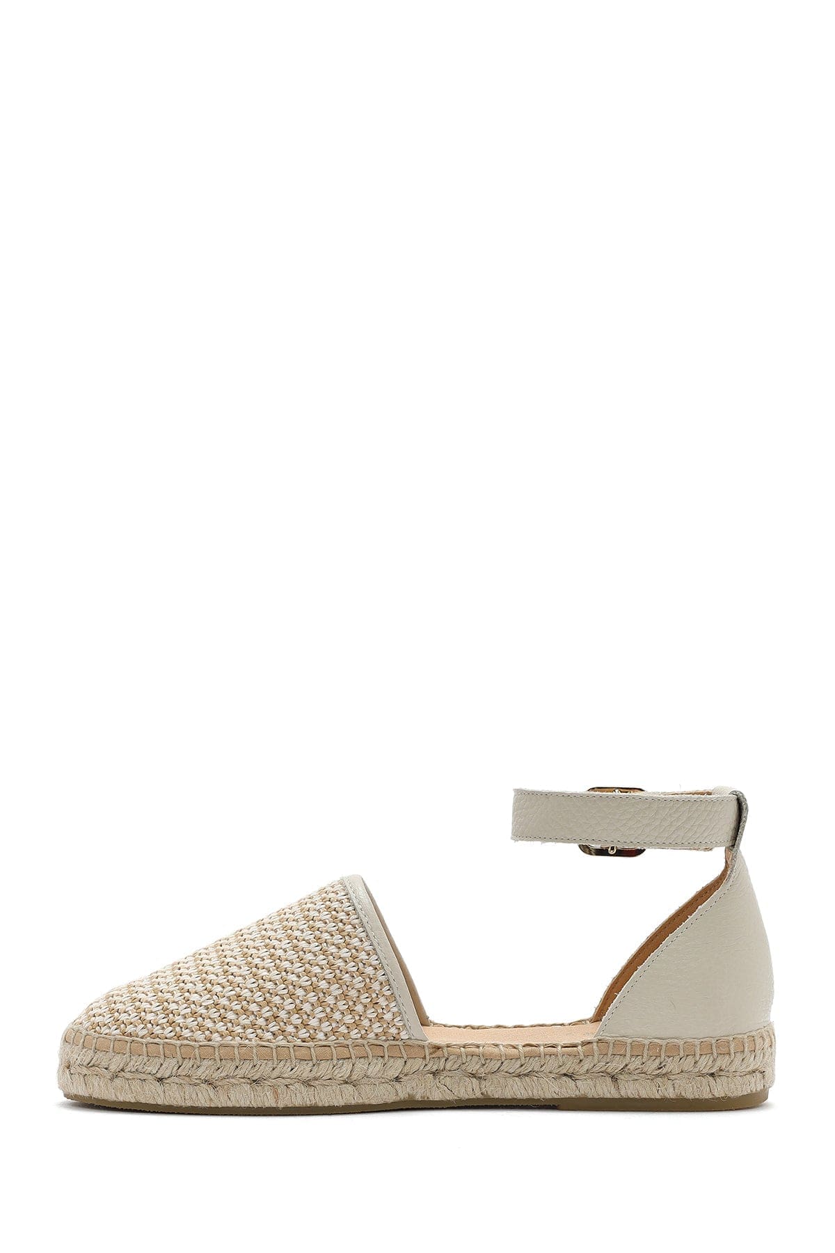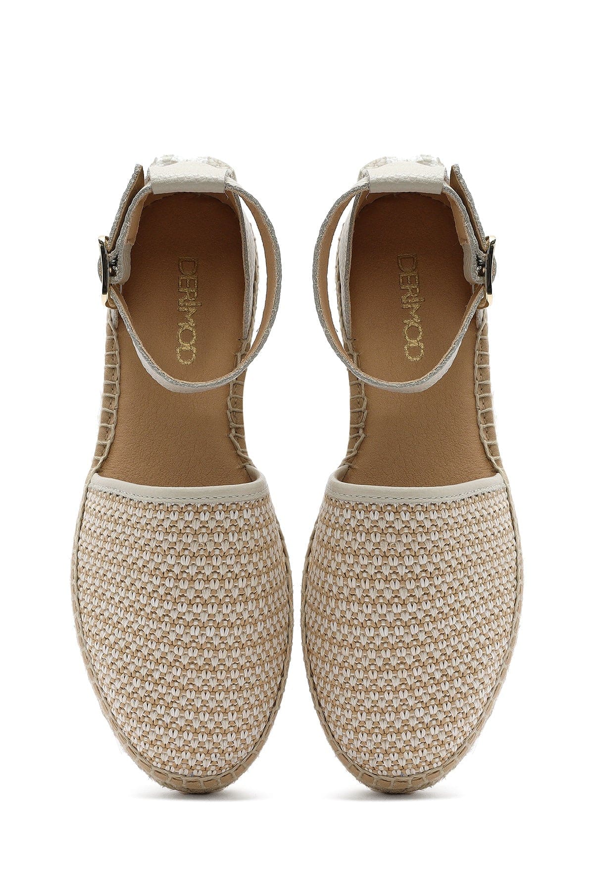 Kadın Bej Bilekten Tokalı Hasır Deri Espadril Sandalet