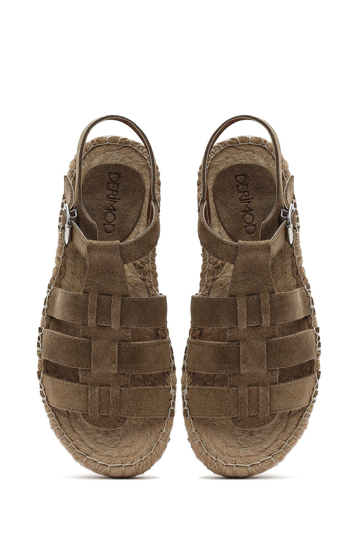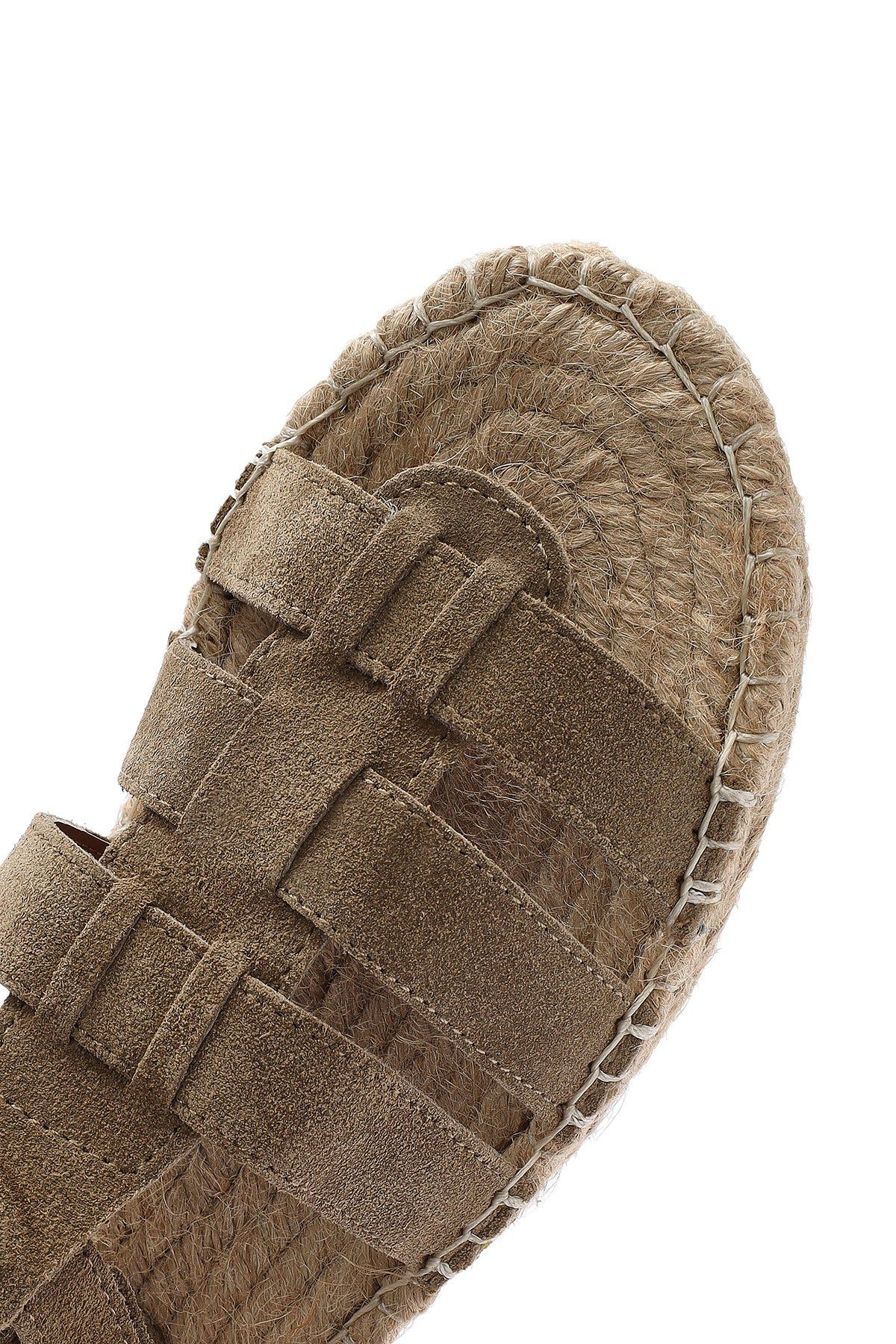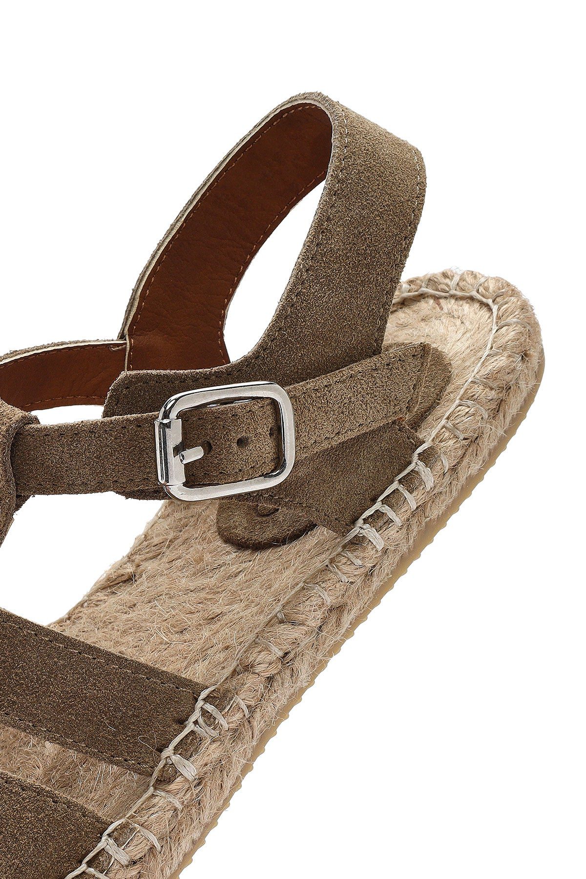 Kadın Vizon Tokalı Süet Deri Espadril Sandalet