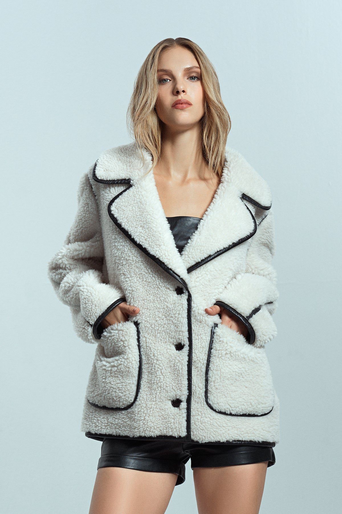 Valley Kadın Bej Kruvaze Yaka Teddy Mont