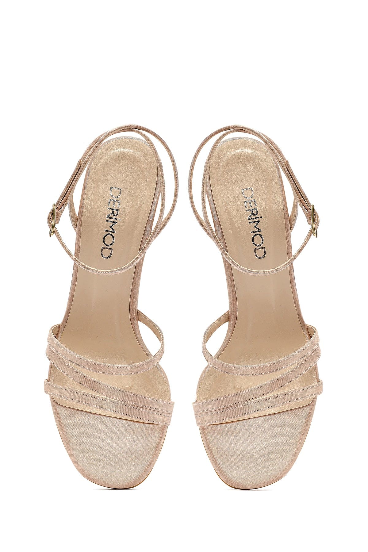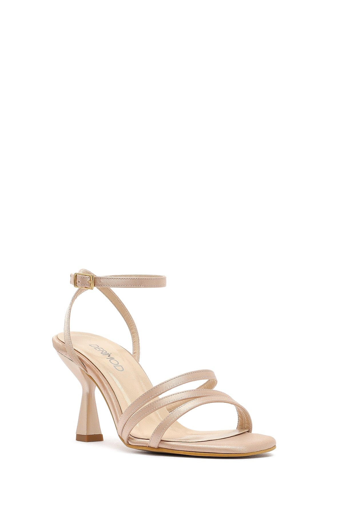 Kadın Bej Bilekten Bantlı Topuklu Sandalet