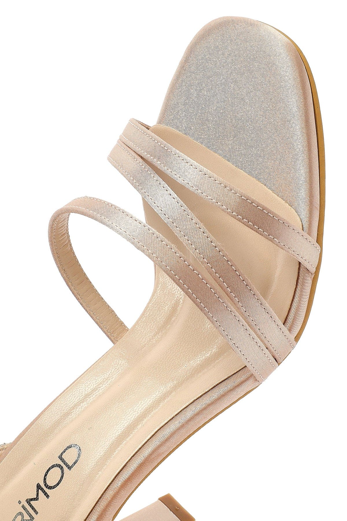صندل زنانه بژ بنددار پاشنهدار دری مد