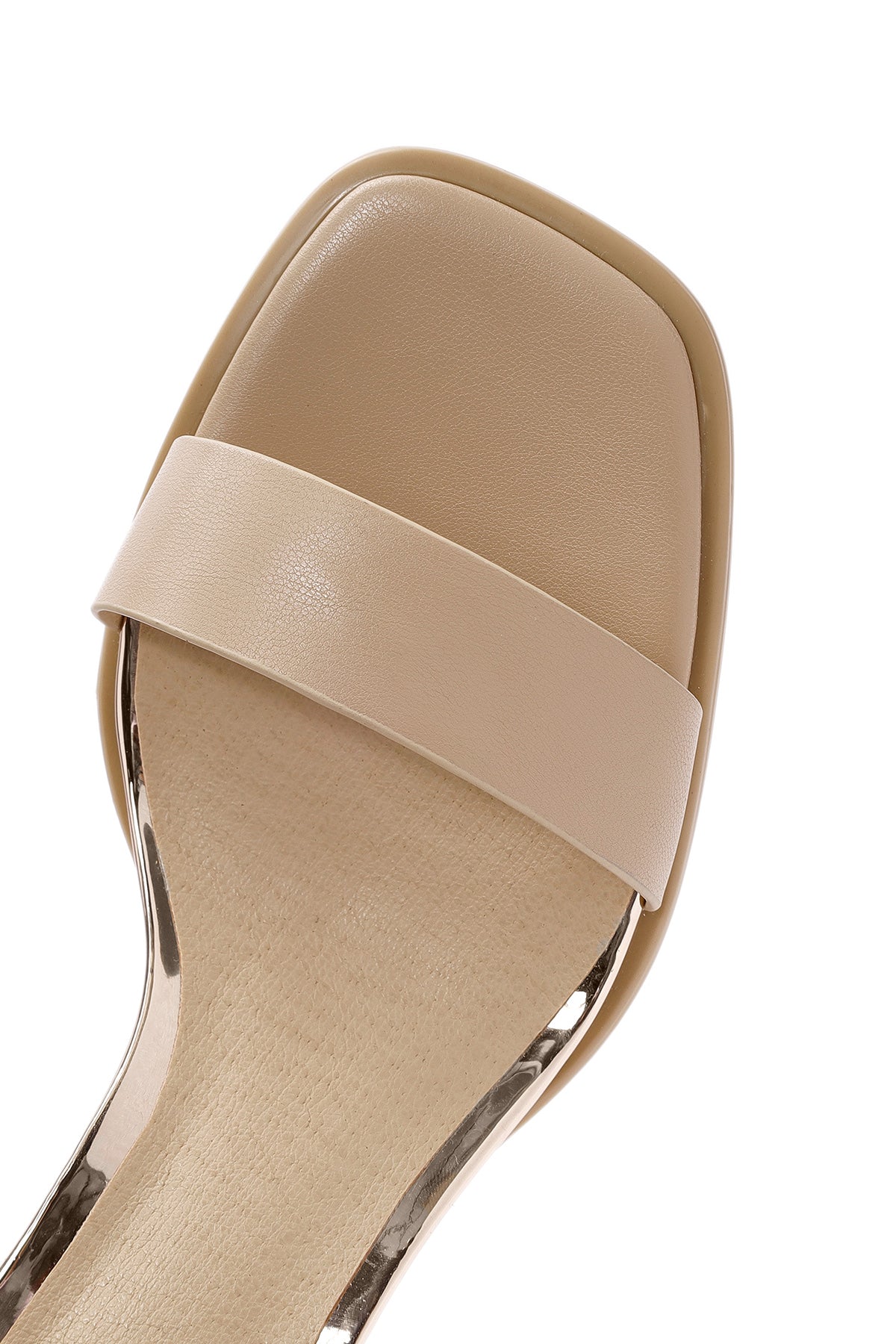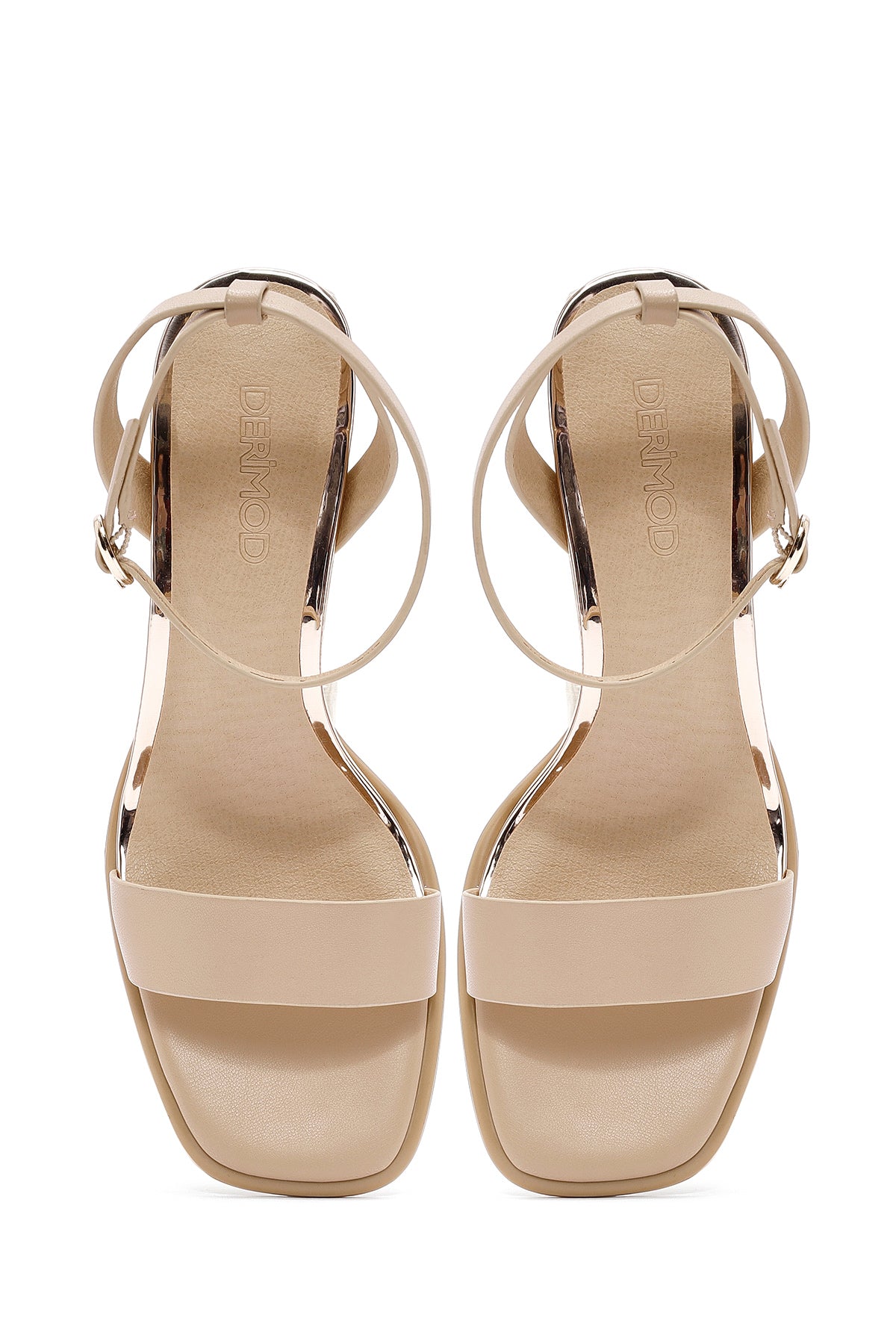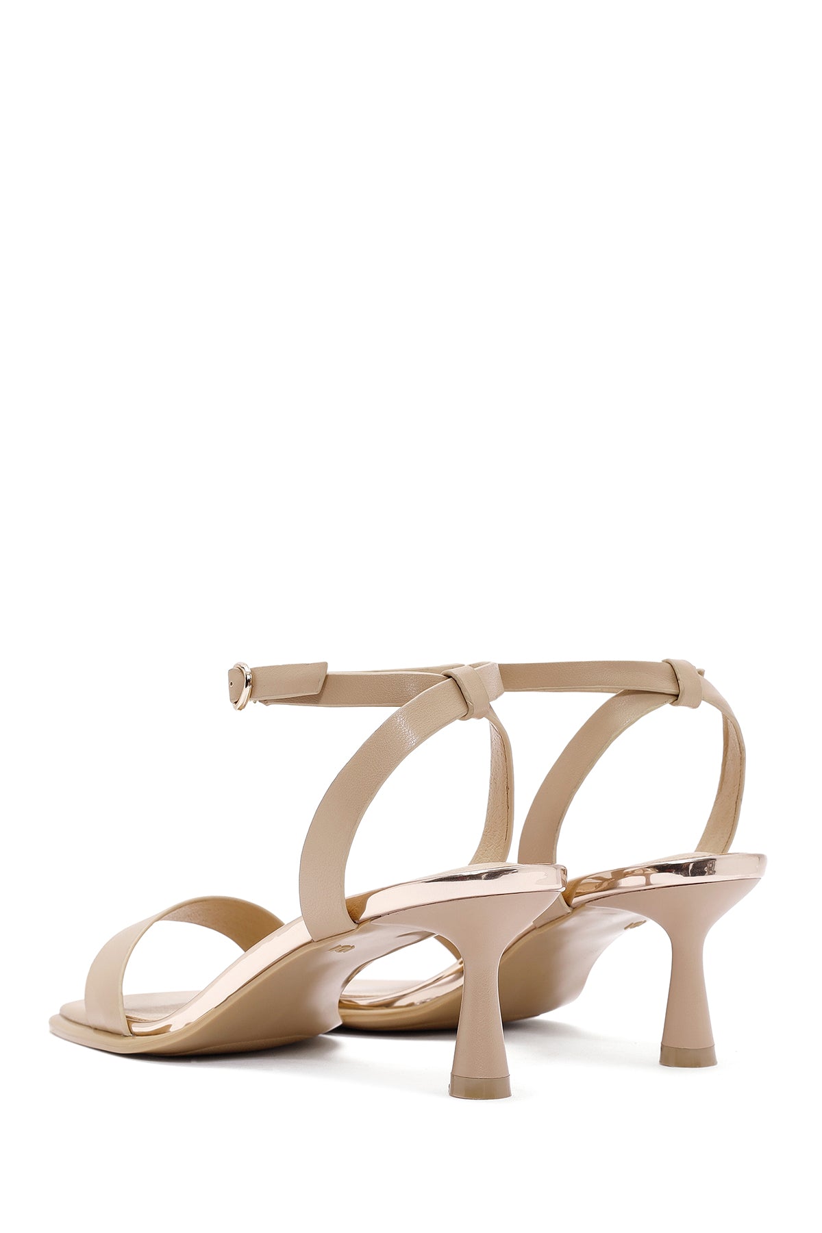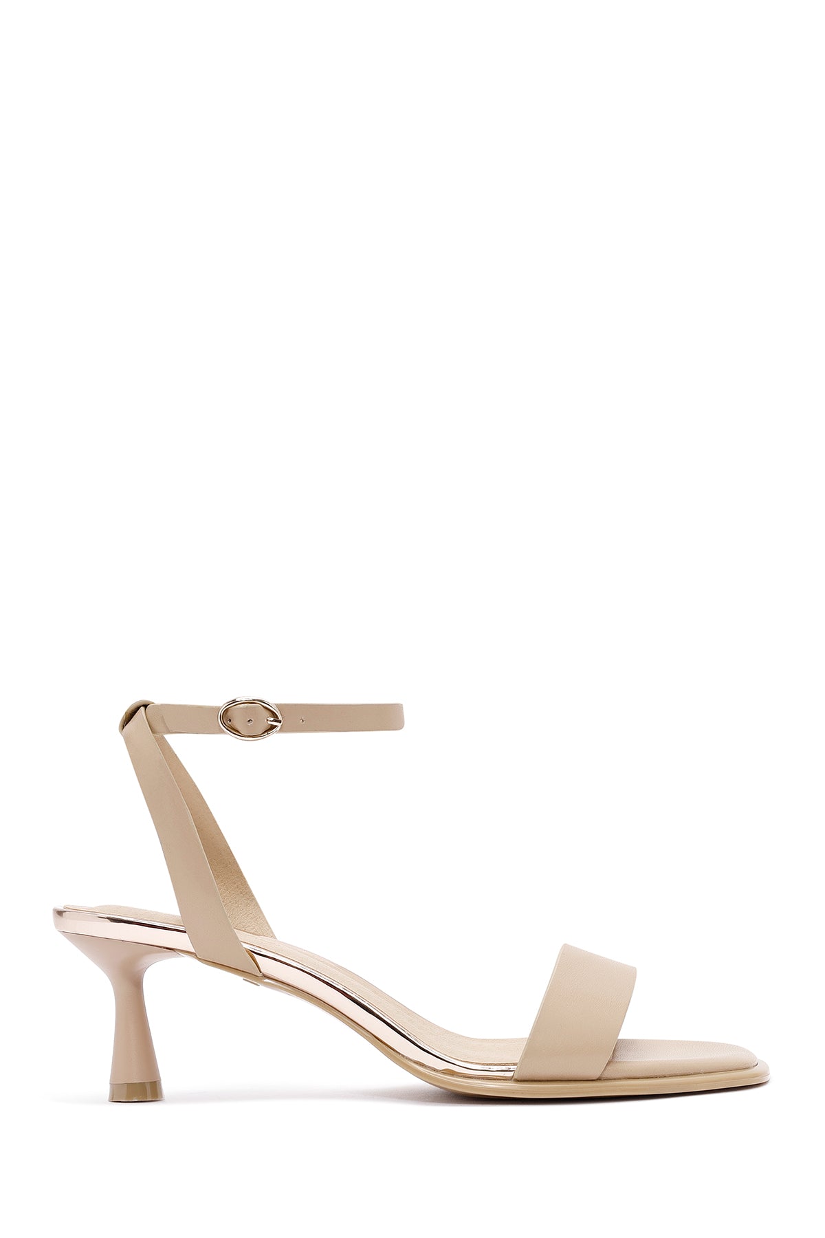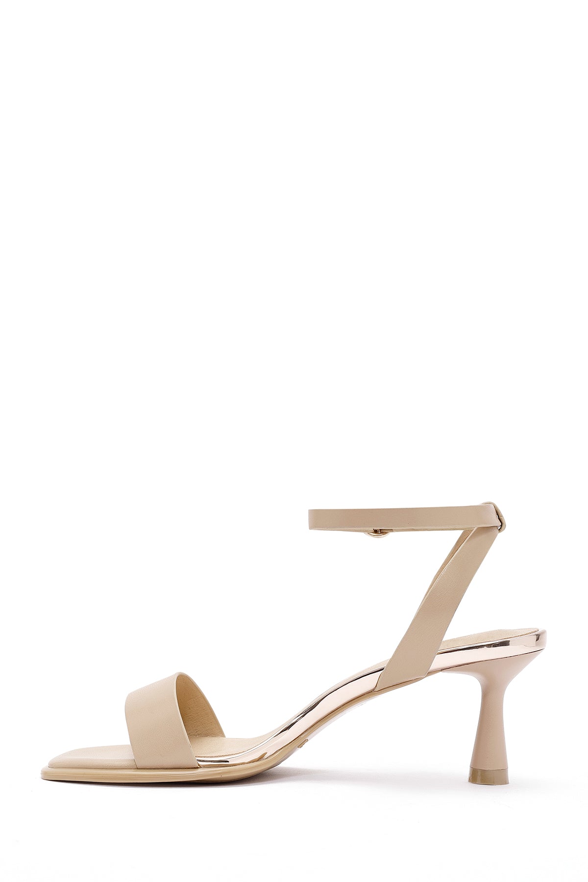 Kadın Bej Bilekten Bantlı Topuklu Sandalet