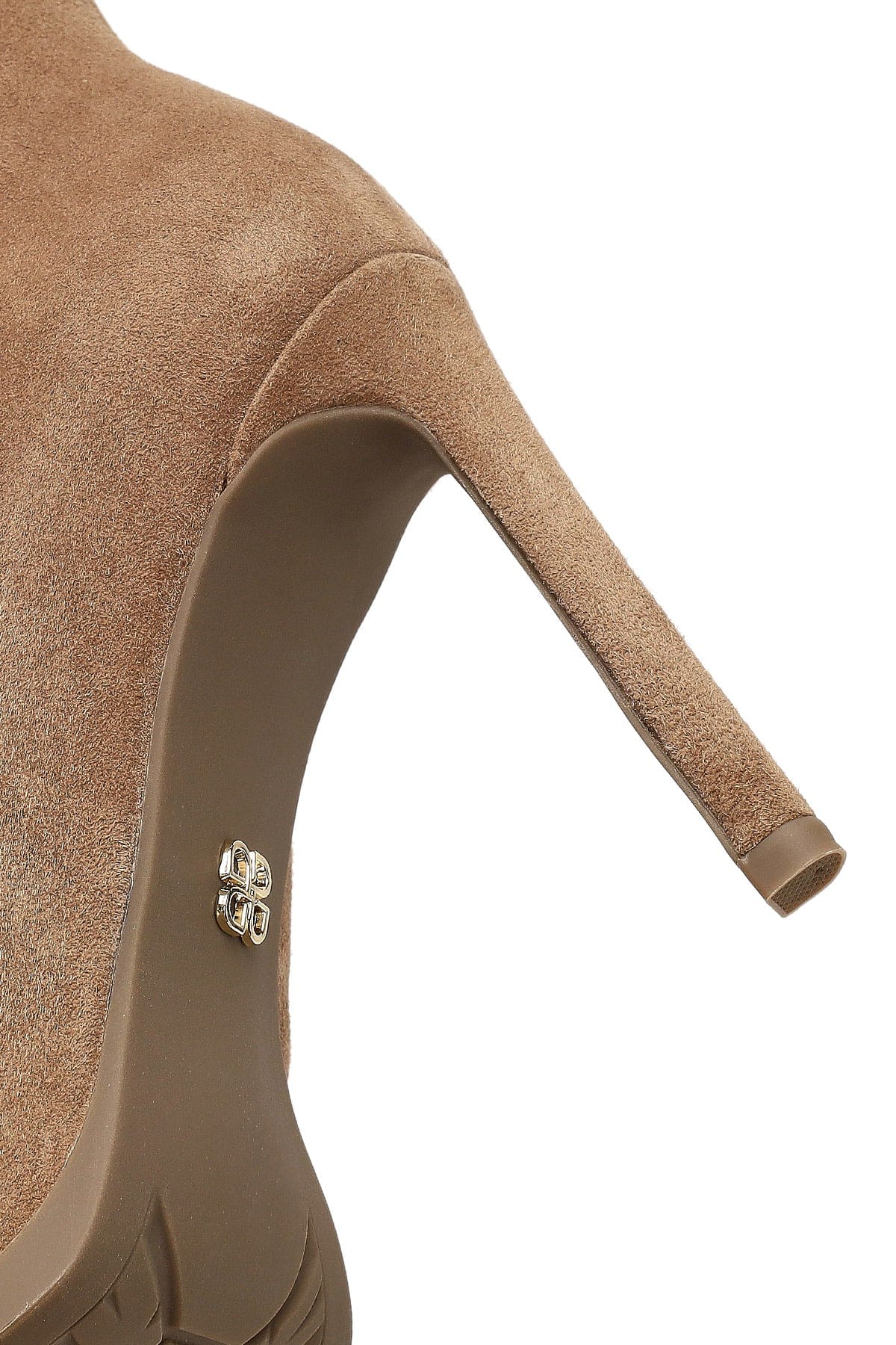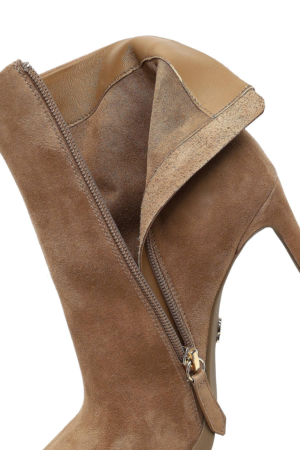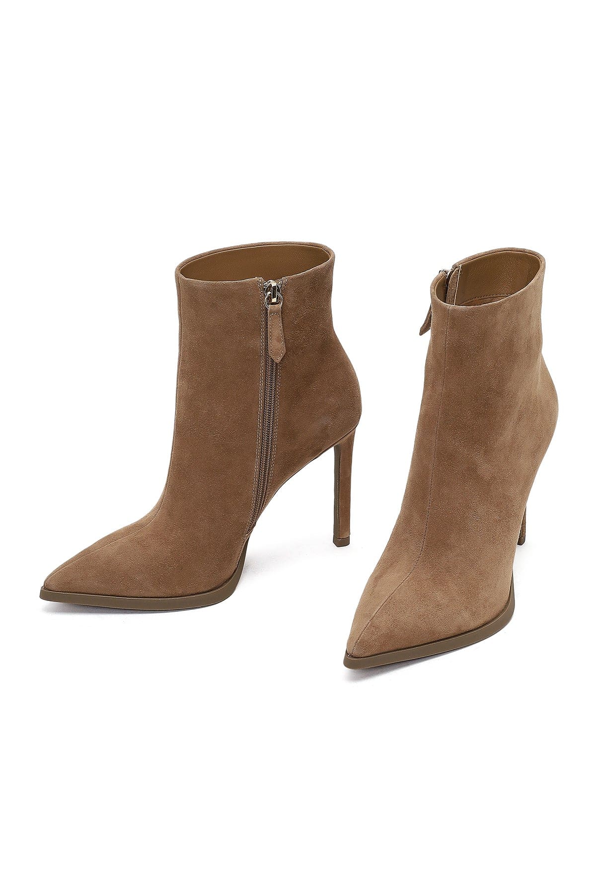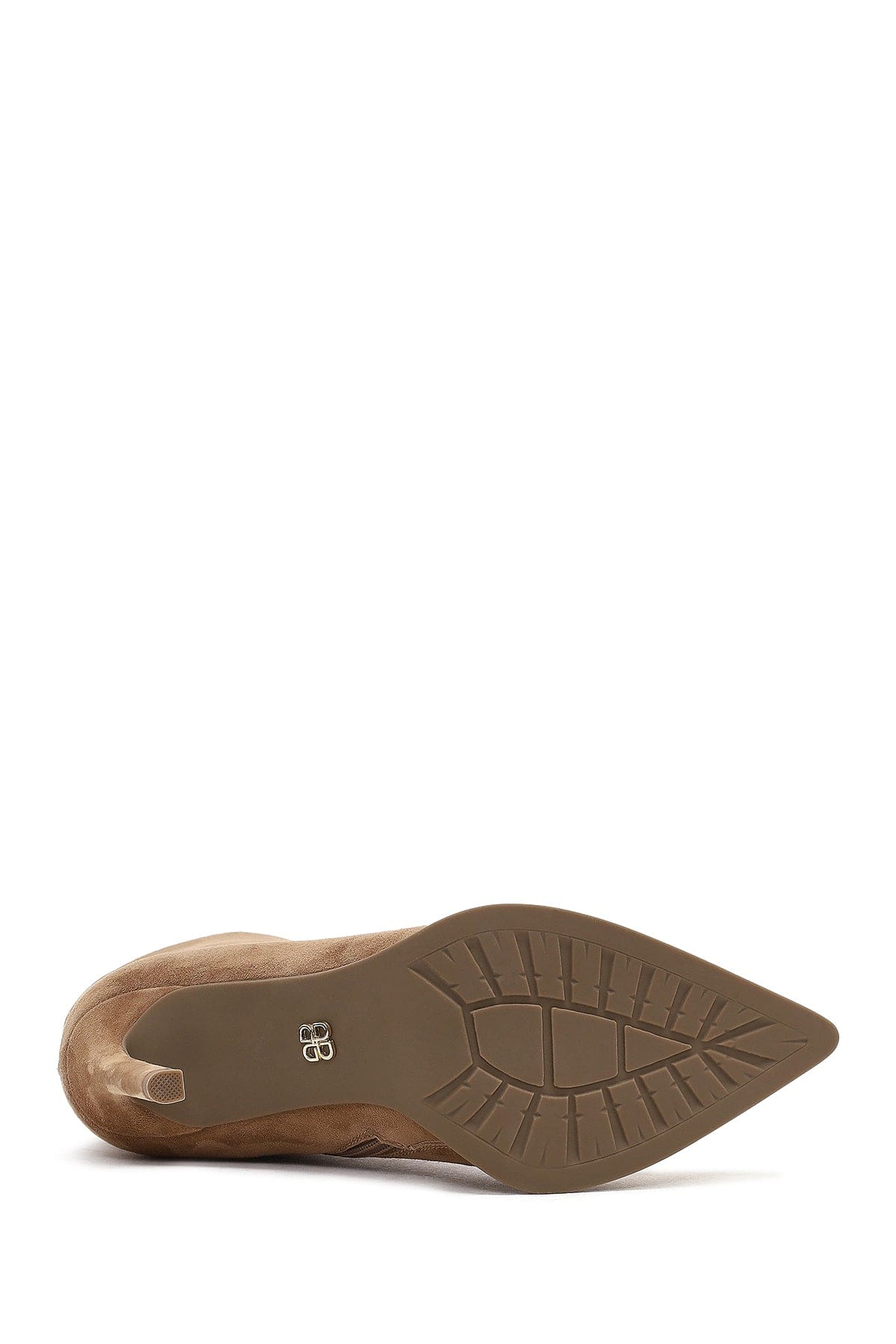 Kadın Bej Fermuarlı Yüksek İnce Topuklu Süet Deri Bot