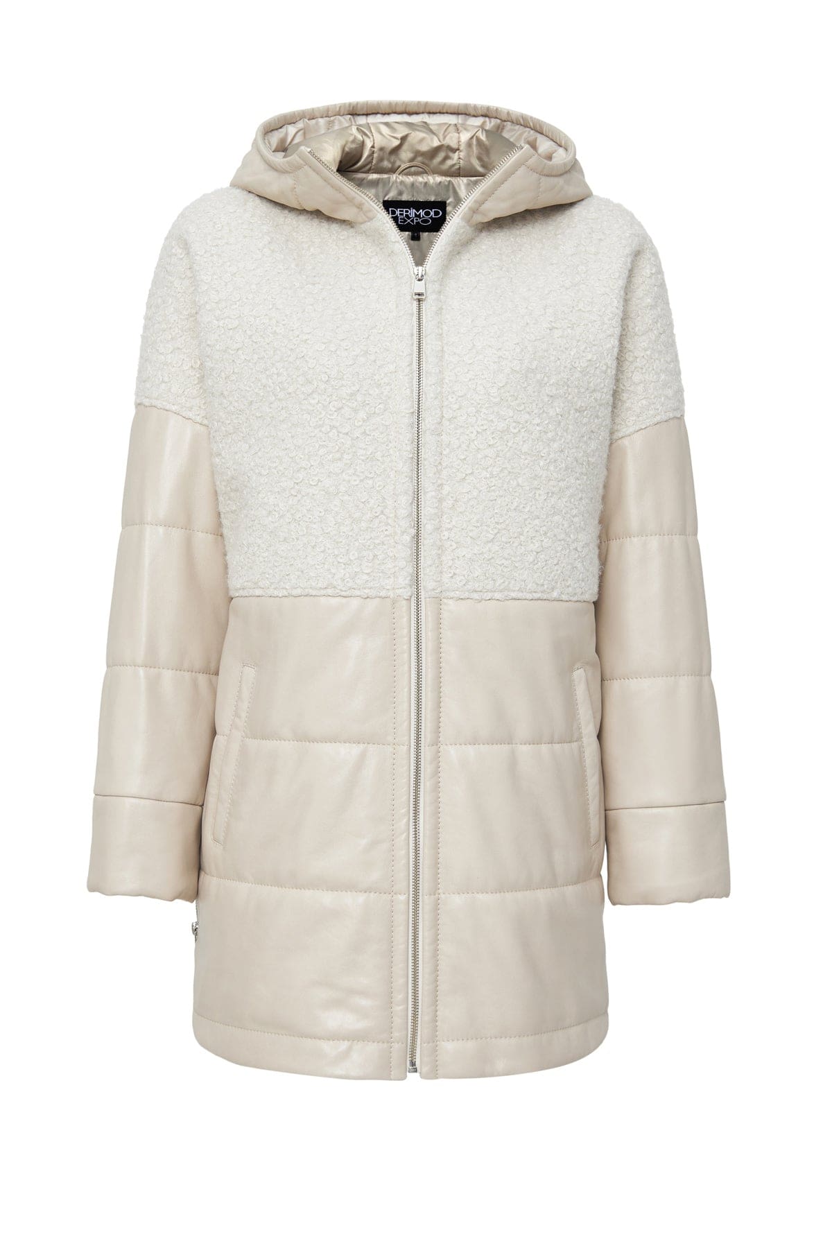 کت زنانه بژ خزدار کلاه دار Atlanta دری مد