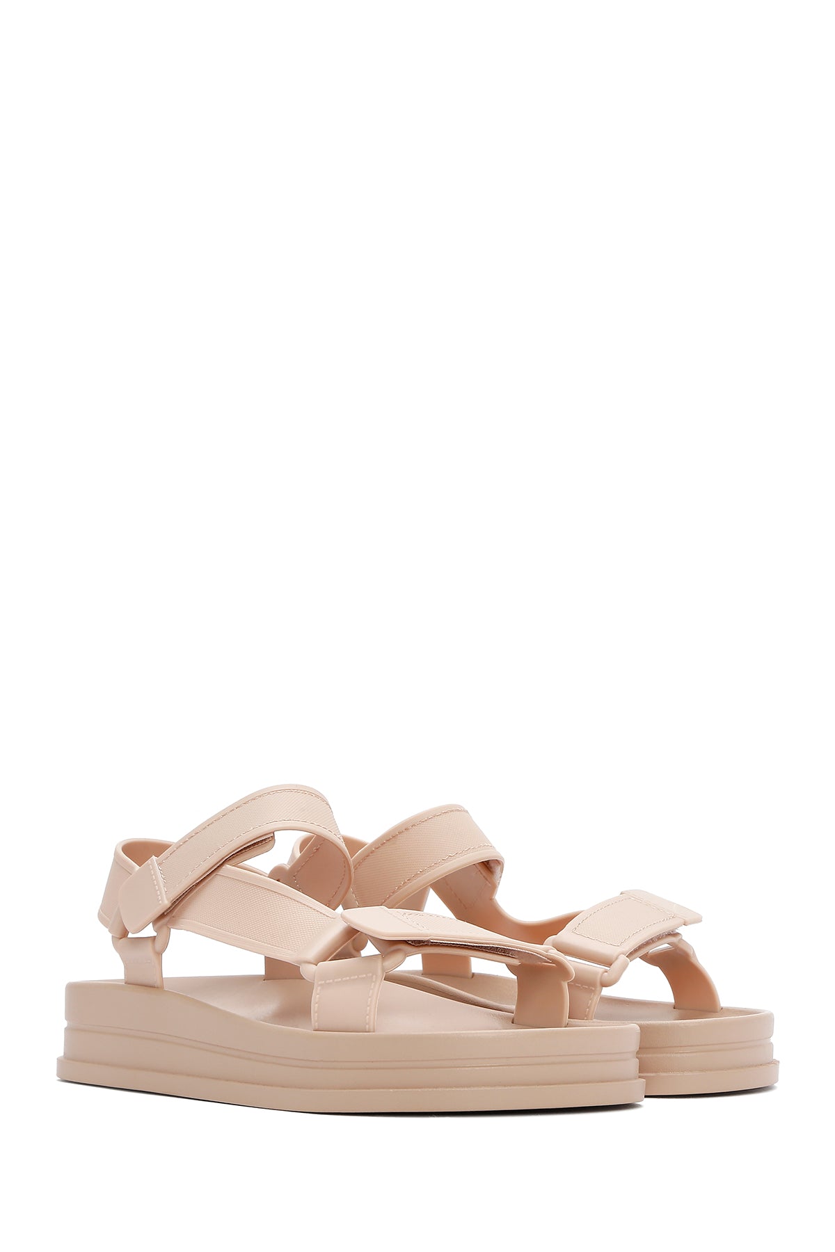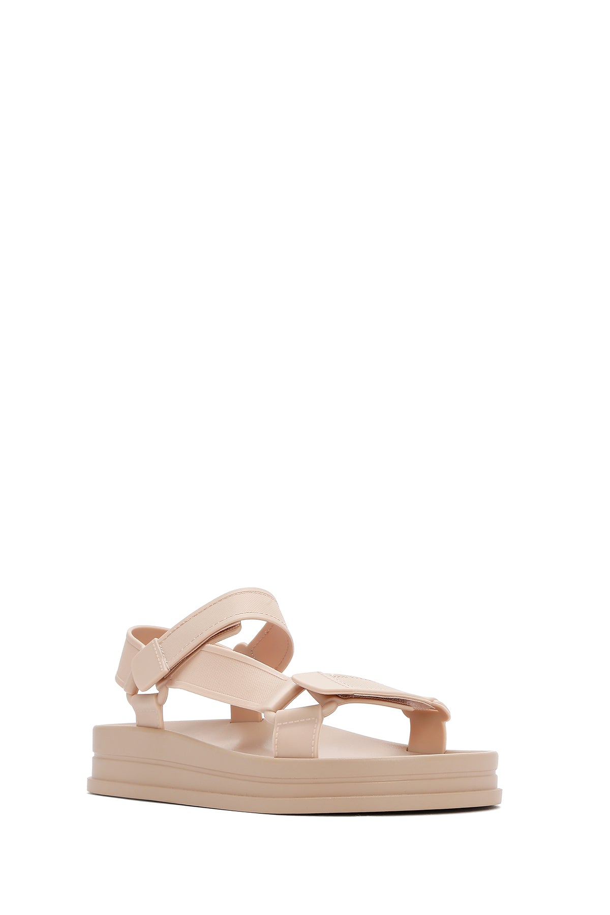 Kadın Bej Bantlı Kalın Tabanlı Jelly Sandalet