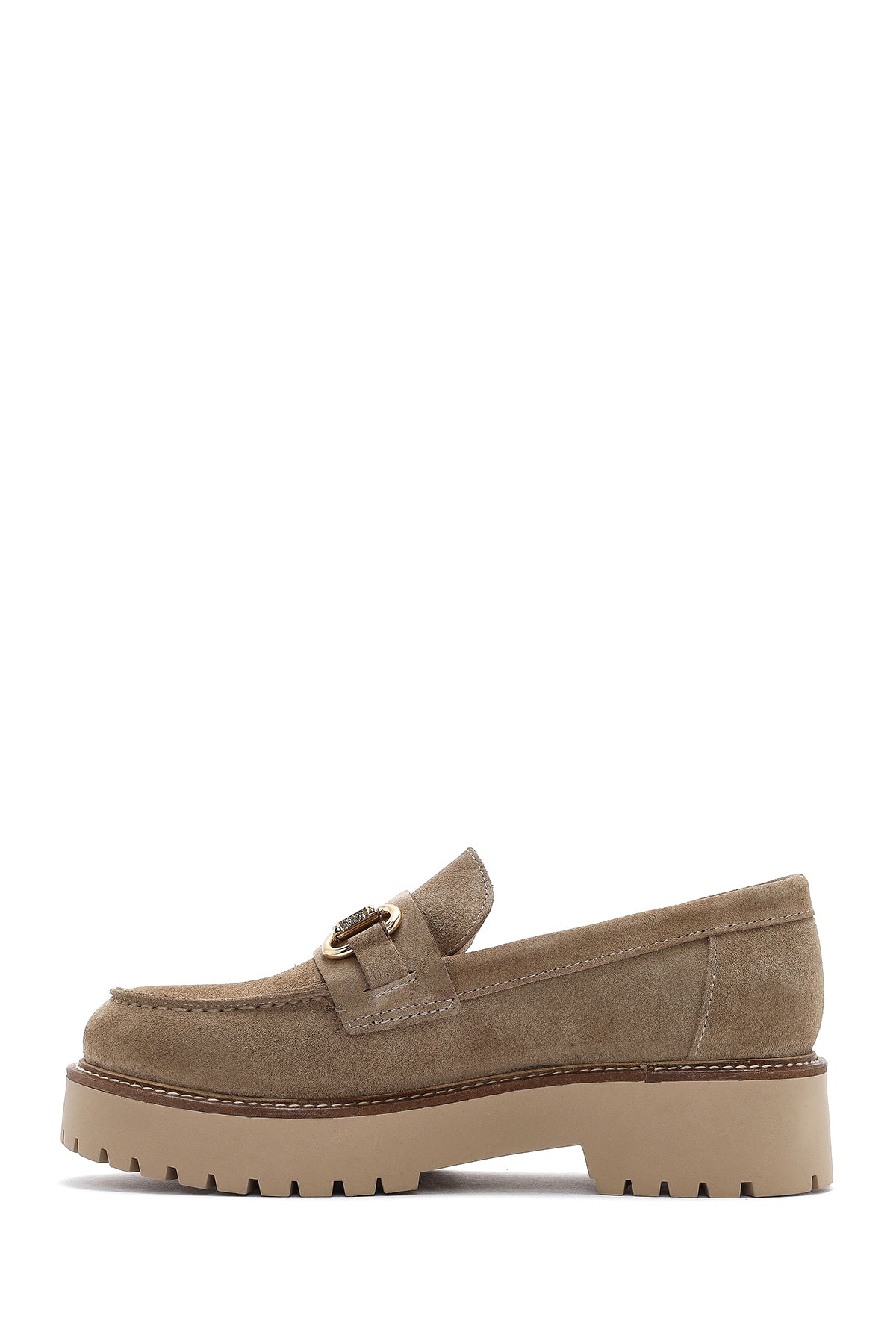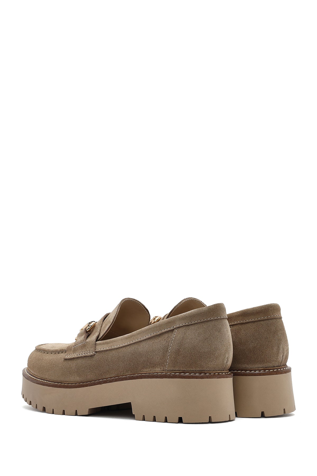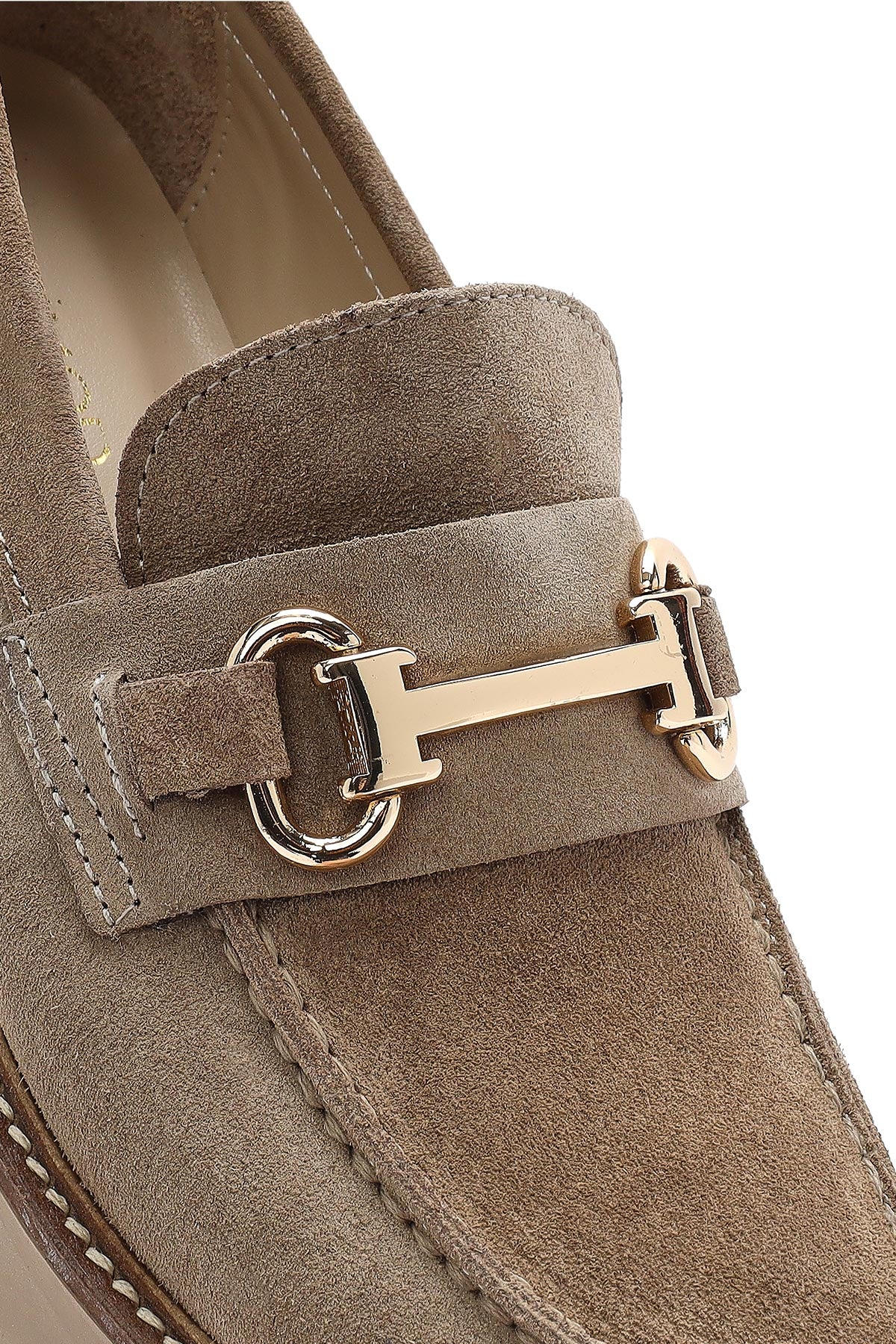 Kadın Bej Kalın Tabanlı Aksesuarlı Süet Deri Maskülen Loafer