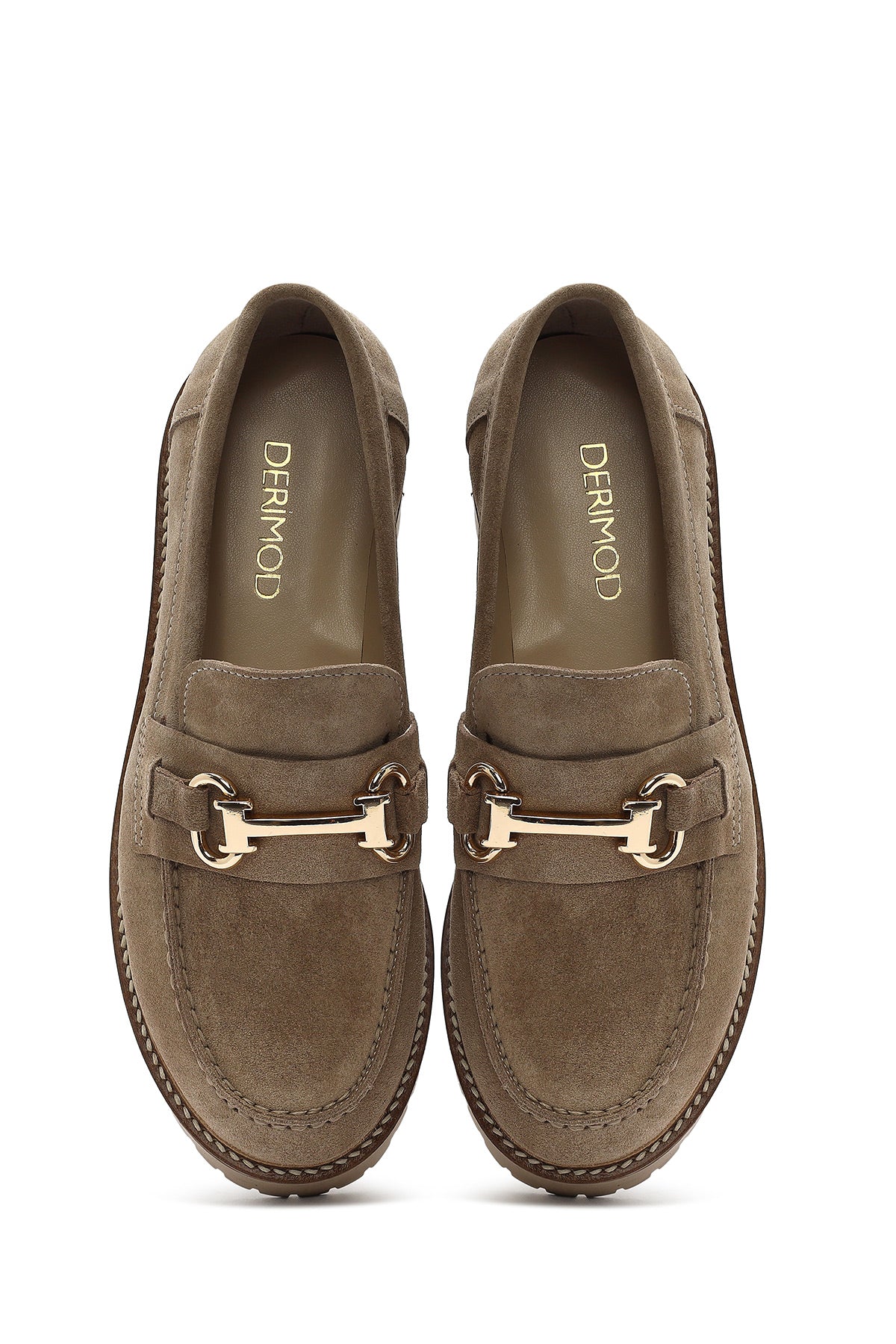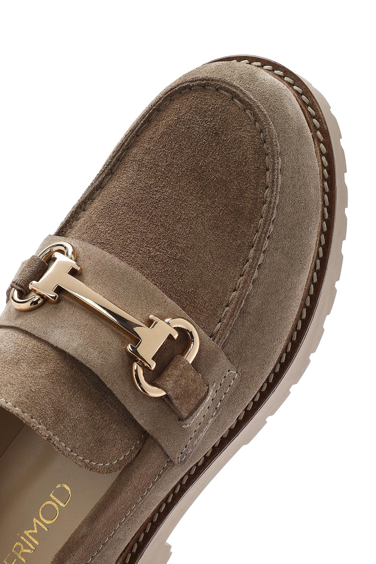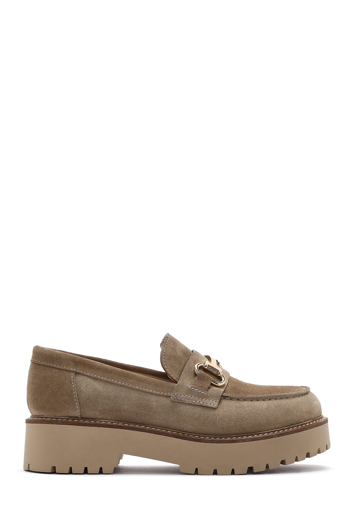 Kadın Bej Kalın Tabanlı Aksesuarlı Süet Deri Maskülen Loafer