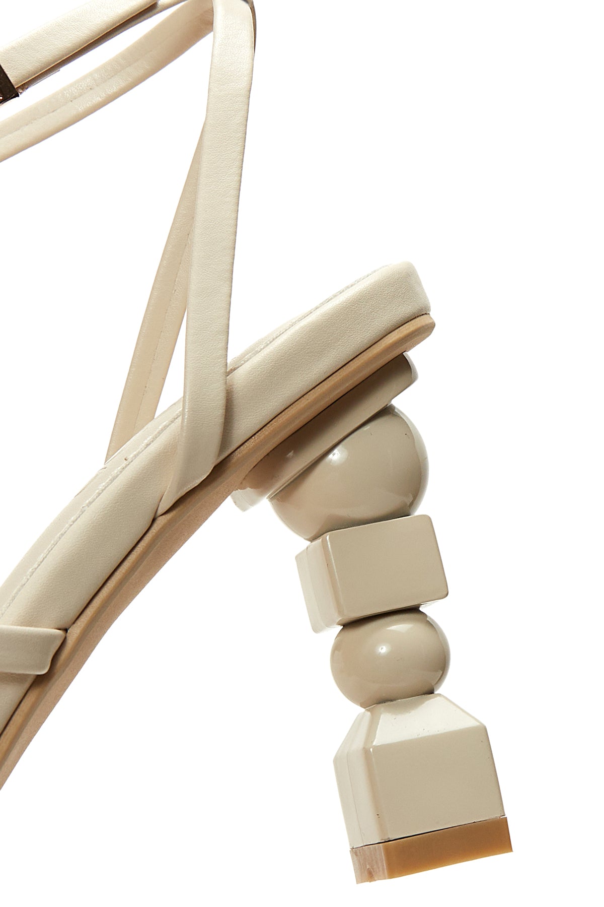 صندل زنانه بژ بندی بلند پاشنهبلند ضخیم دری مد