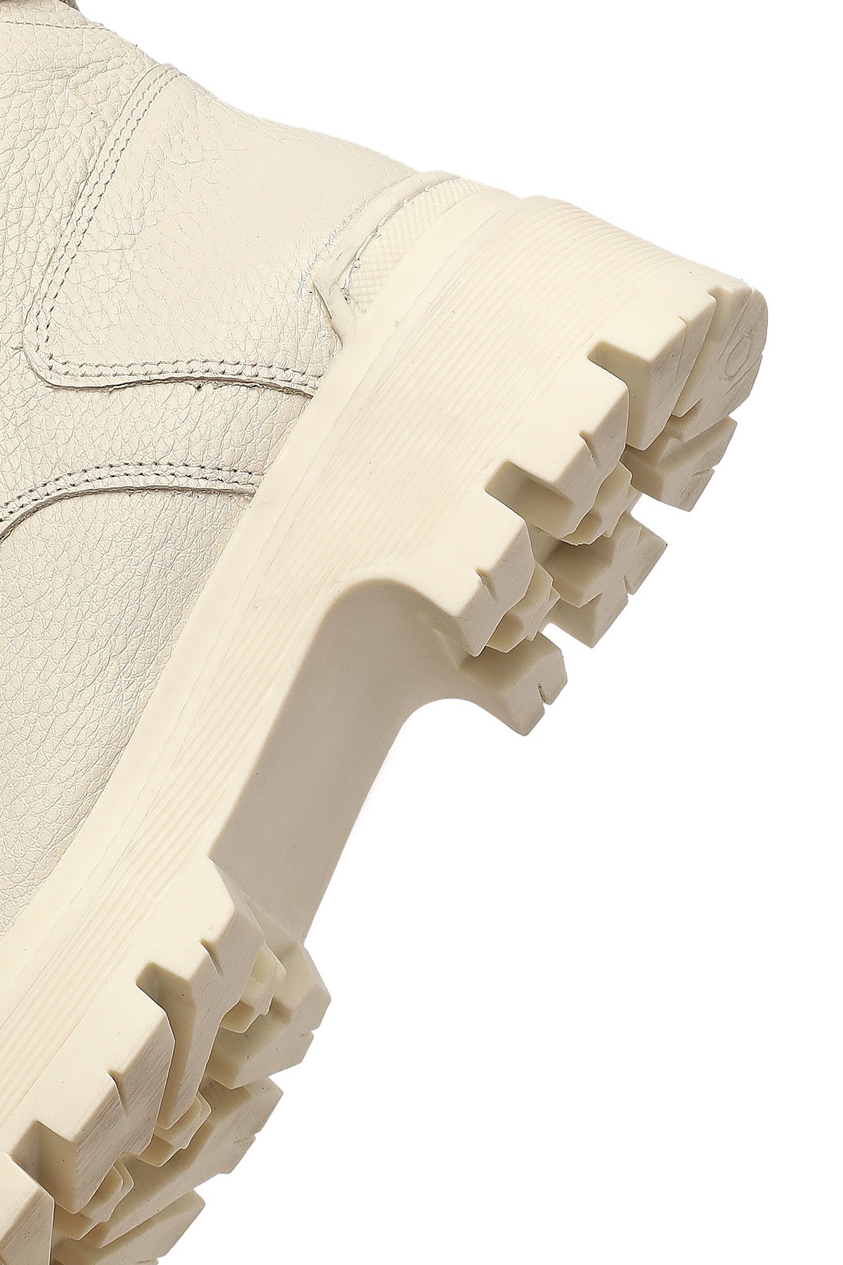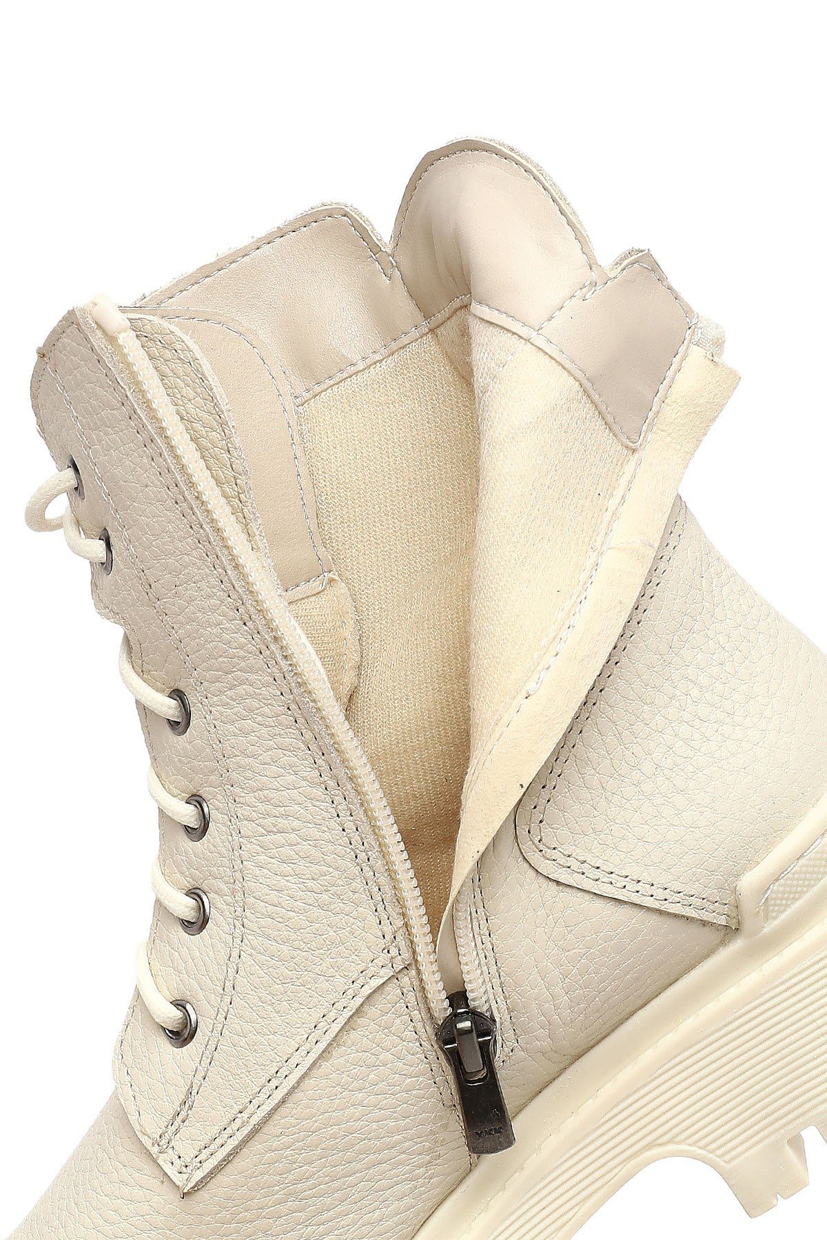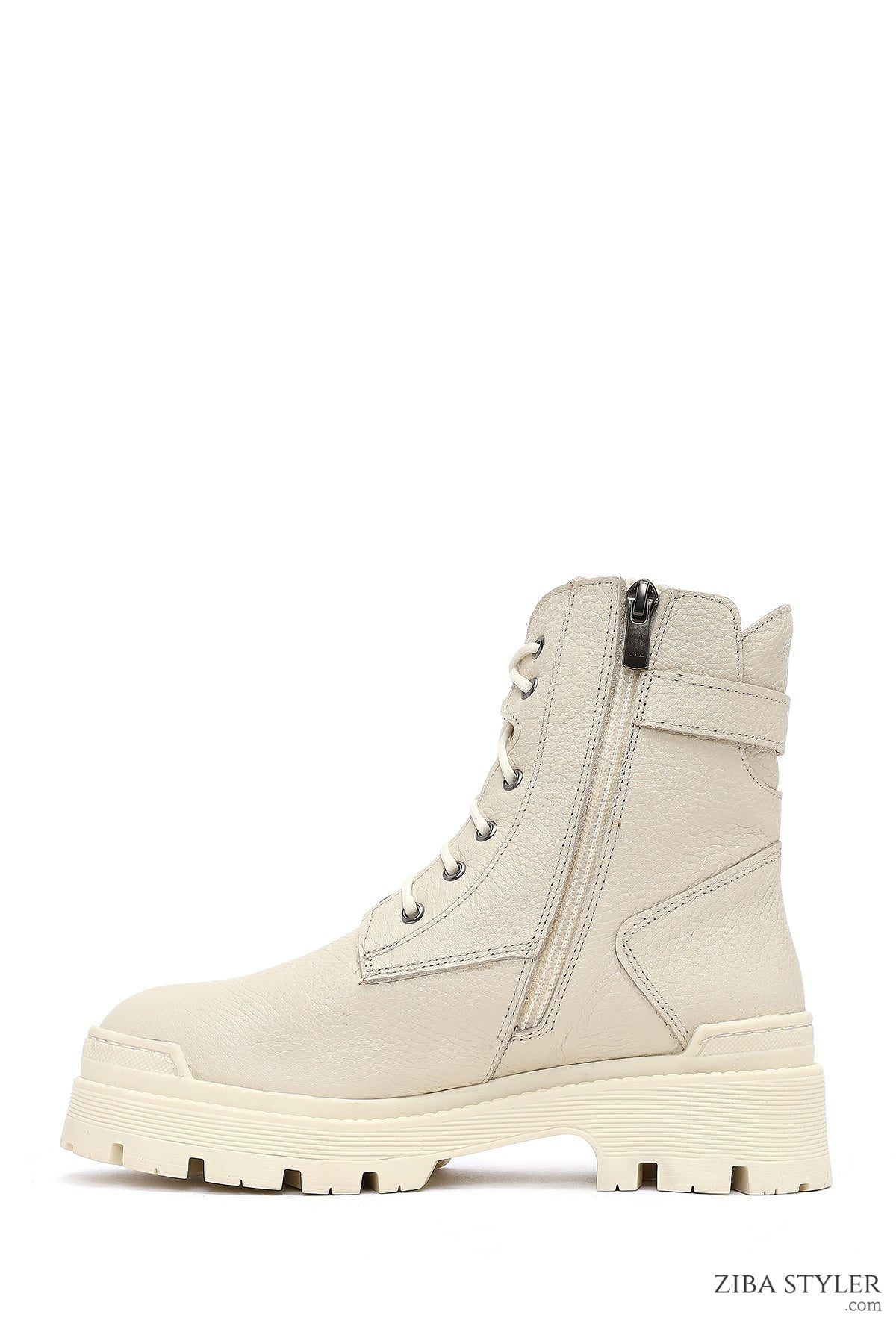 Kadın Bej Bağcıklı Fermuarlı Kalın Tabanlı Deri Postal Bot