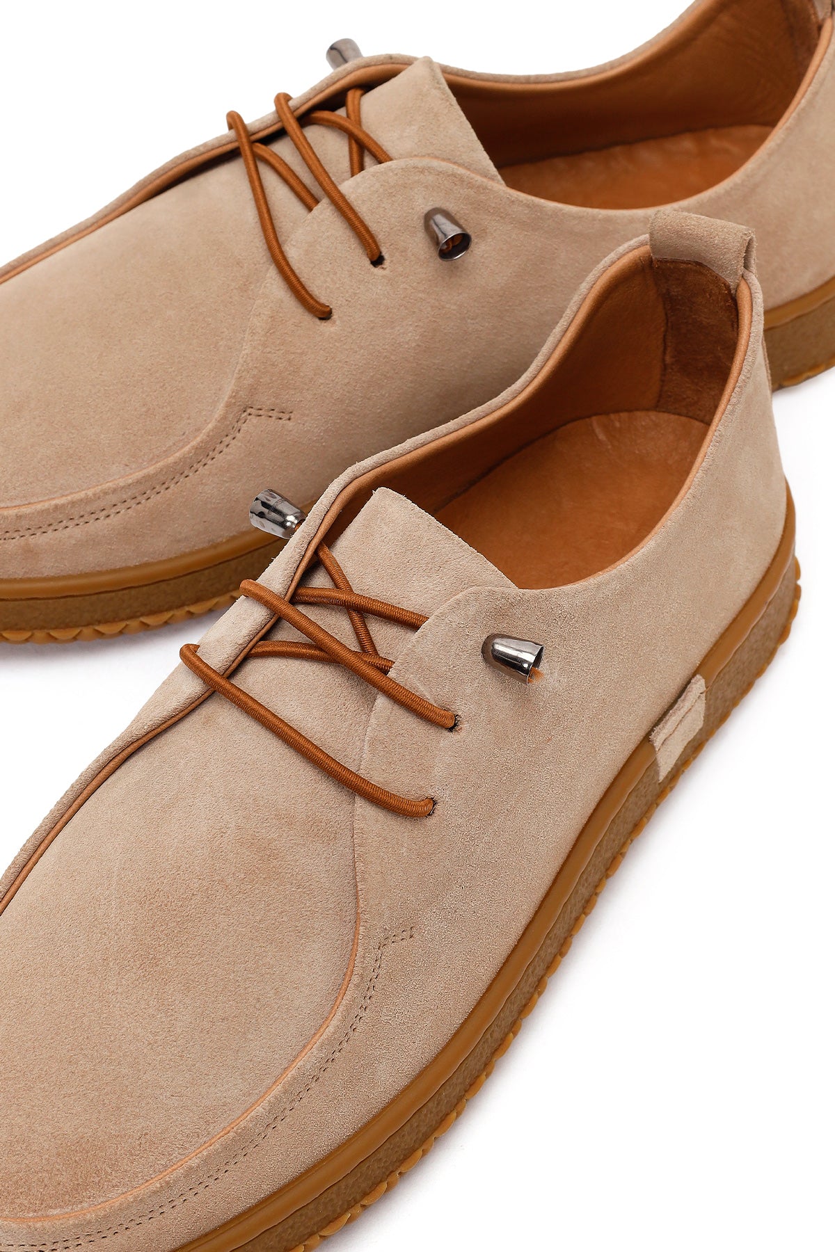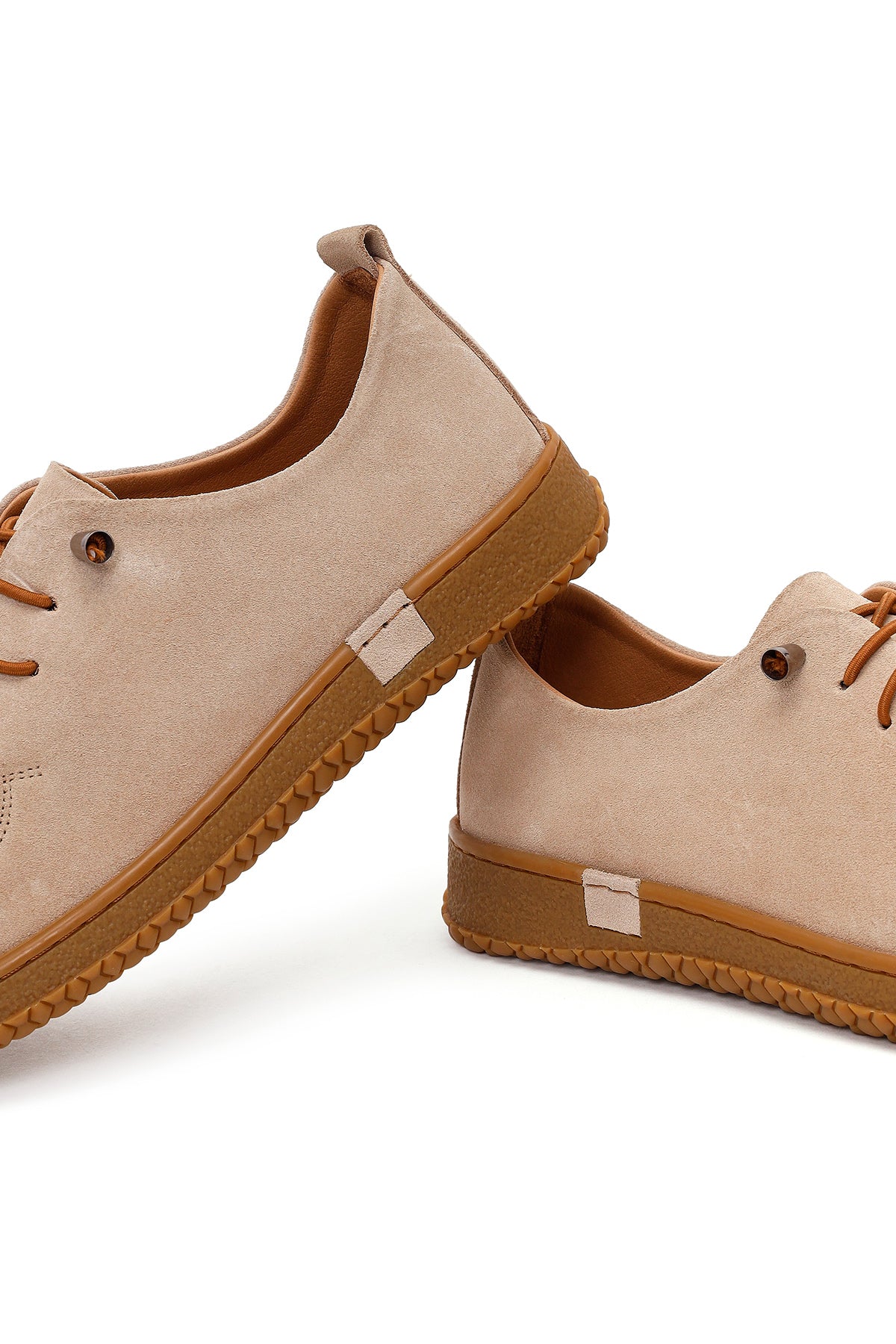 Kadın Bej Bağcıklı Süet Deri Comfort Ayakkabı