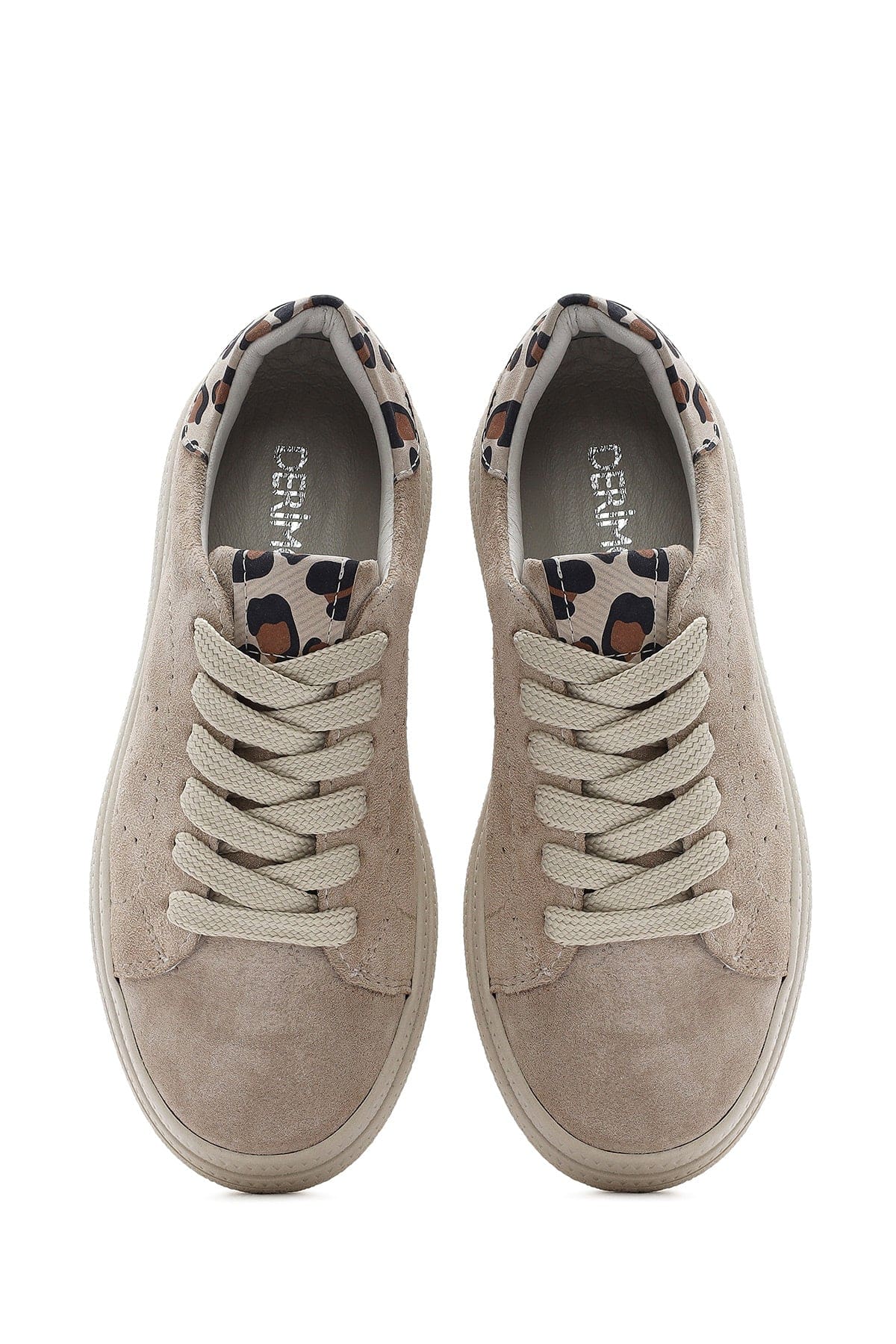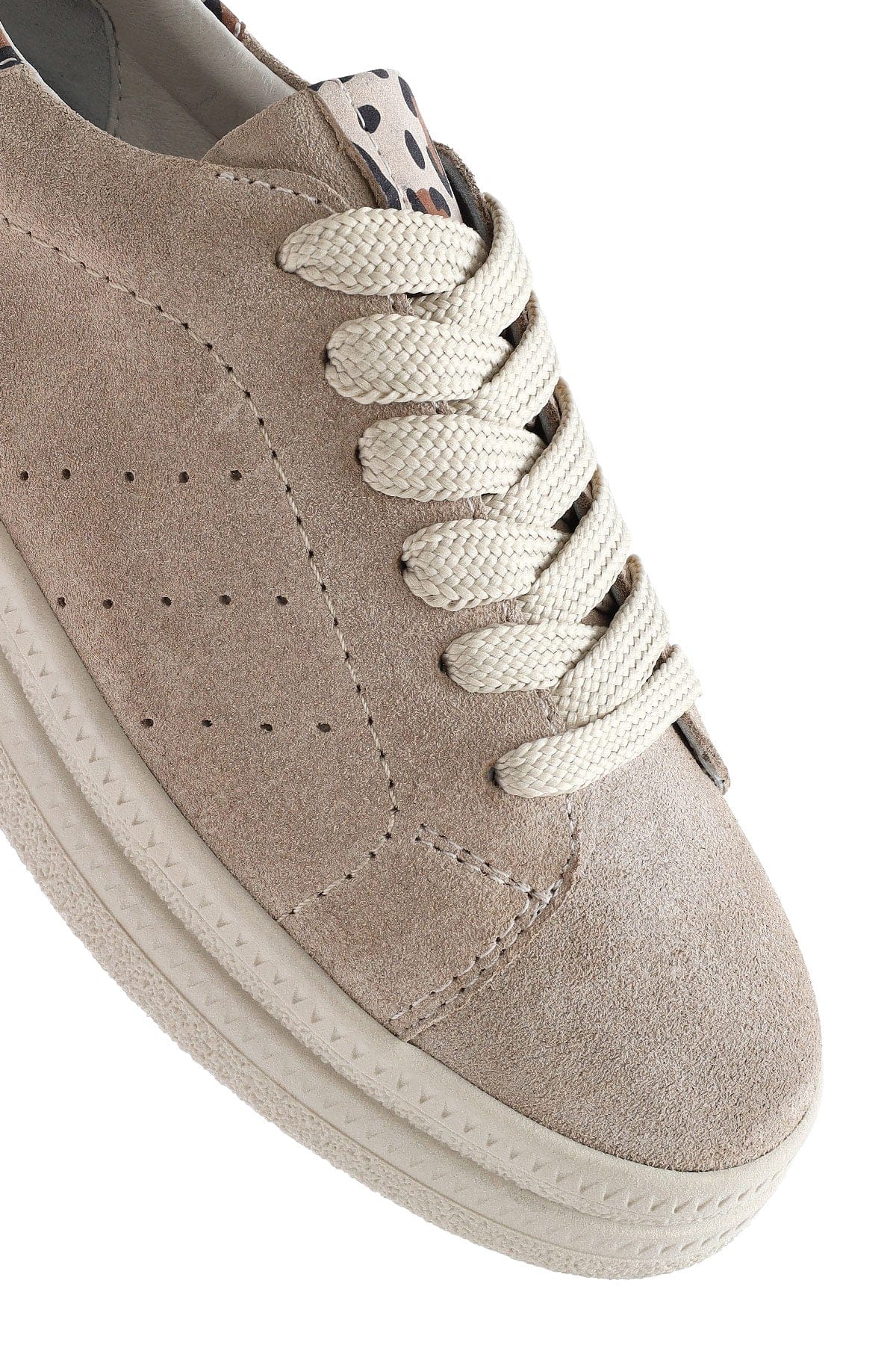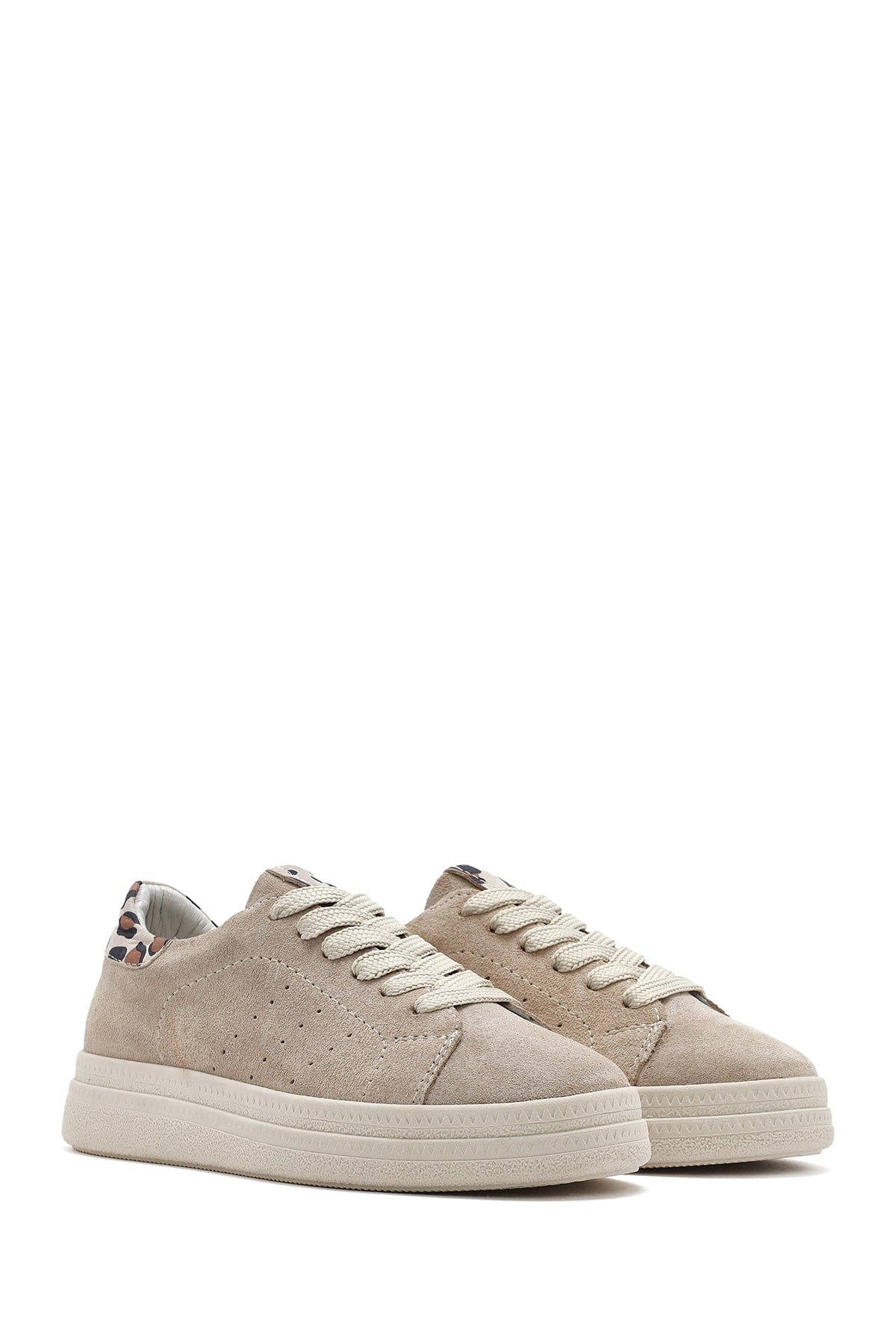 Kadın Bej Bağcıklı Süet Deri Sneaker