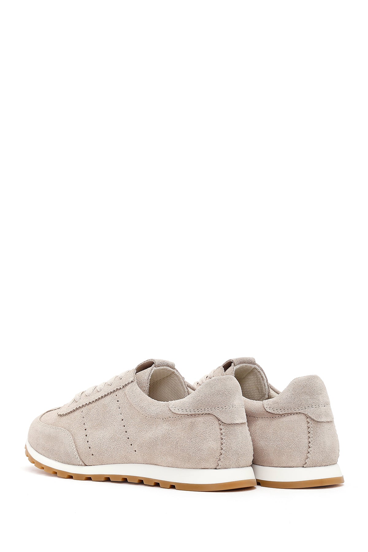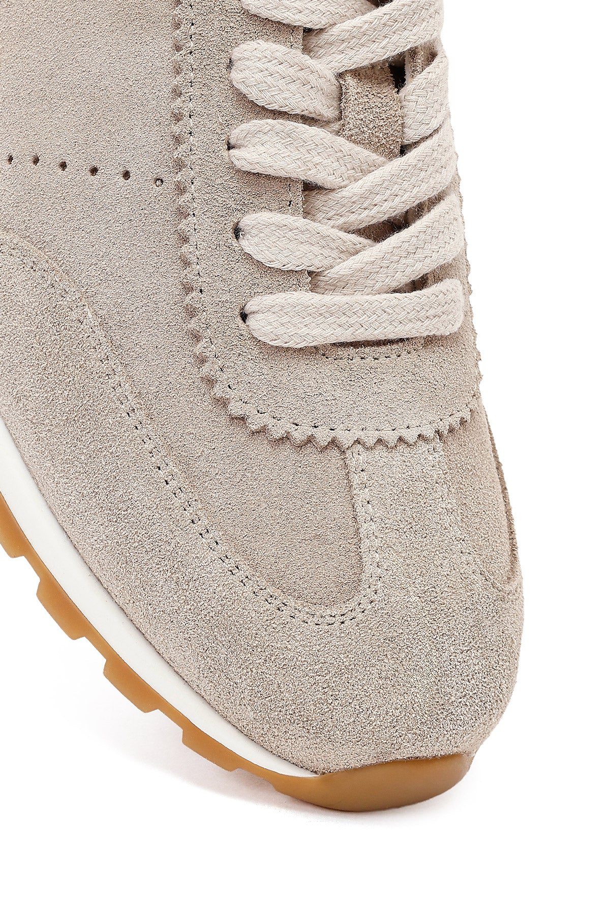 Kadın Bej Bağcıklı Süet Deri Sneaker